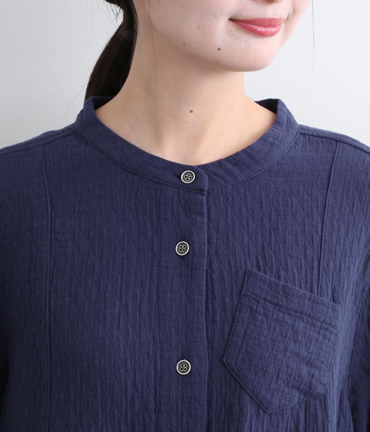 ふんわり柔らかな手ざわりのコットンダブルガーゼ生地を使用しました。通気性と保温性のバランスがよいのが特徴です。ナチュラルなシワ感が優しい雰囲気の素材感です。