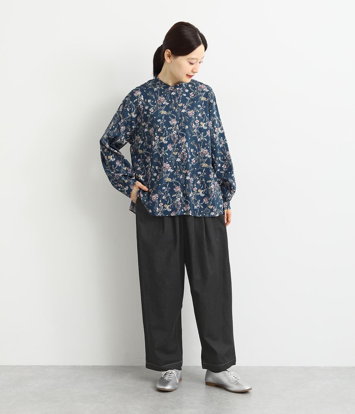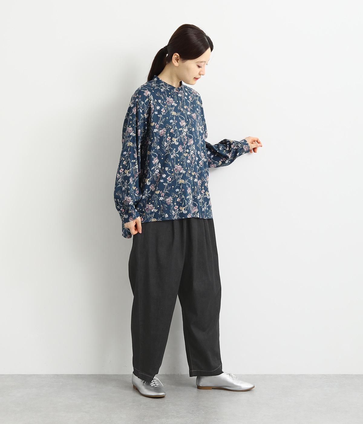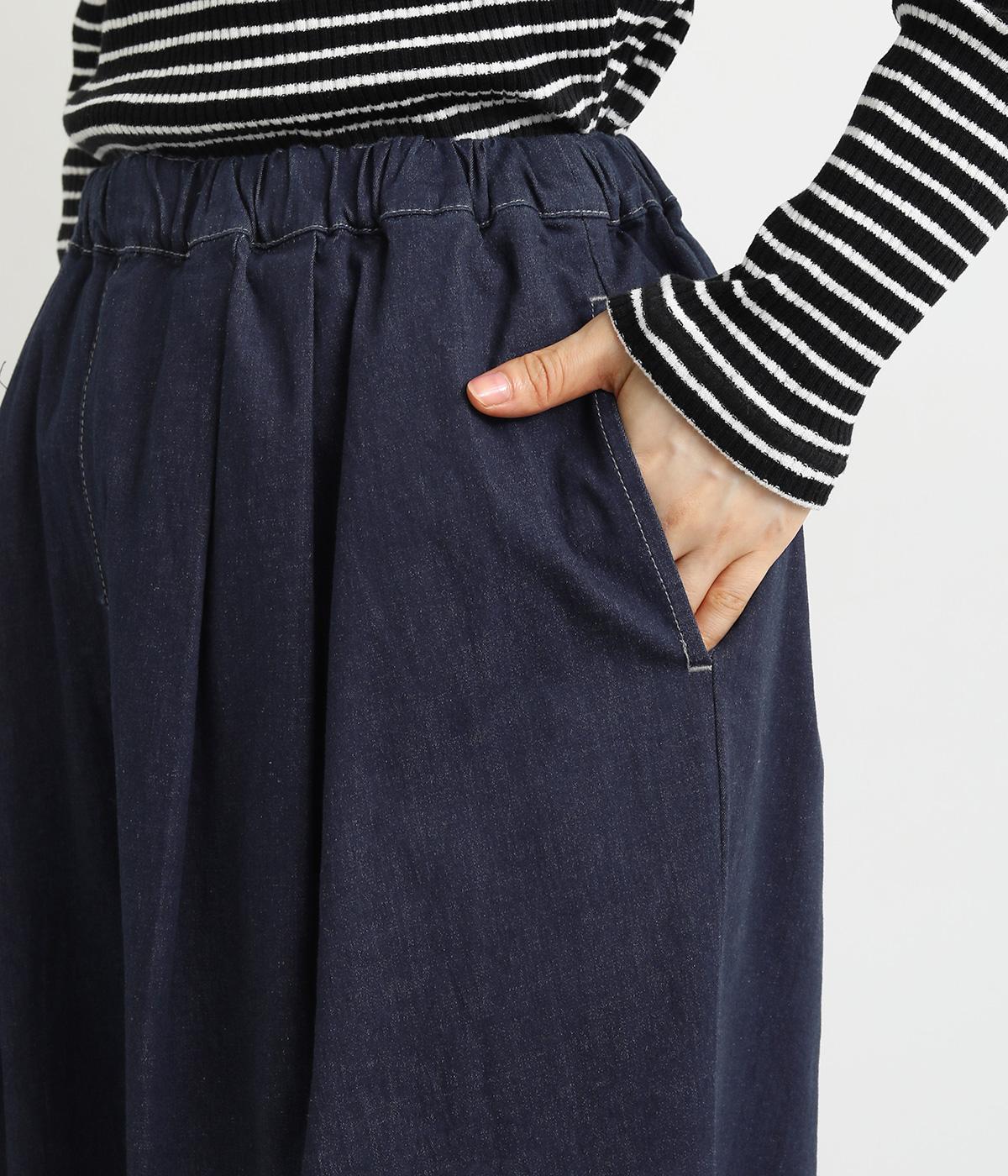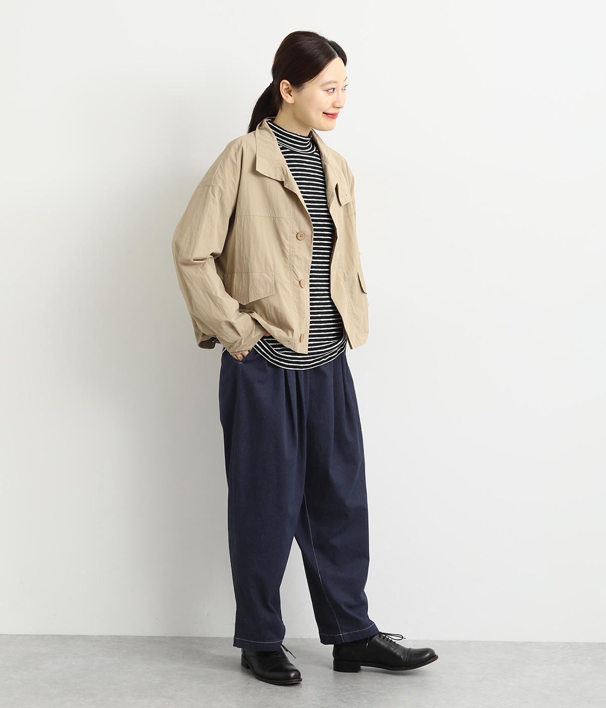 タック入りの緩やかなテーパードで、すっきりとした印象に。ウエストは総ゴムで紐で調節が可能です。バックポケットもさりげないアクセントになっています。動きやすく快適で、日常に寄り添う一本です。