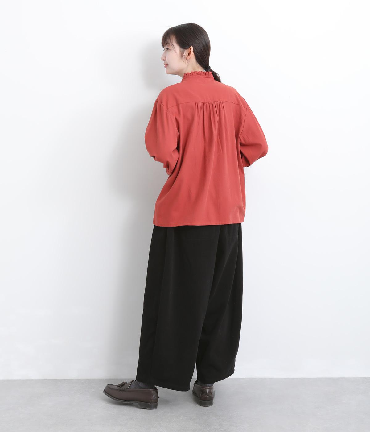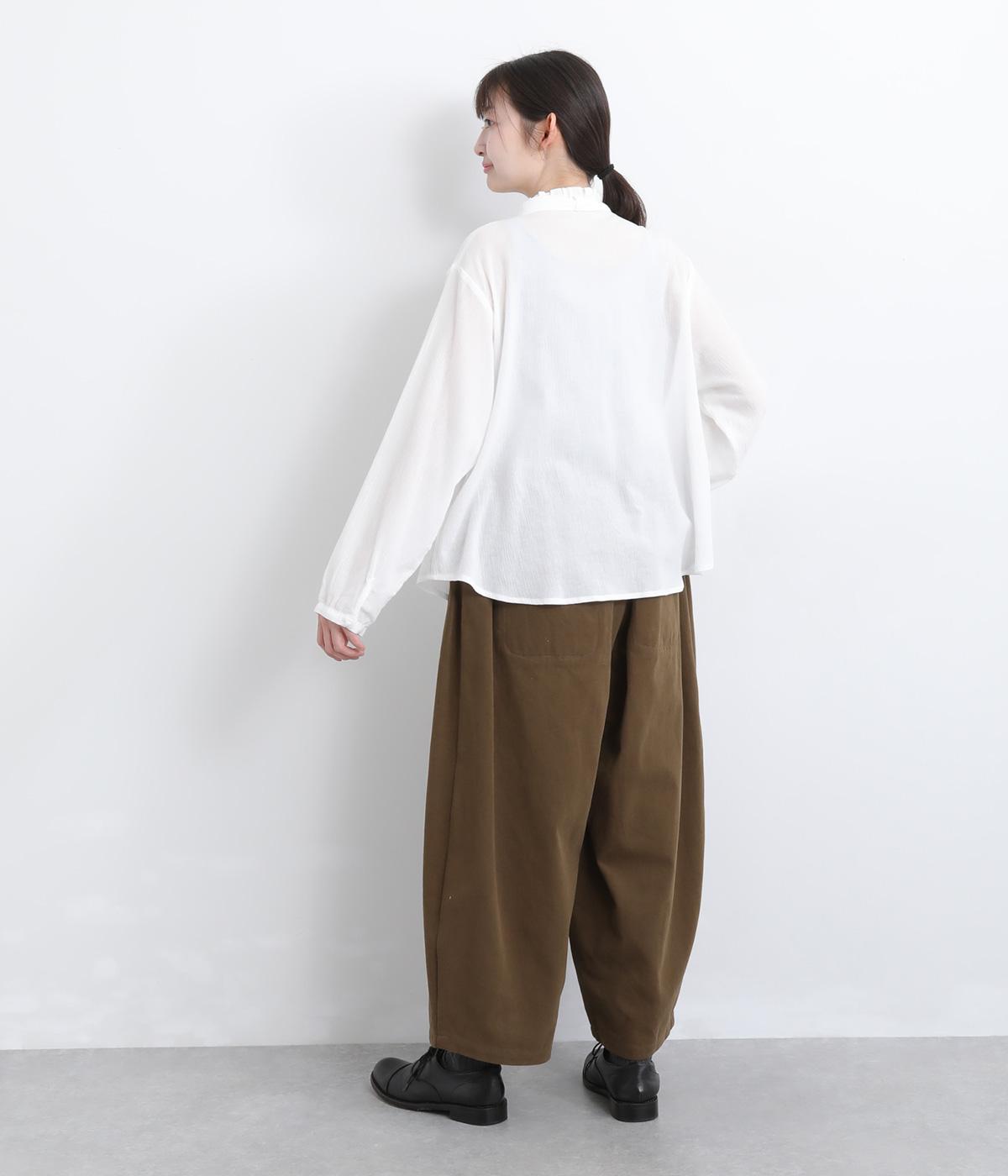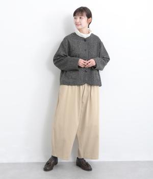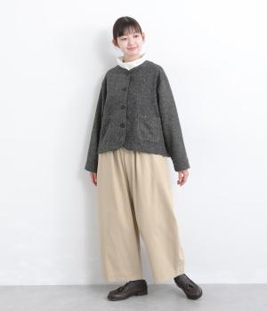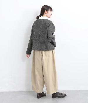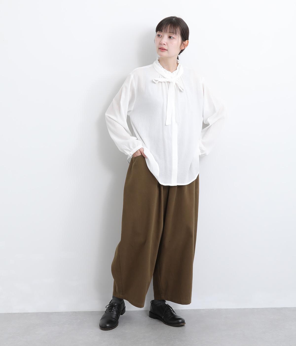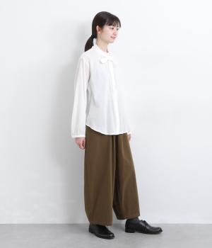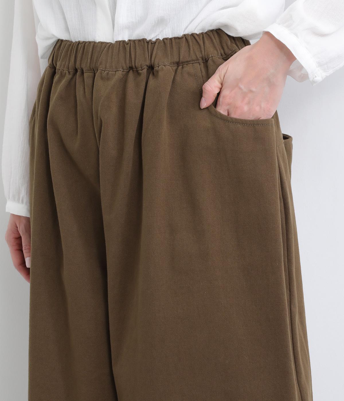 こなれ感のあるワイドシルエットをテーパードシルエットで仕上げました。たっぷりの生地がきれいな落ち感をつくり、カジュアルにもきれいめにも着まわせます。ウエストは総ゴム使用で紐でサイズ調節が可能です。