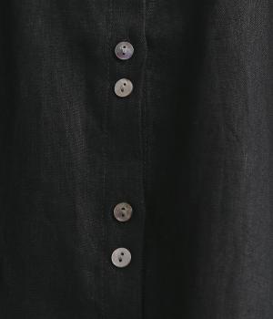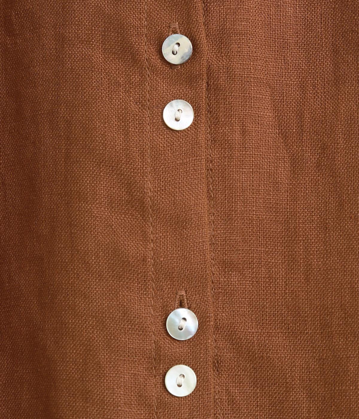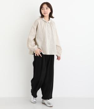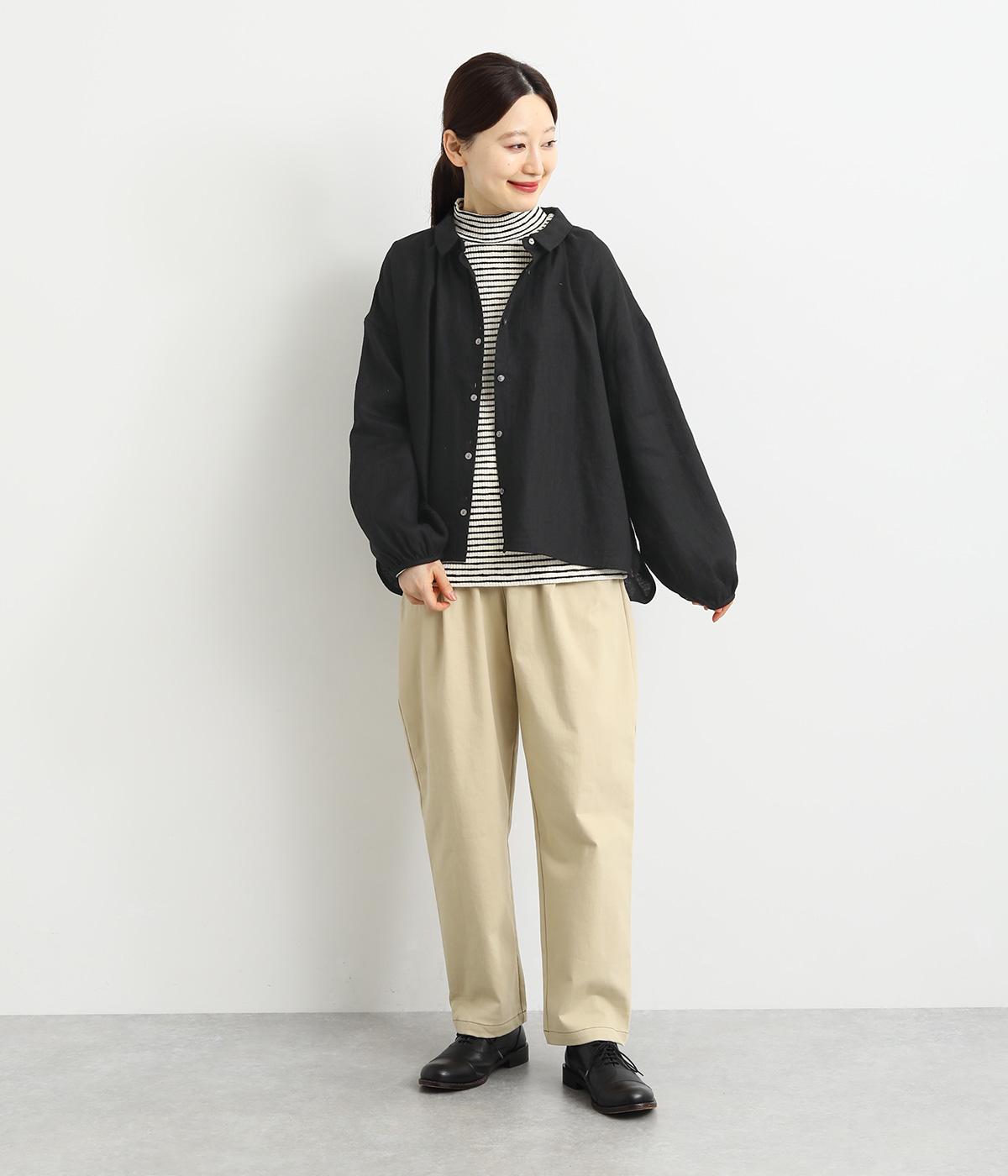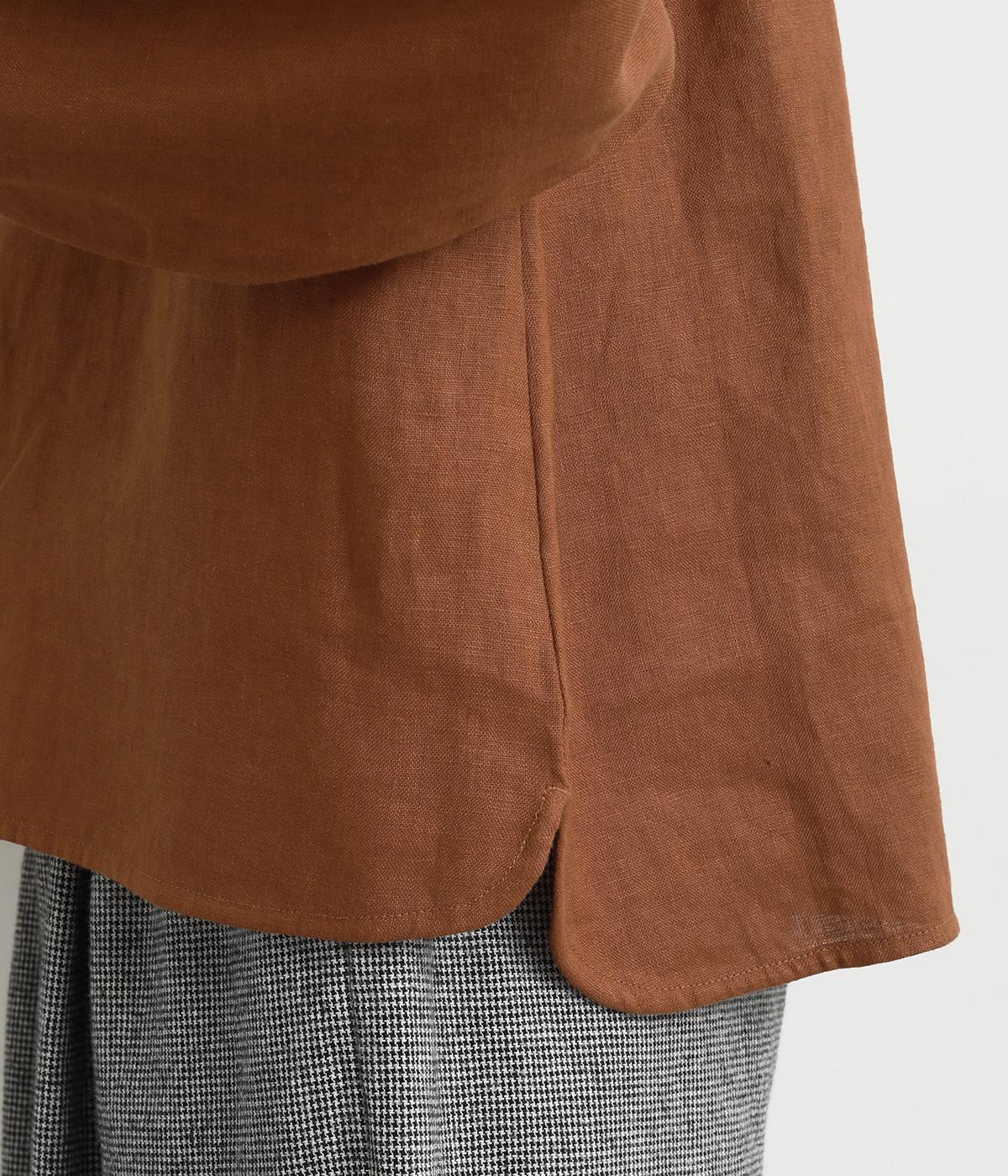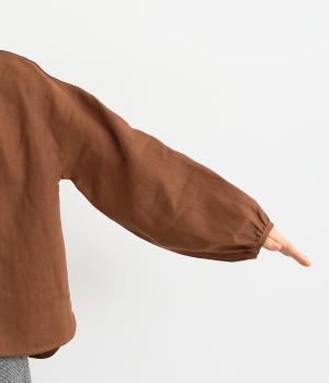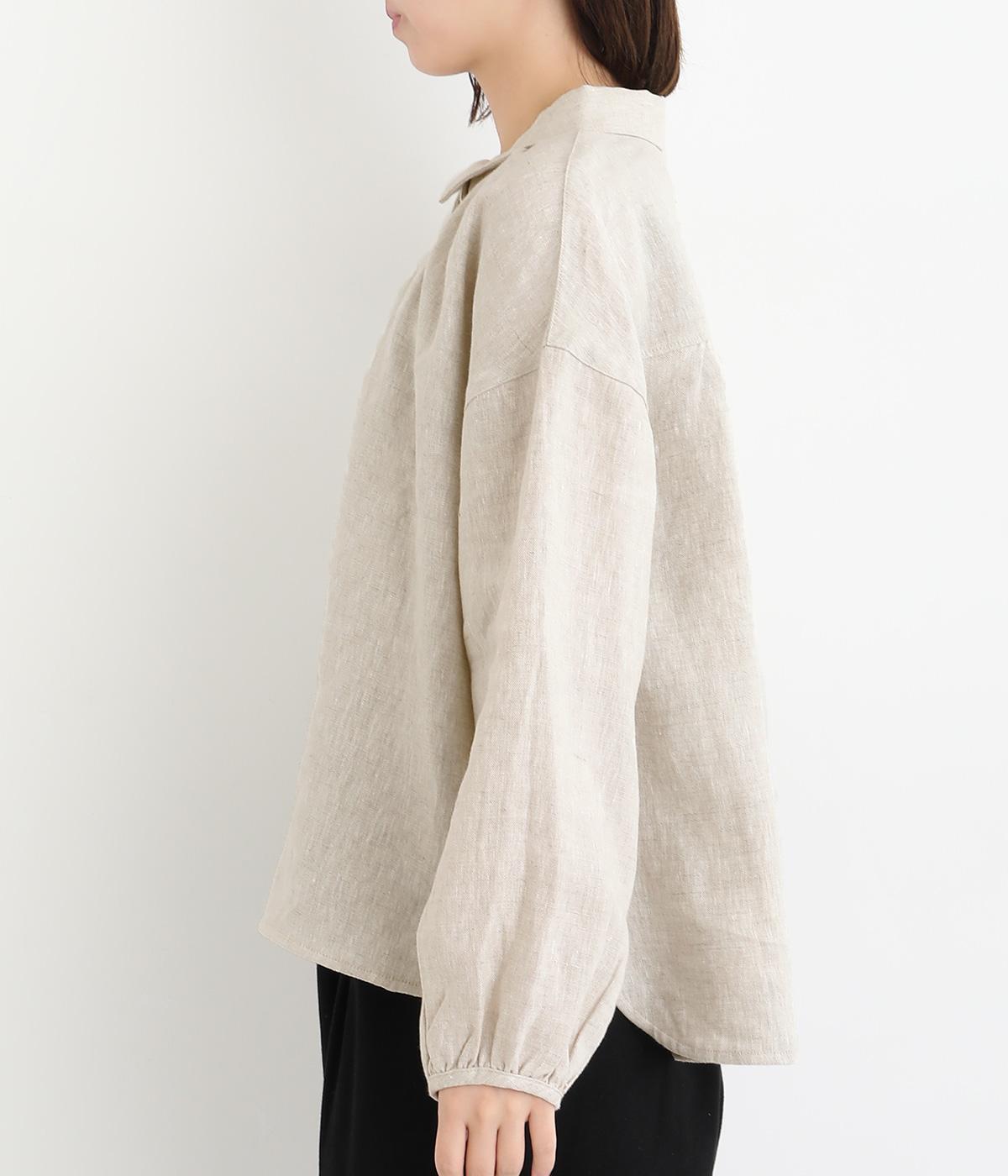 大人のナチュラルスタイルにぴったりなリネンブラウス。首元にやさしく添わせた小さめの襟と随所に施したギャザーが愛らしいムードを運びます。2つずつリズムよく並べたフロントボタンもアクセントに。前後差をつけたラウンドヘムが着こなしを整え、スカートにもパンツにも好相性です。