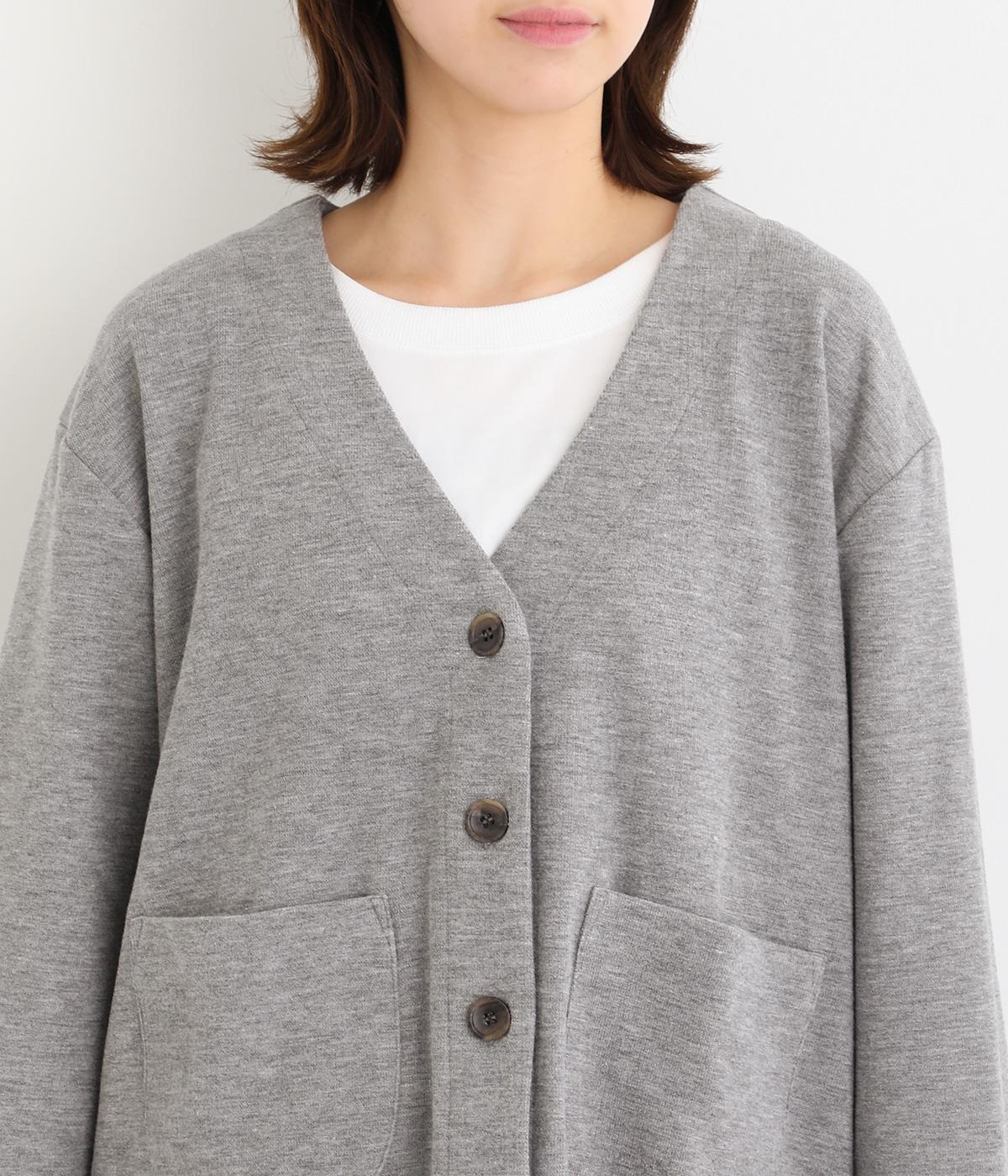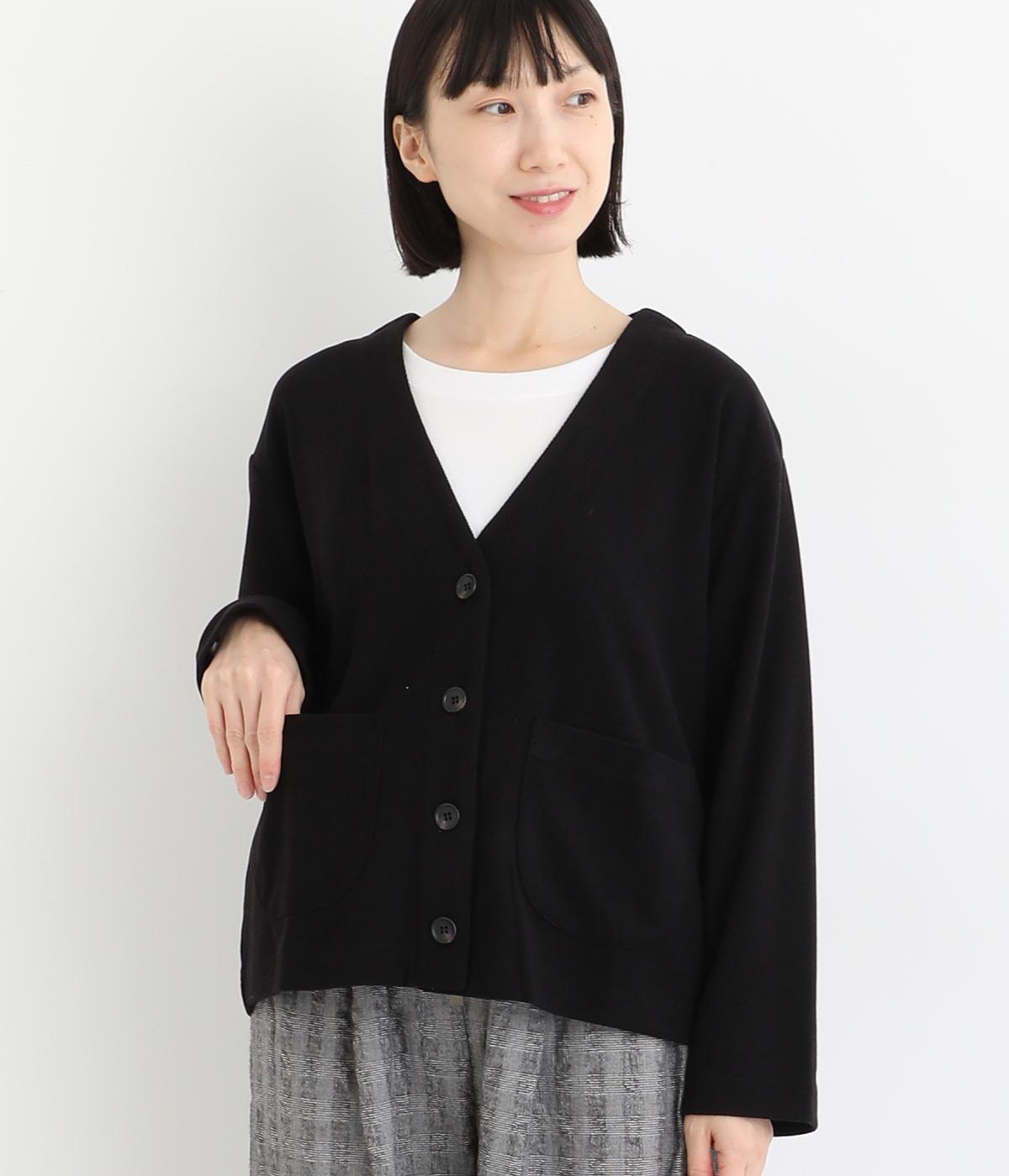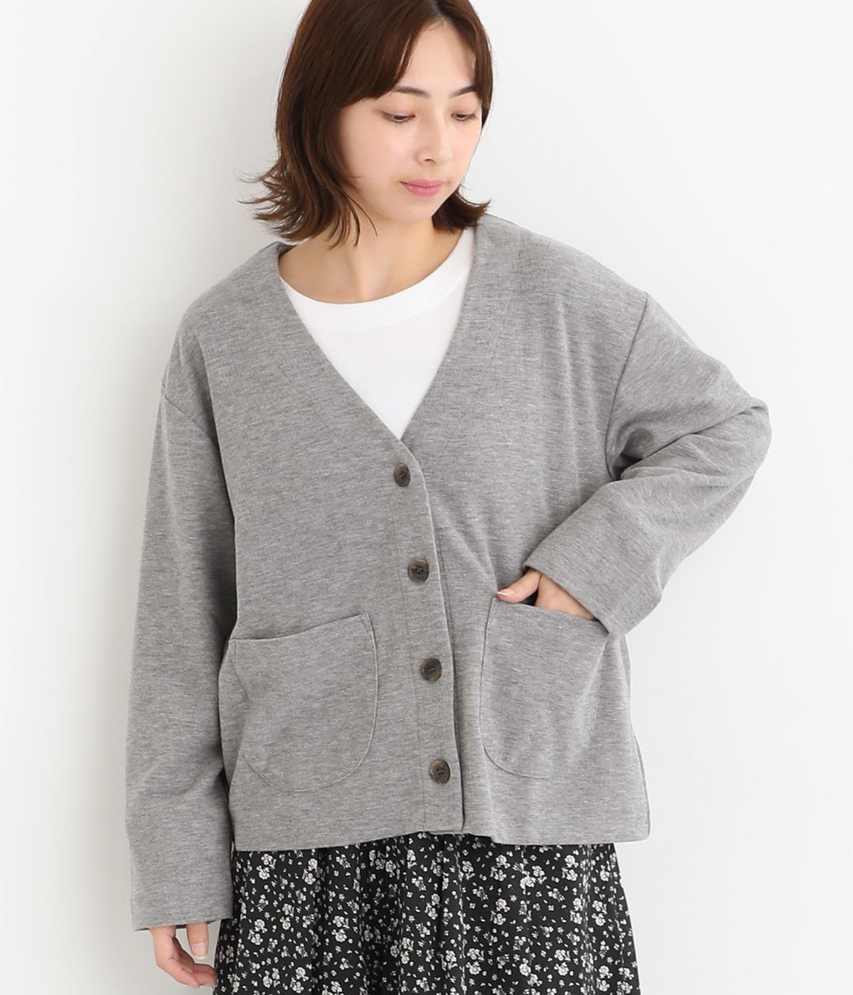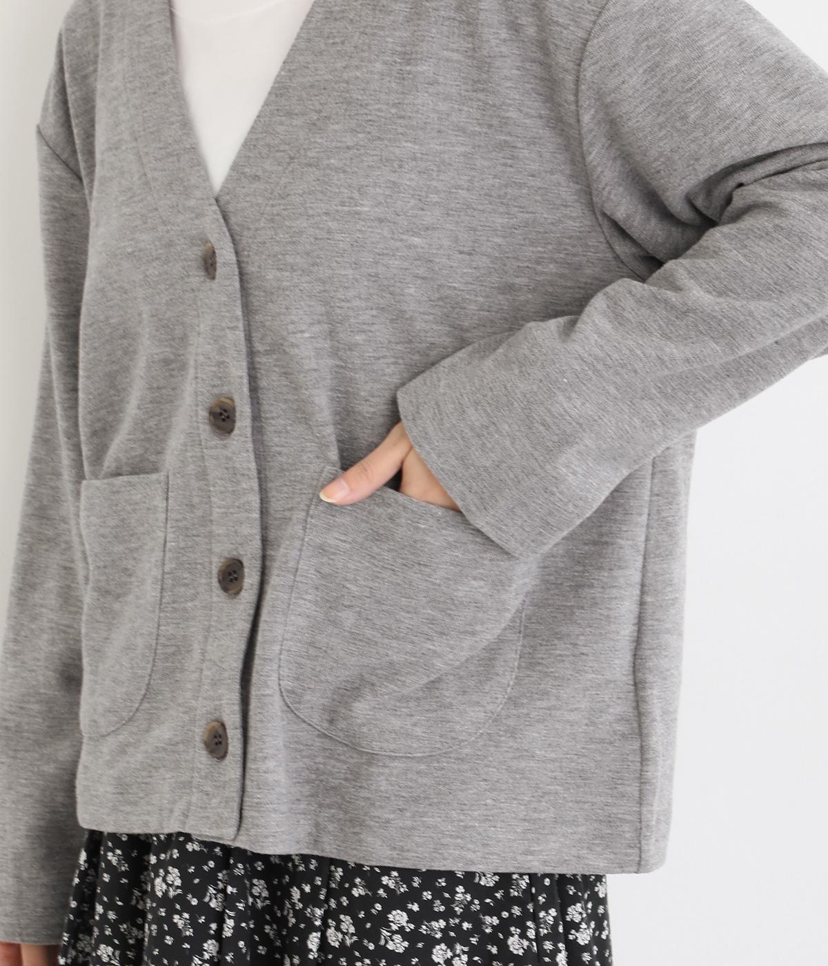 起毛感のある生地と丸みを帯びたパッチポケットが女性らしいやわらかなムードを生むカーディガン。深めのVネックが抜け感を与え、ゆとりのある身幅をすっきりと見せてくれます。長めの袖丈に対して着丈はコンパクトに仕上げ、さまざまなボトムスにバランスよく合わせやすいのがグッドです。