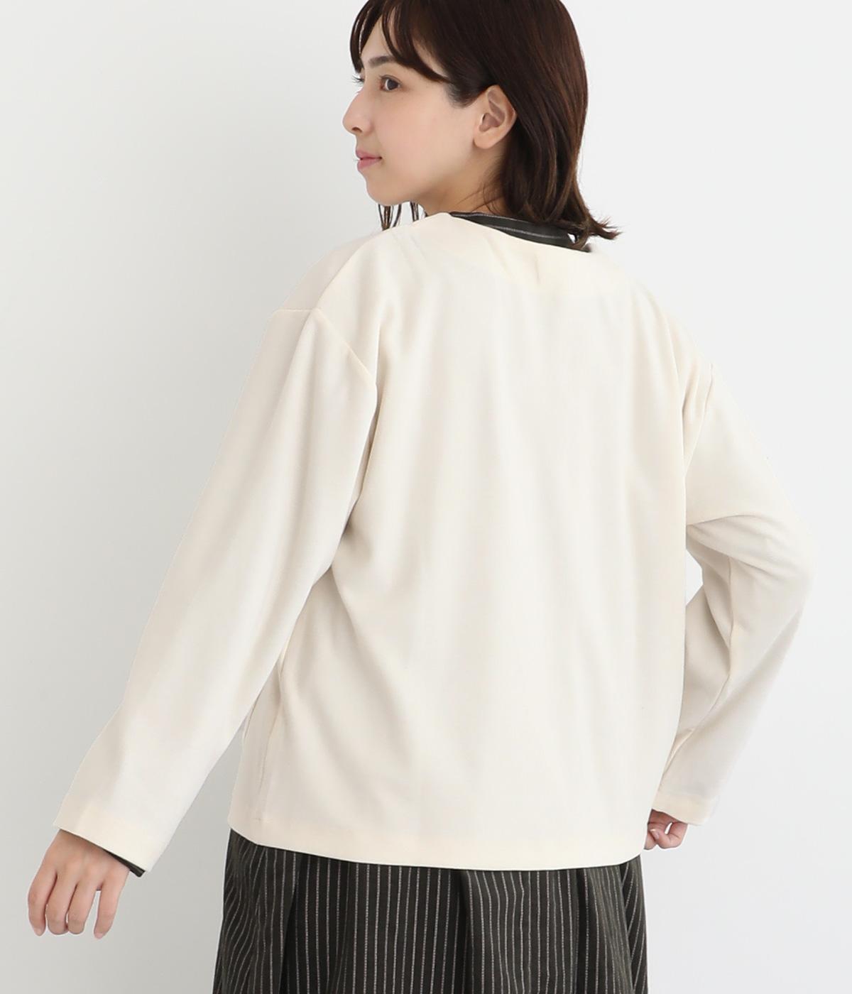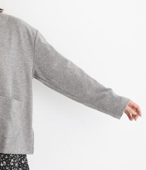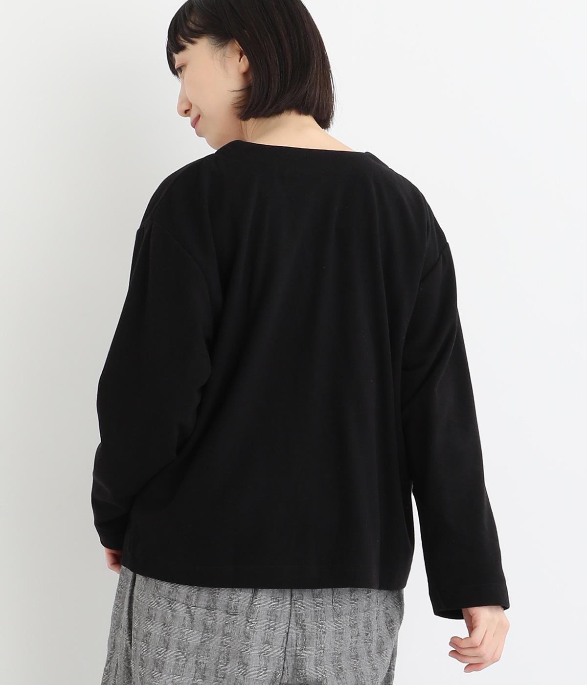 ふっくらと起毛がかった表面が特徴の、ほどよい厚みのあるジャージー生地です。裏面はなめらかな心地よい肌触りが◎。動きやすさをアップさせる伸縮性の高さも魅力です。