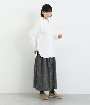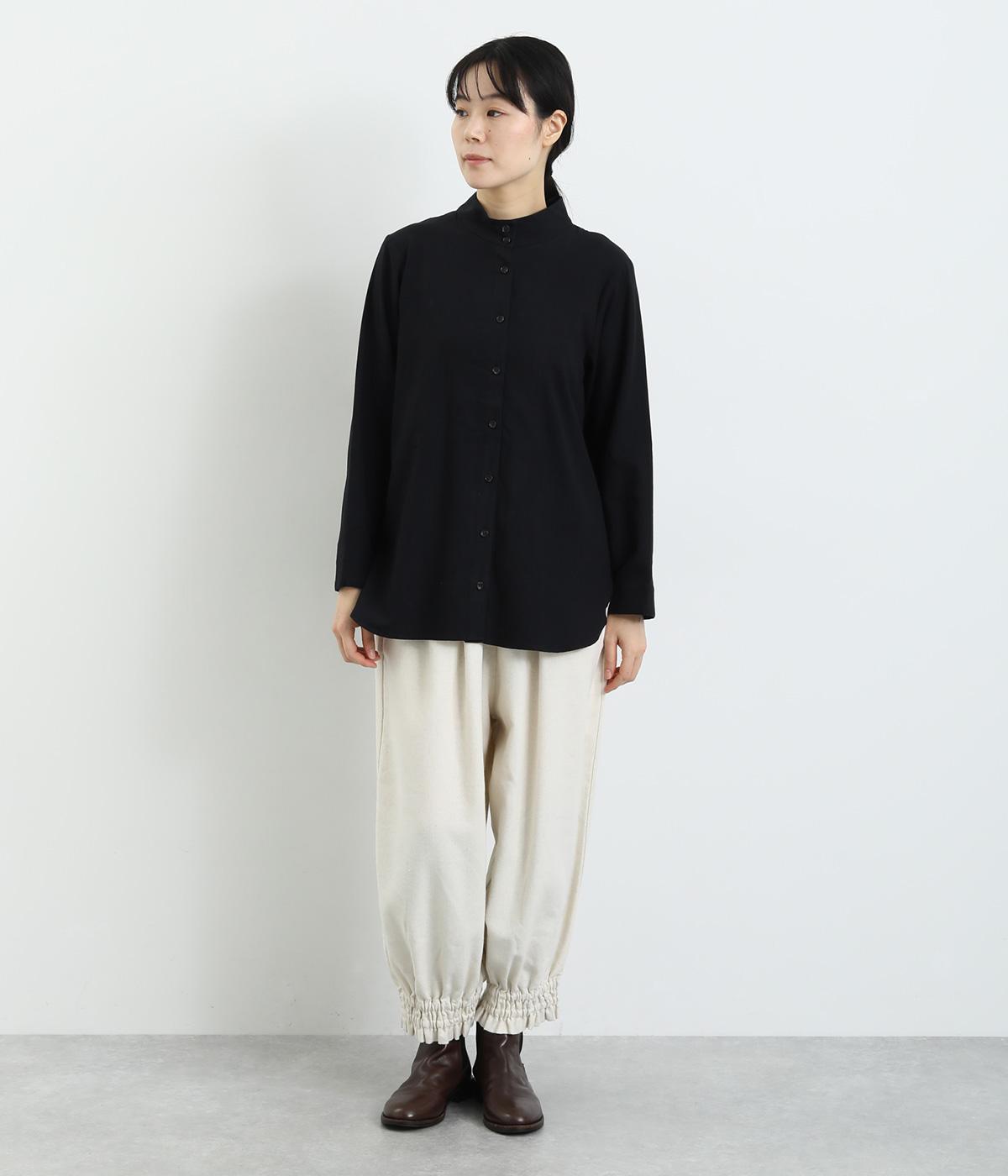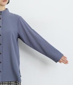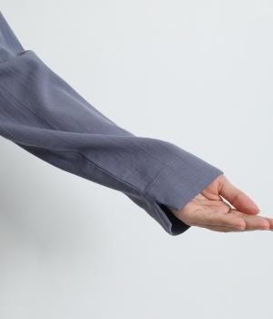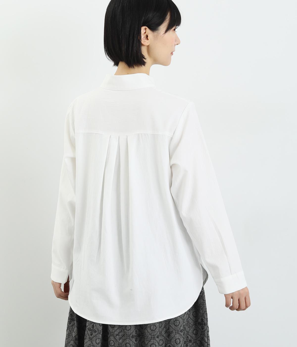 品のあるモックネックが特徴的なブラウス。前はすっきりと、後ろは切り替えタックを施して、動きのあるデザインに仕上げています。袖口には抜け感を添えるスリット入り。ニットやジャンパースカートなどのインナーとしても重宝します。