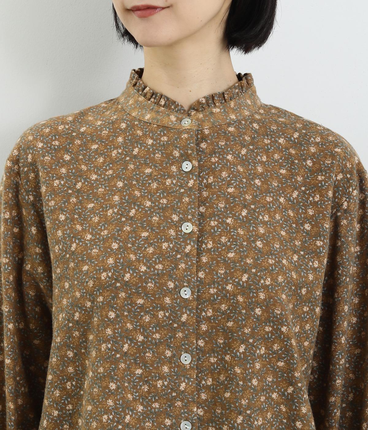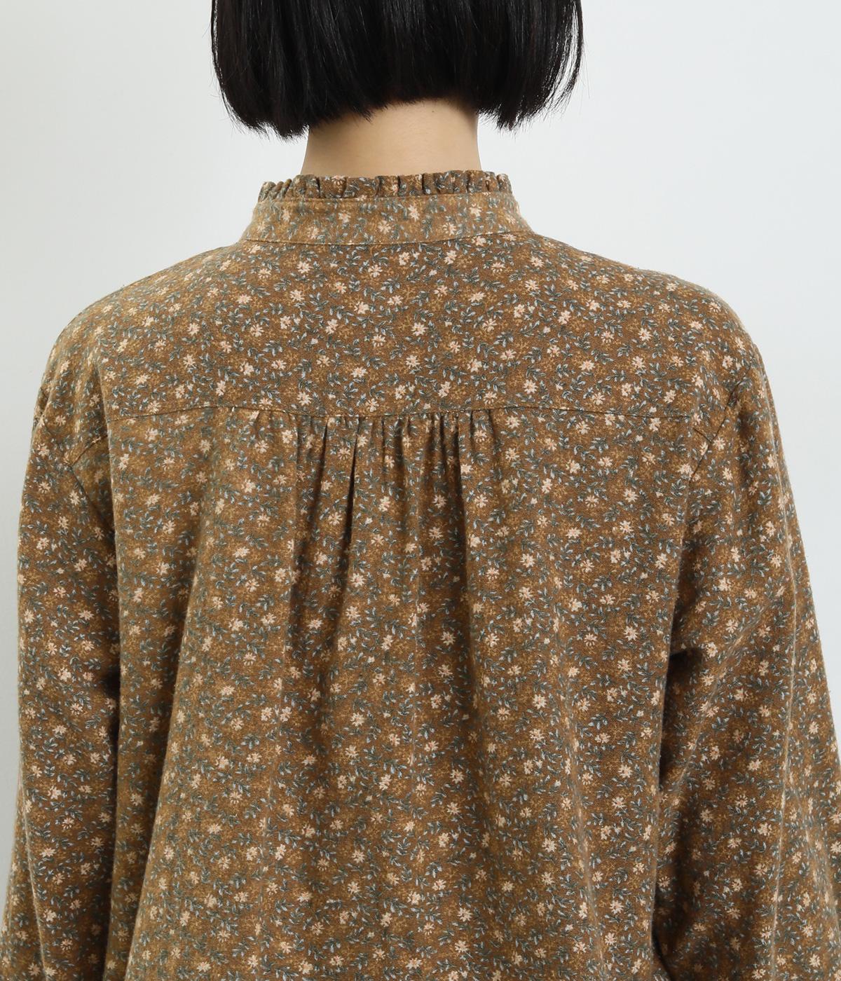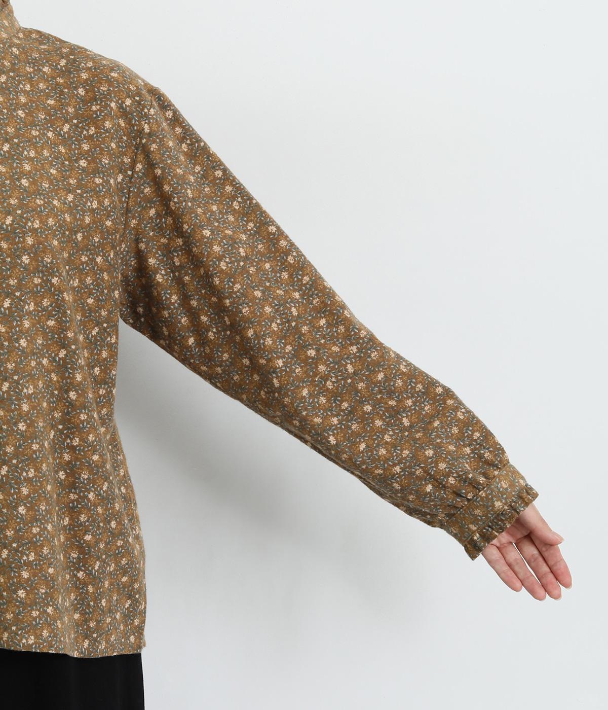 やさしい肌触りの起毛のコットン混素材です。ふっくらとしたやわらかな風合いが魅力的。繊細なお花のプリントで、着こなしにやさしい印象を与えてくれます。