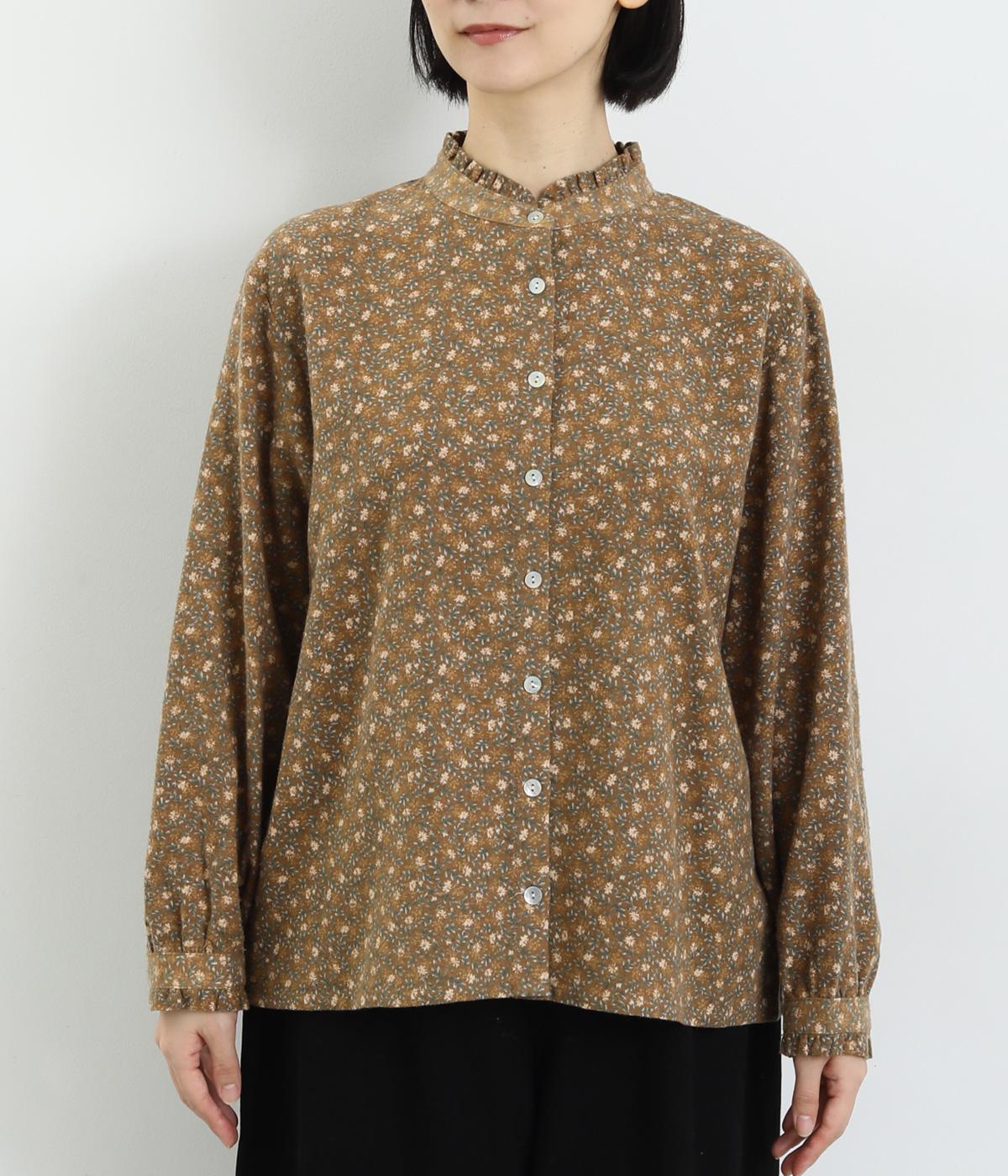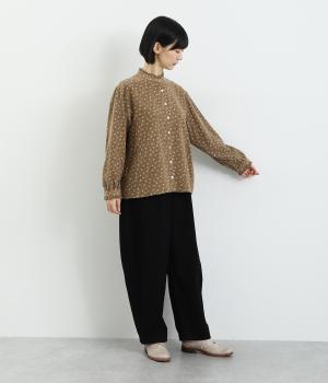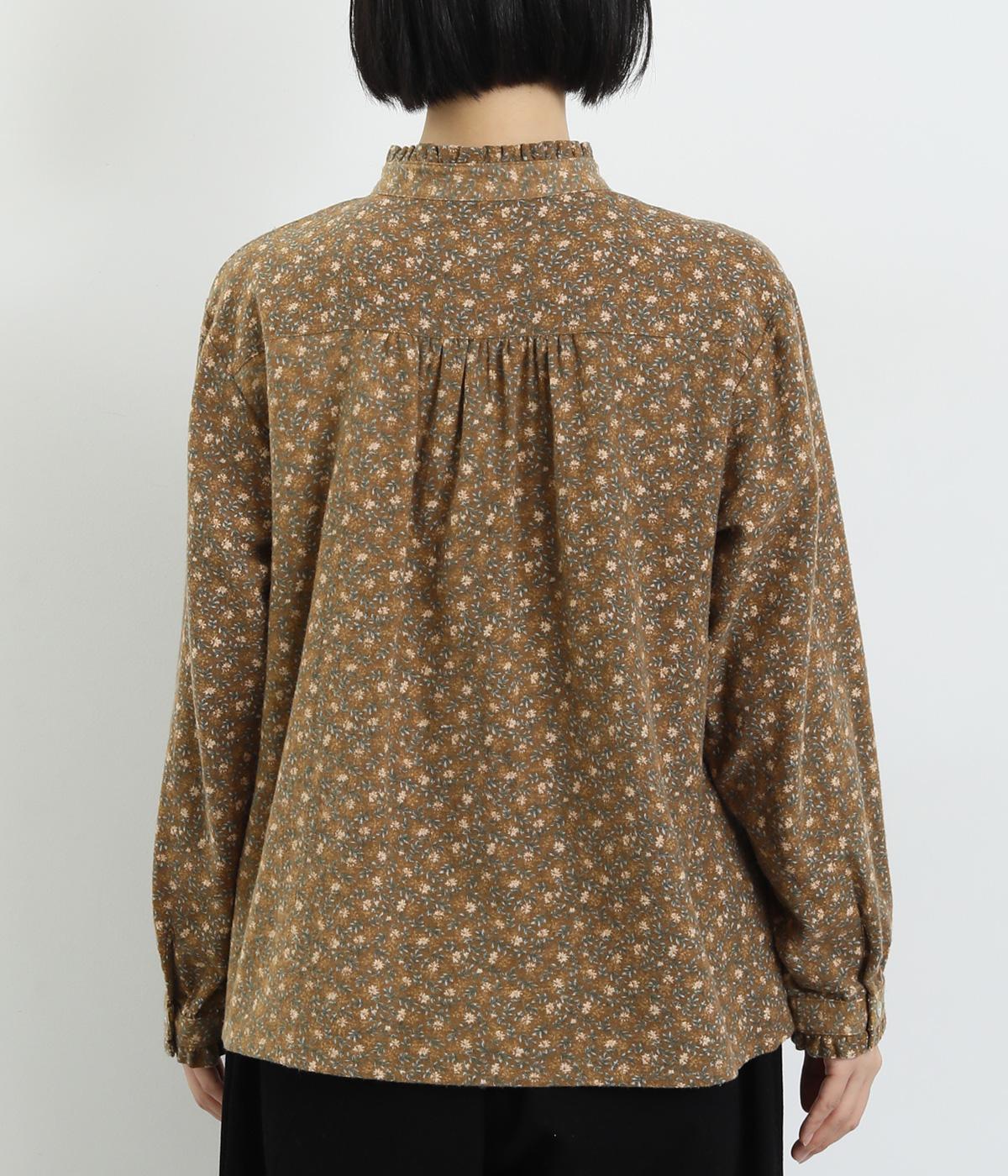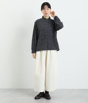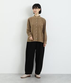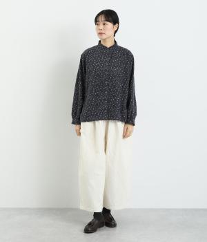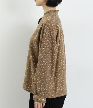 やさしい肌触りの起毛のコットン混素材です。ふっくらとしたやわらかな風合いが魅力的。繊細なお花のプリントで、着こなしにやさしい印象を与えてくれます。