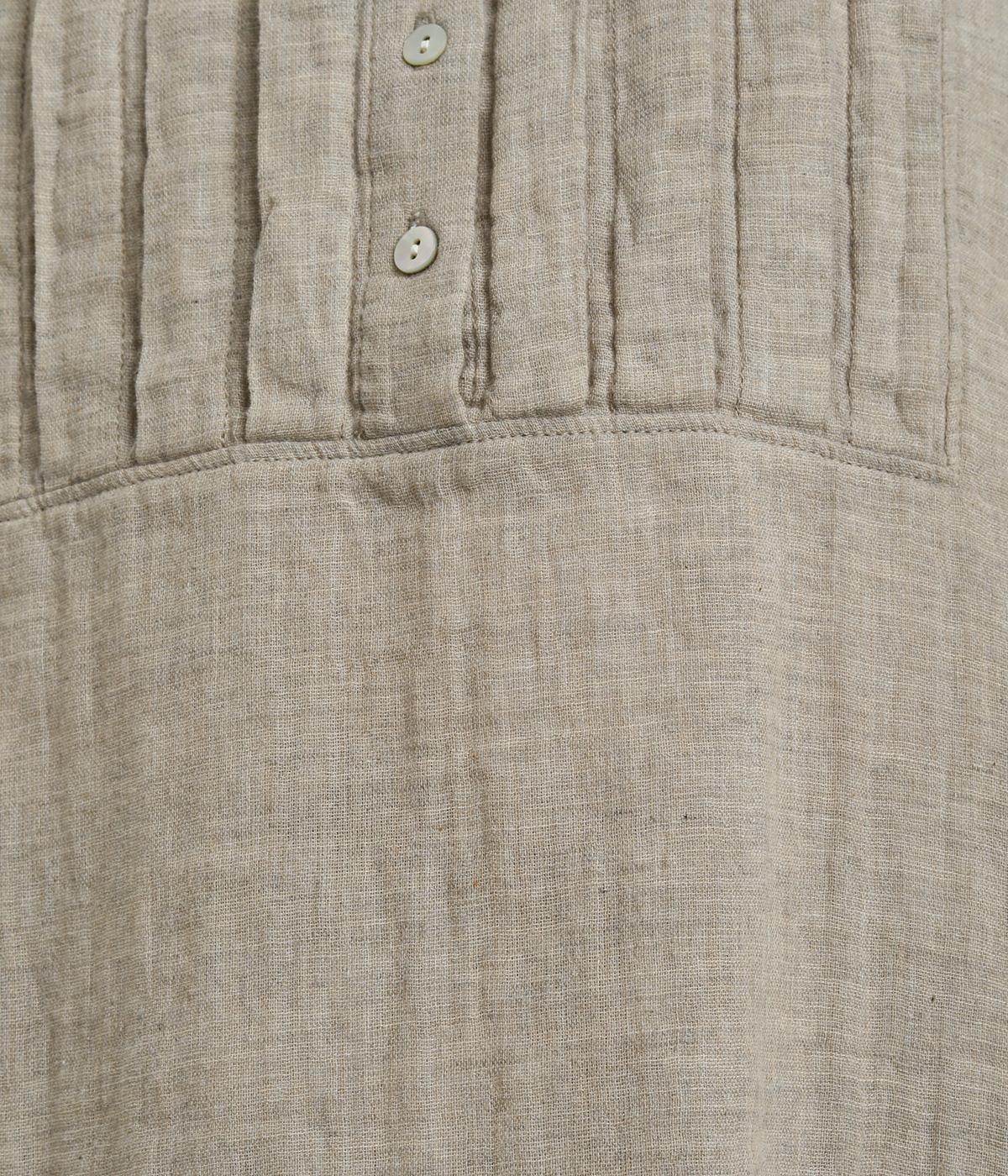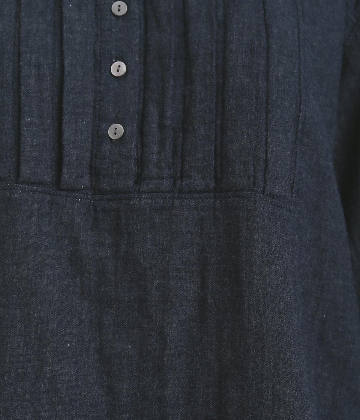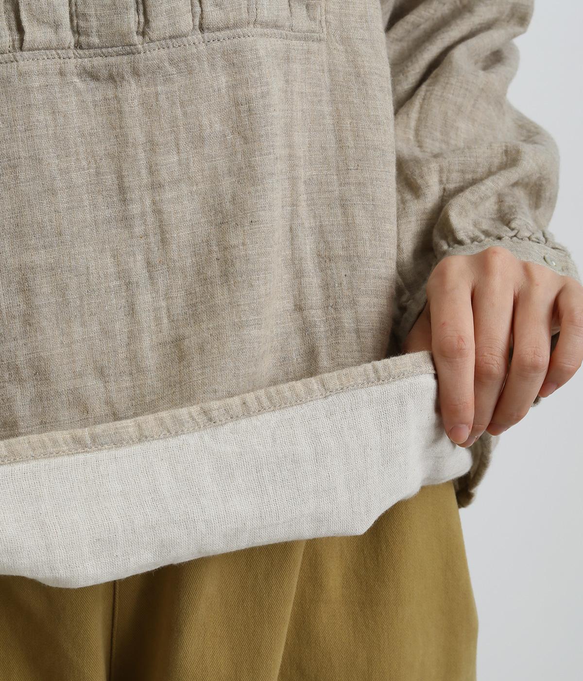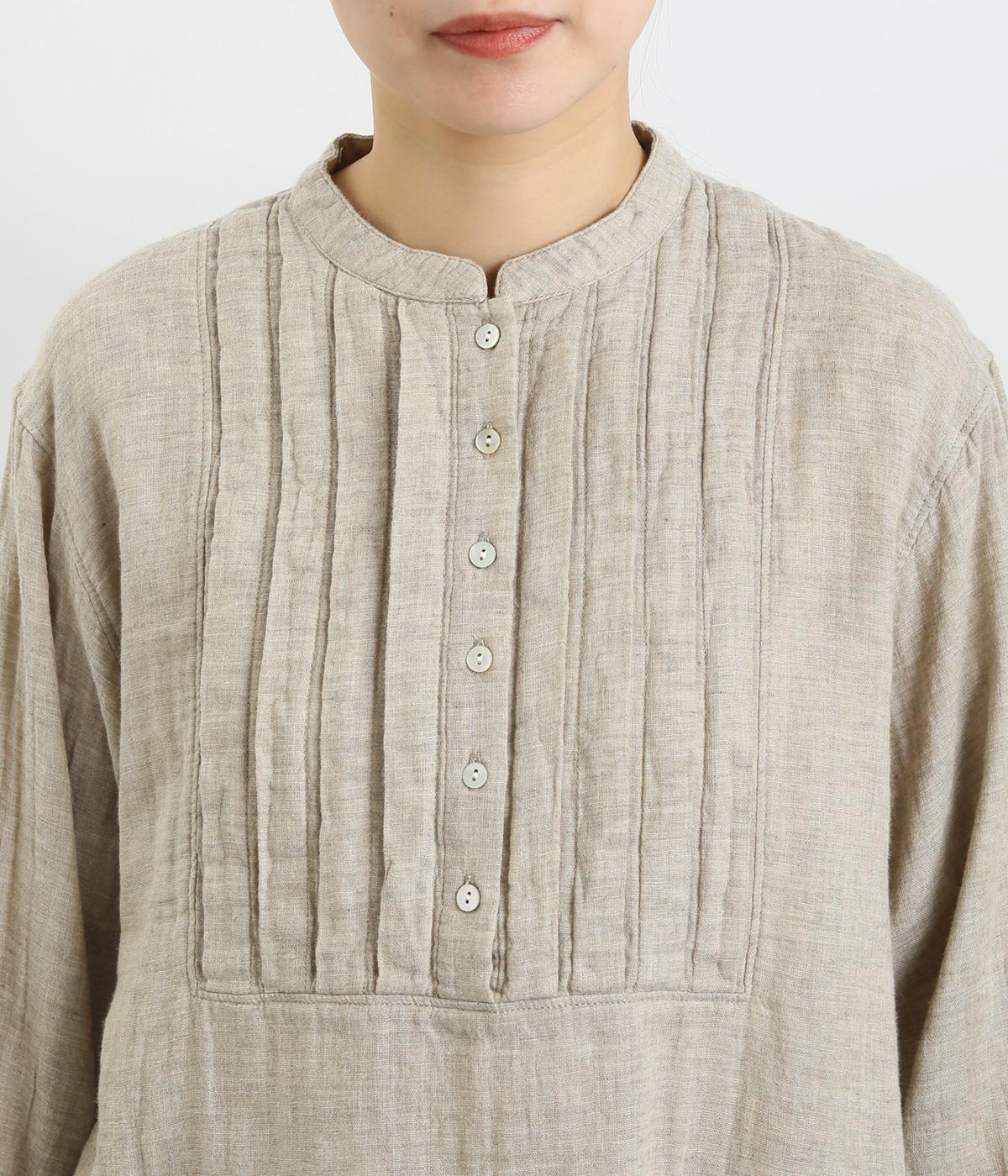 前身頃のピンタックが全体の印象を引き締めるブラウスです。後ろ身頃はギャザーで立体感を出しつつ、動きやすい仕様に。ふんわりとした袖口もポイントです。ナチュラルで洗練された着こなしを叶える一着です。