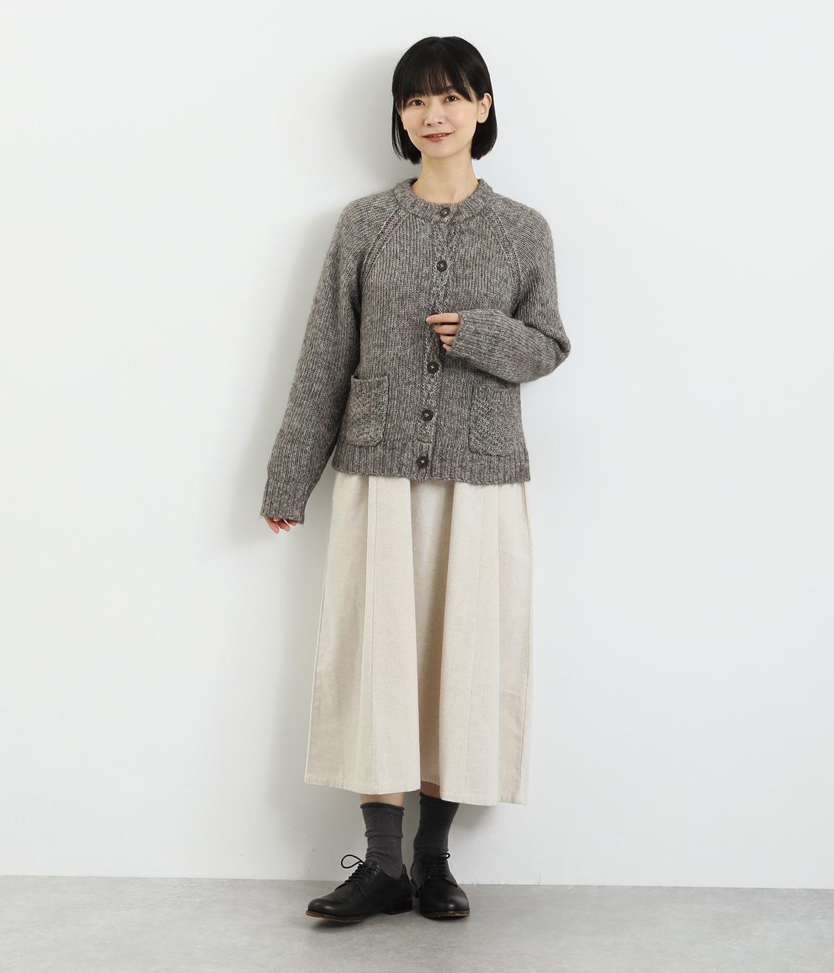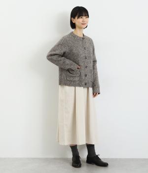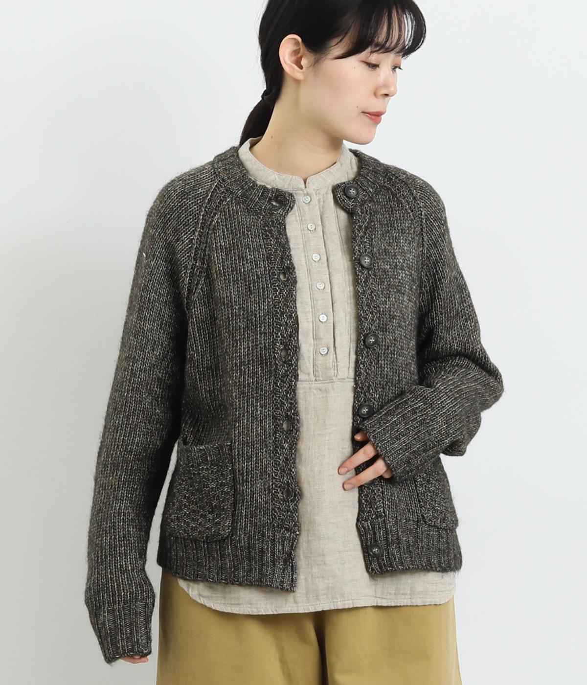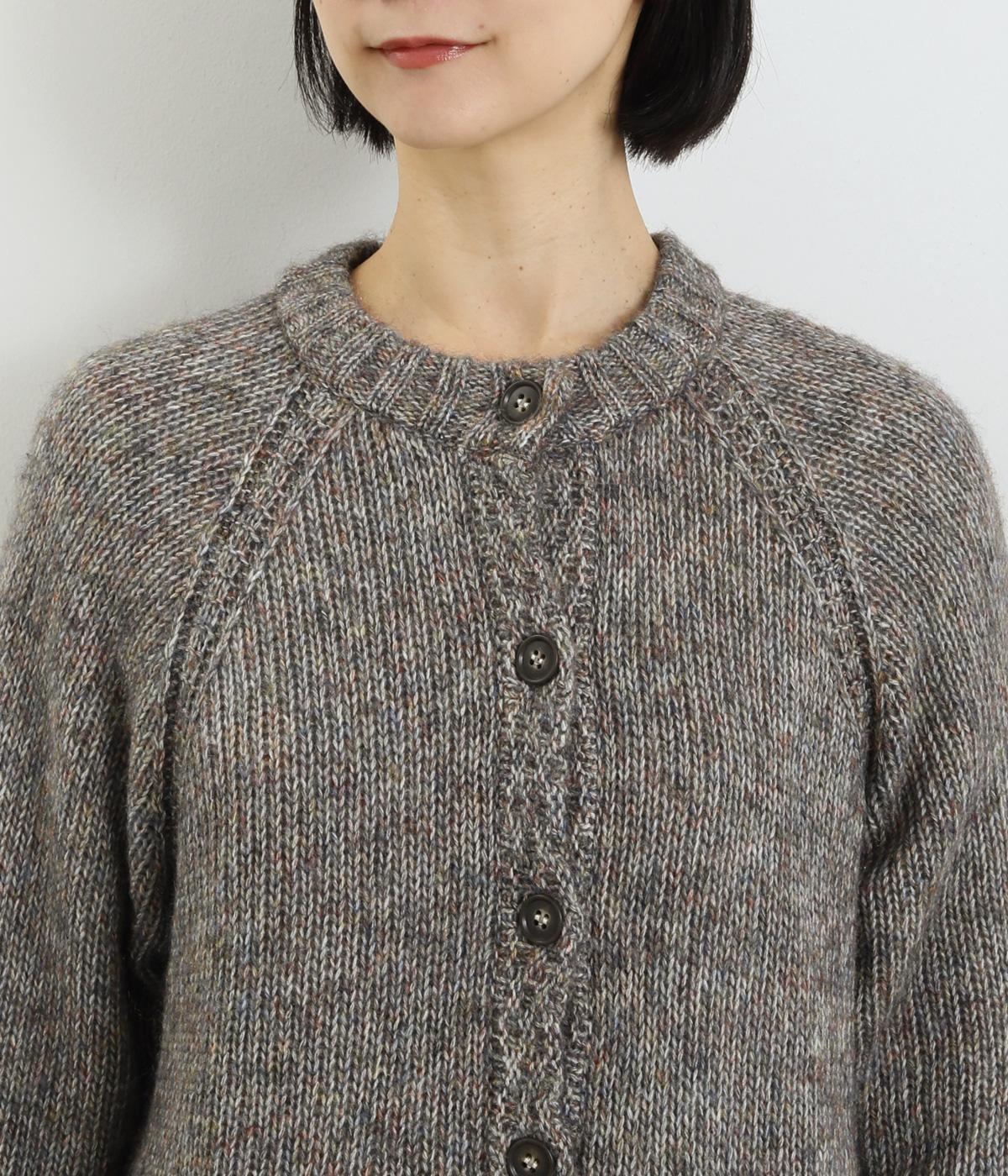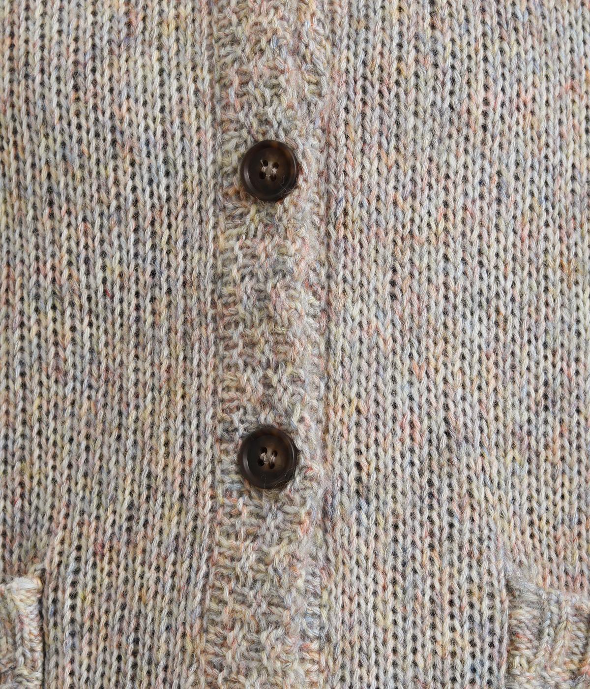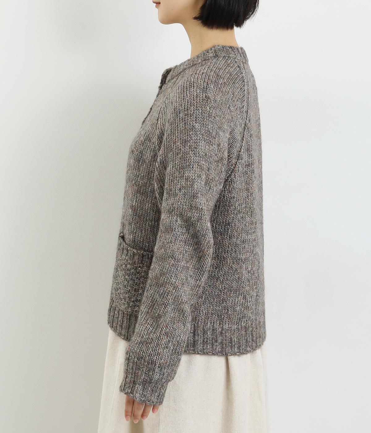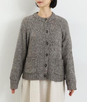 ぬくもりを感じさせるニットカーディガン。ミックス調の独特な風合いを持つ素材を活かした、着まわしやすいシンプルなデザインです。編み目を変えたパッチポケットもアクセントに。
