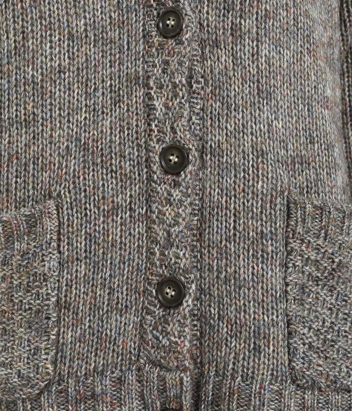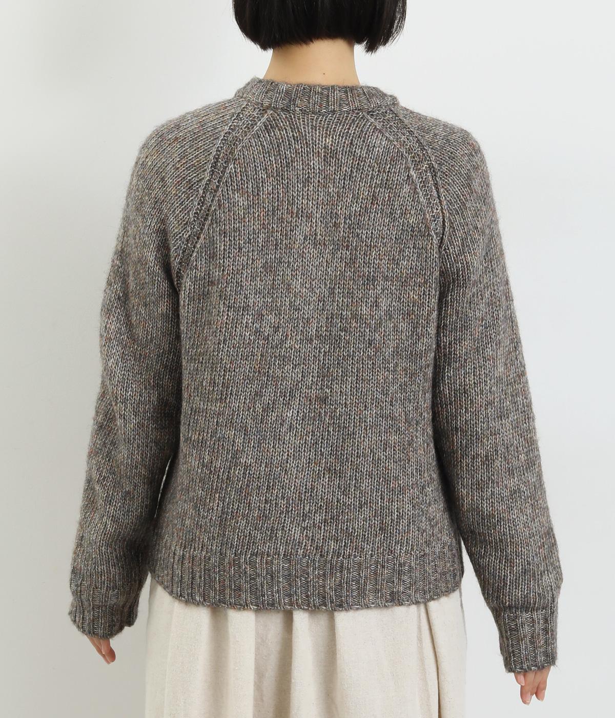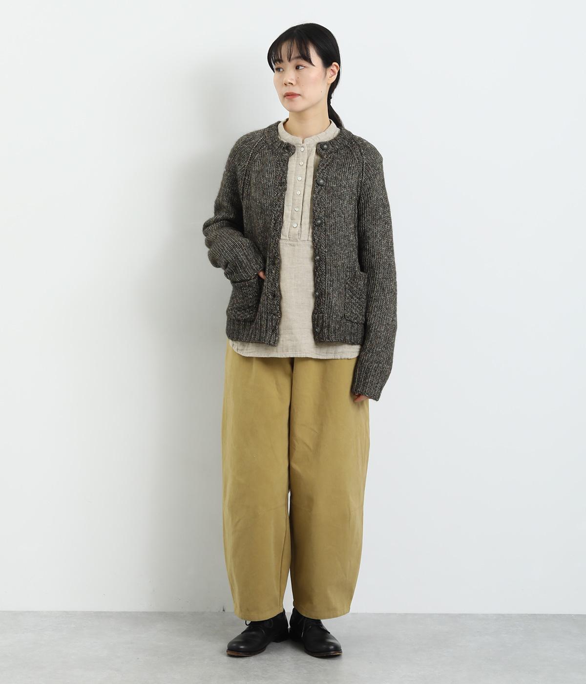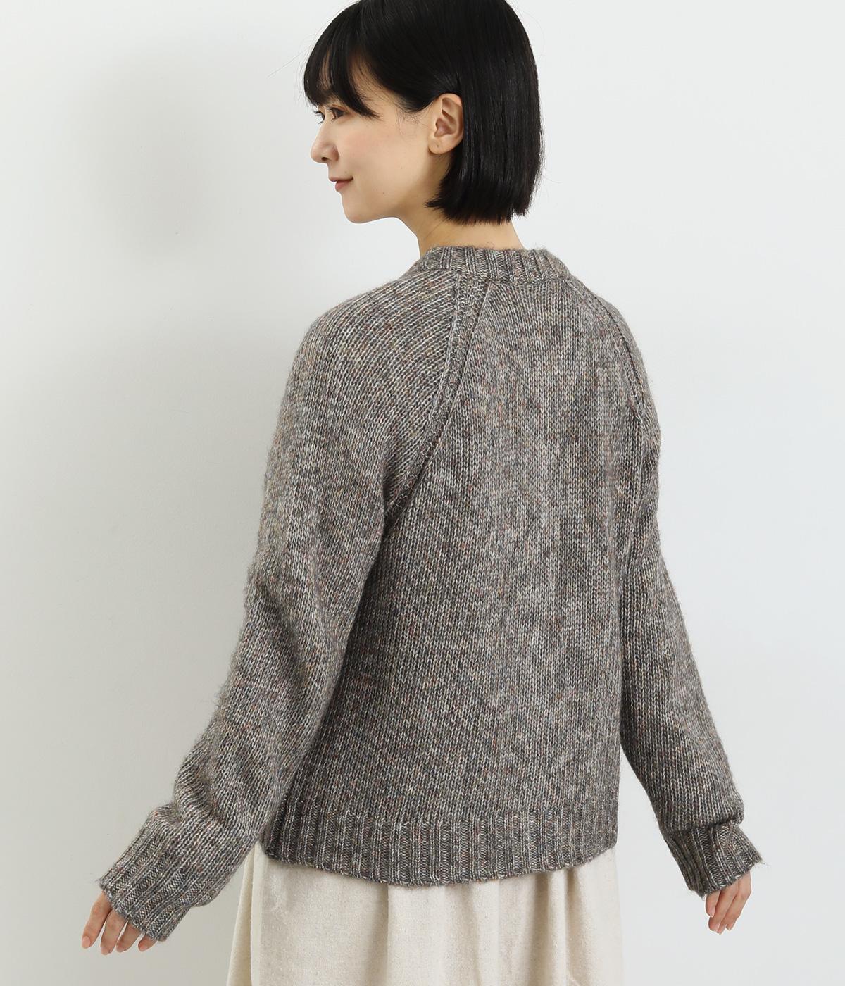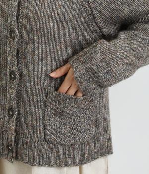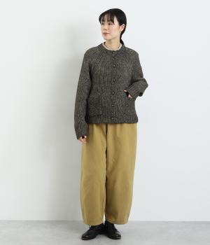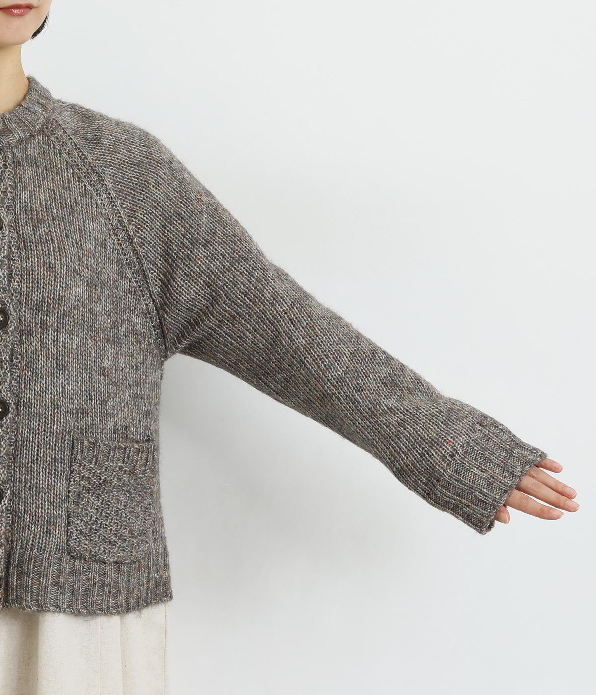 ぬくもりを感じさせるニットカーディガン。ミックス調の独特な風合いを持つ素材を活かした、着まわしやすいシンプルなデザインです。編み目を変えたパッチポケットもアクセントに。