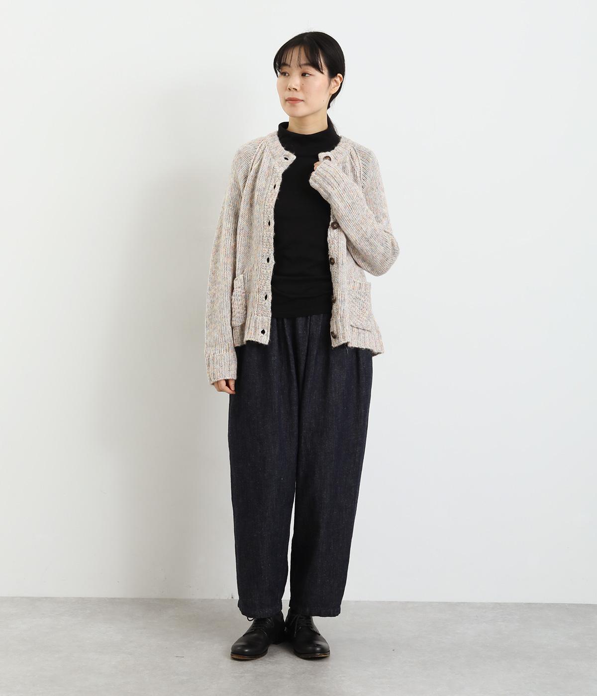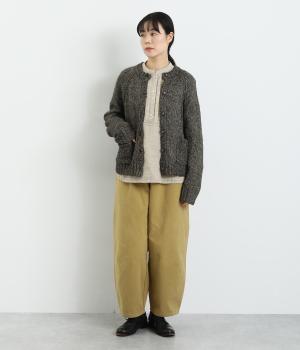 ふわりと空気をふくんだような軽さが特徴のコットン混素材です。さまざまな色みが混ざり合い、奥行きのある雰囲気を作り出しています。伸びがよく着心地抜群で、デイリー使いにぴったりです。