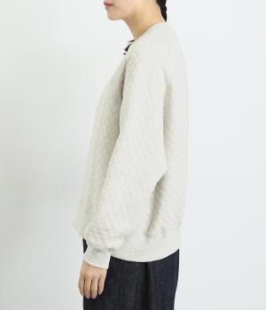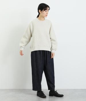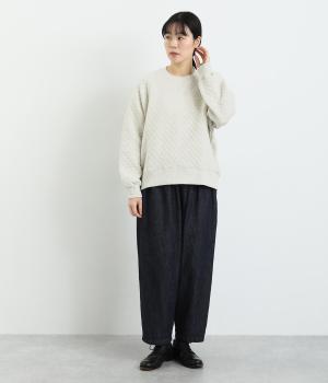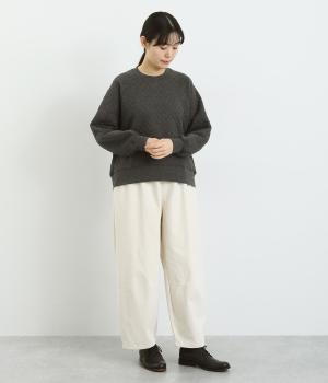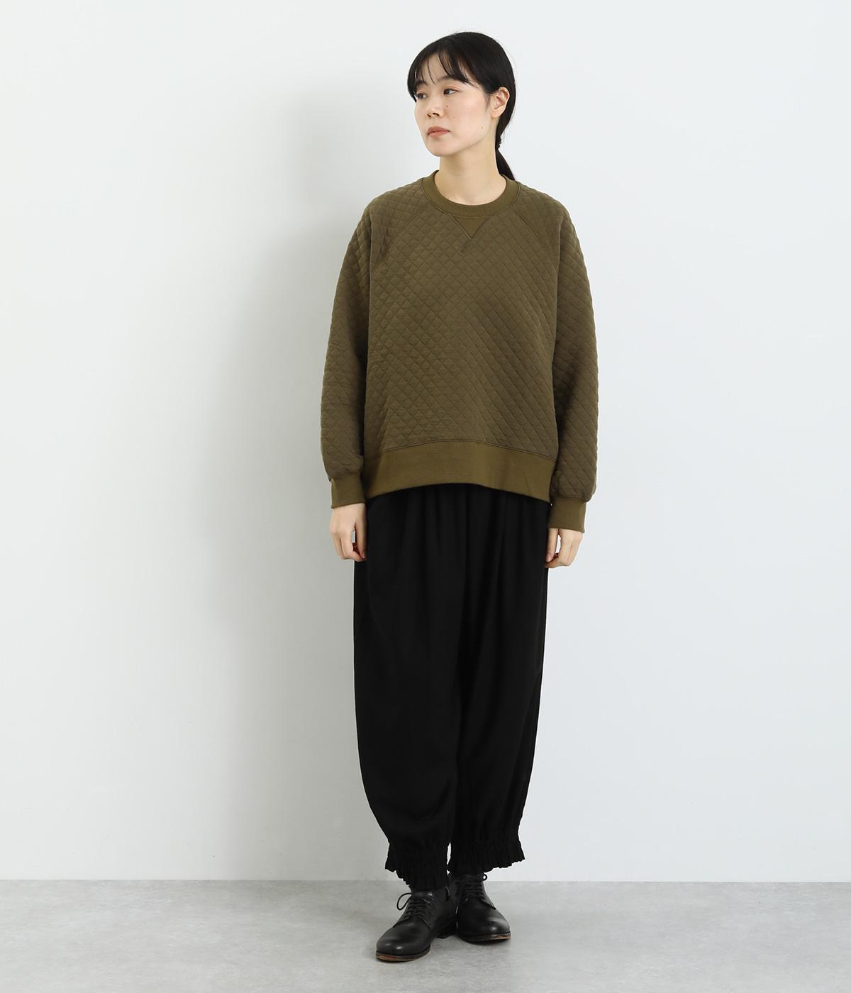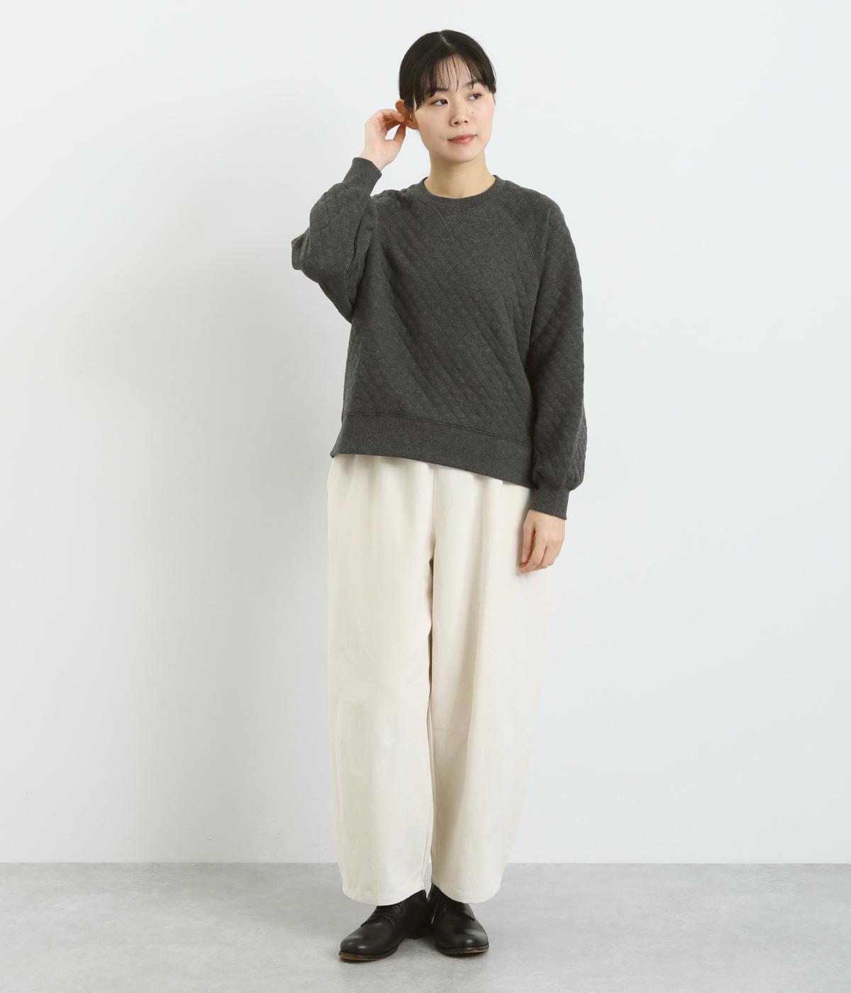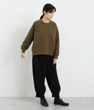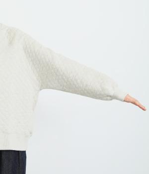 ゆとりのある身幅に仕上げた、シンプルなシルエットのプルオーバーです。袖口のほどよいボリュームがアクセント。キルティングの凹凸で、表情豊かな着こなしを叶えてくれます。体のラインを拾いにくく、体型を気にせず着用できます。