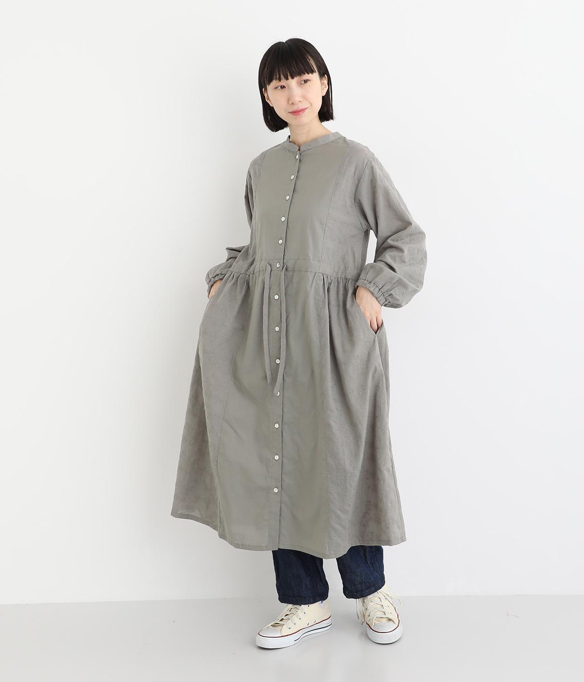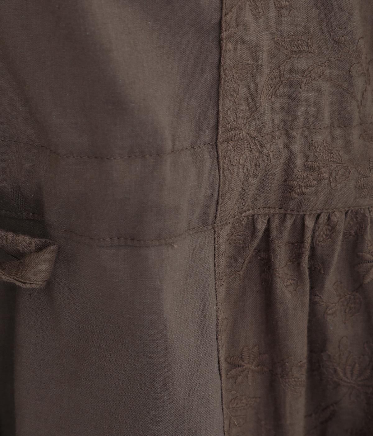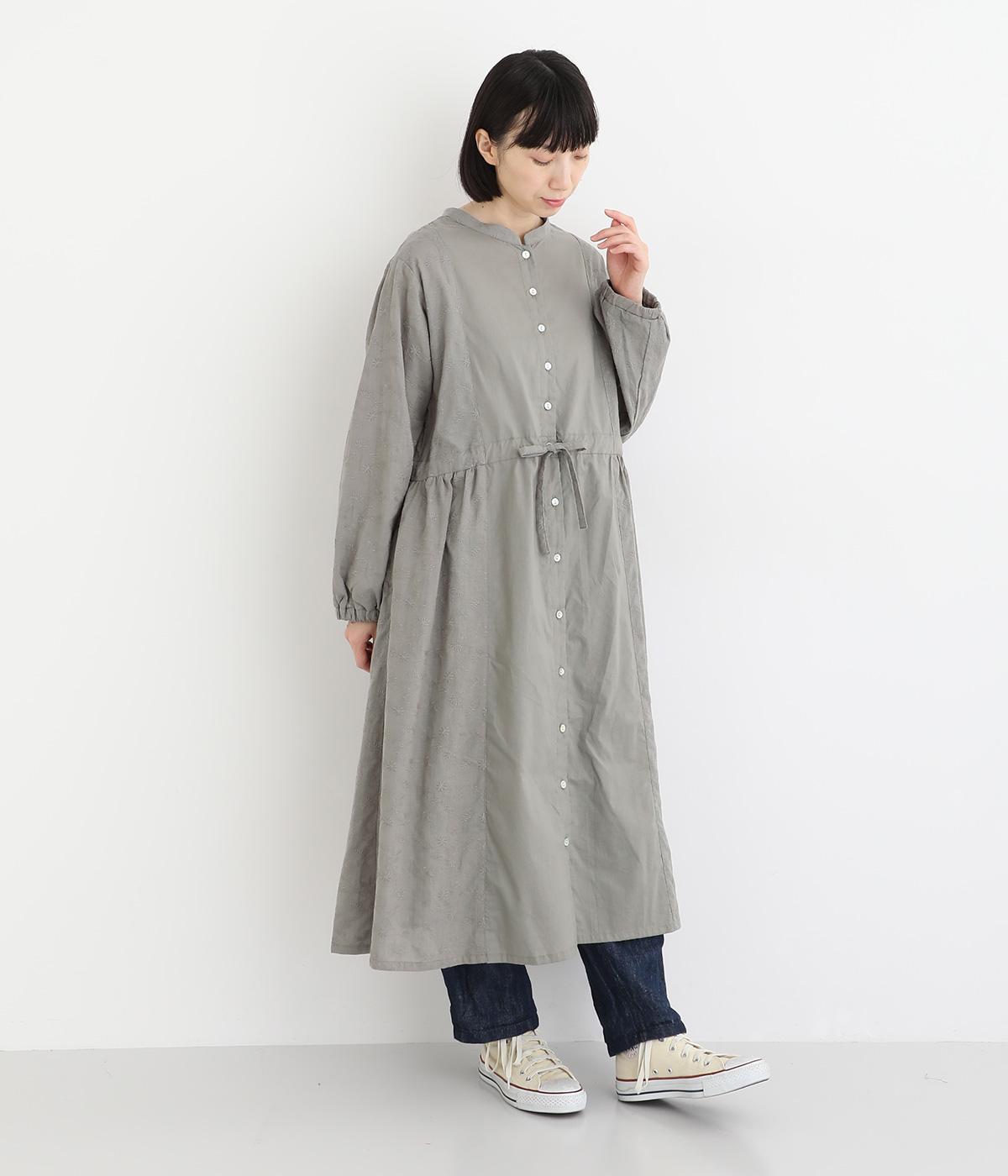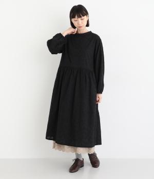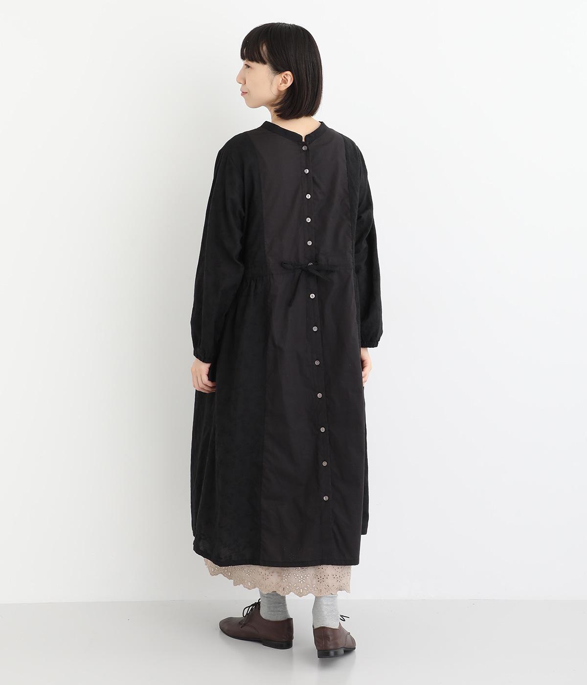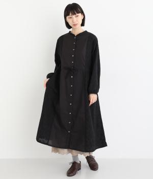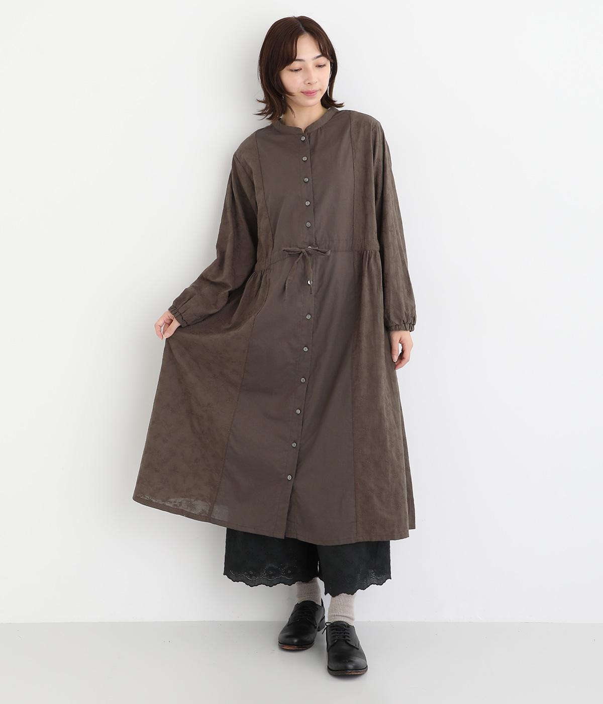 フラワー刺しゅう生地をドッキングし、派手さはおさえつつもこだわりを感じるワンピース。気分によって違った着こなしをたのしめる前後2way仕様です。高めのウエストラインには紐を通して、よりすっきりとアレンジ可能。一枚で着映えしつつレイヤードもサマ見えする便利なアイテムです。