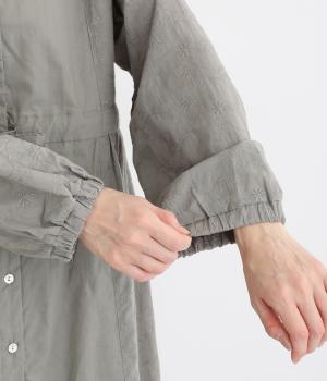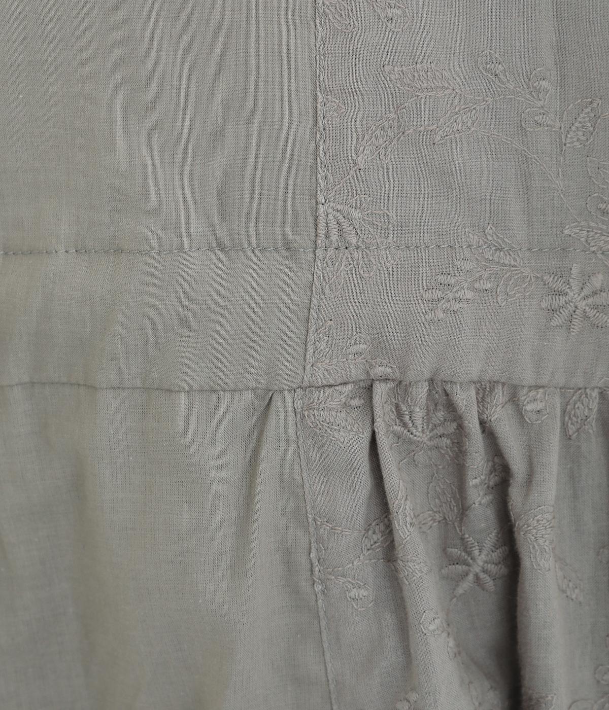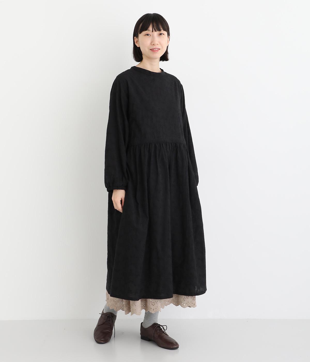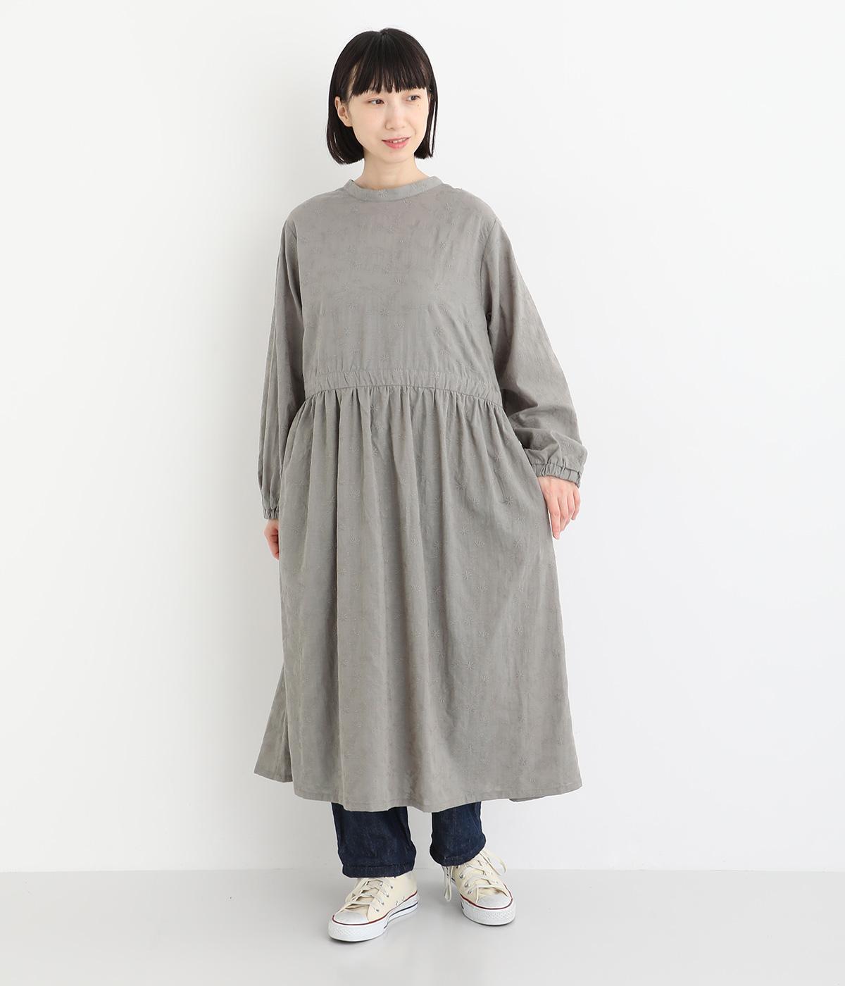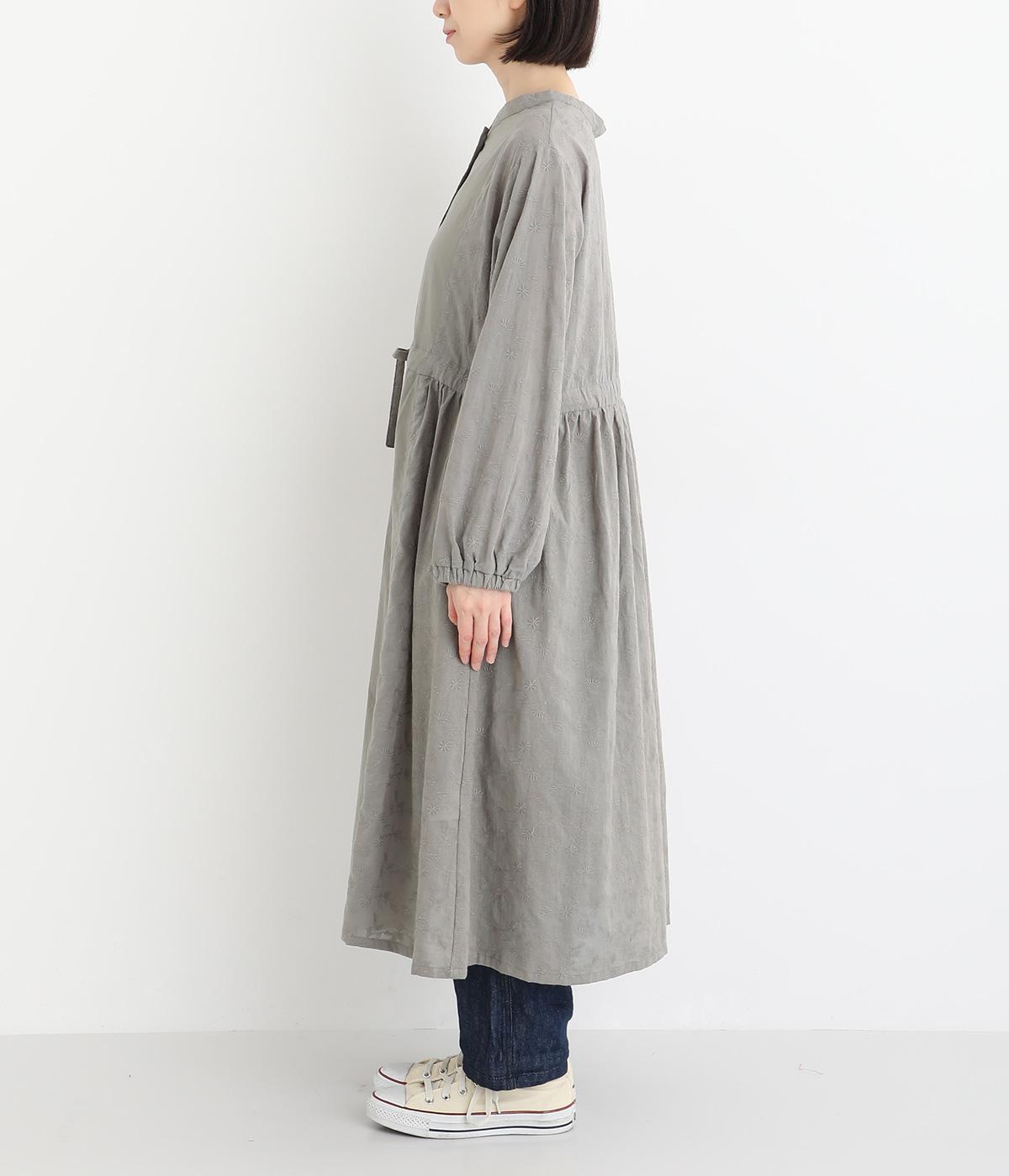 フラワー刺しゅう生地をドッキングし、派手さはおさえつつもこだわりを感じるワンピース。気分によって違った着こなしをたのしめる前後2way仕様です。高めのウエストラインには紐を通して、よりすっきりとアレンジ可能。一枚で着映えしつつレイヤードもサマ見えする便利なアイテムです。