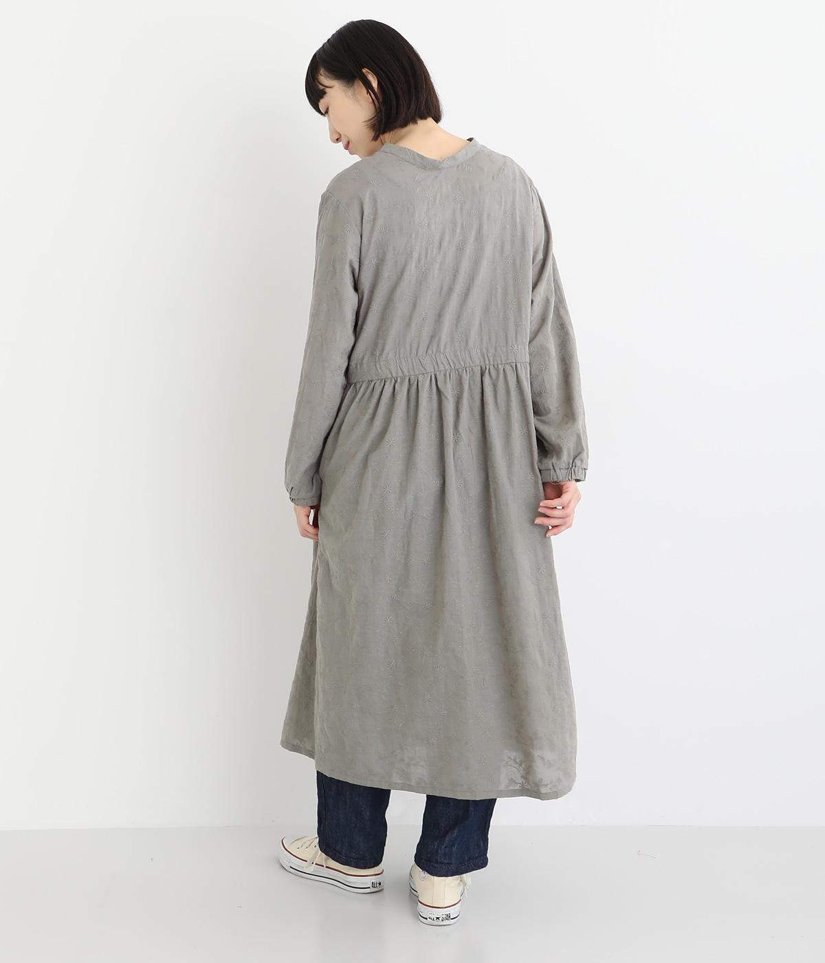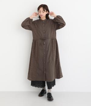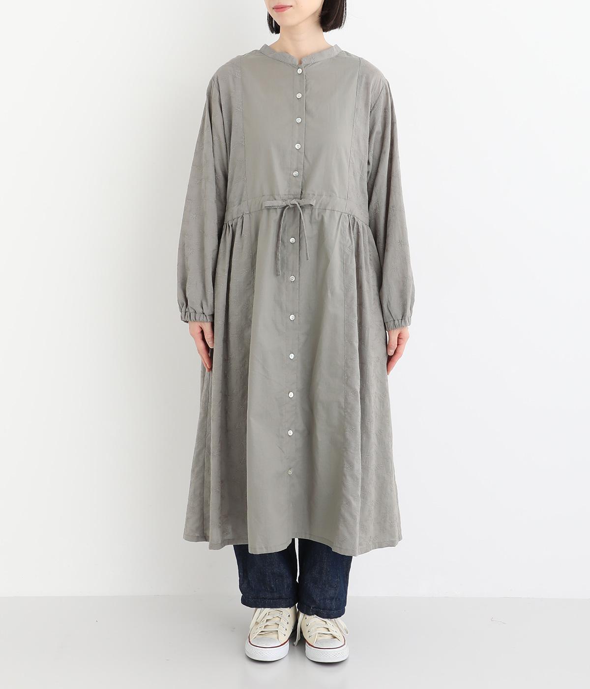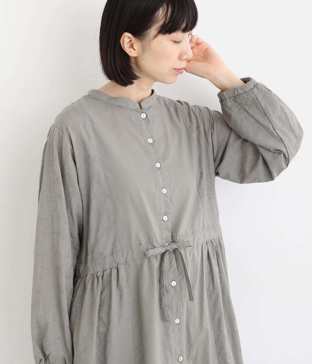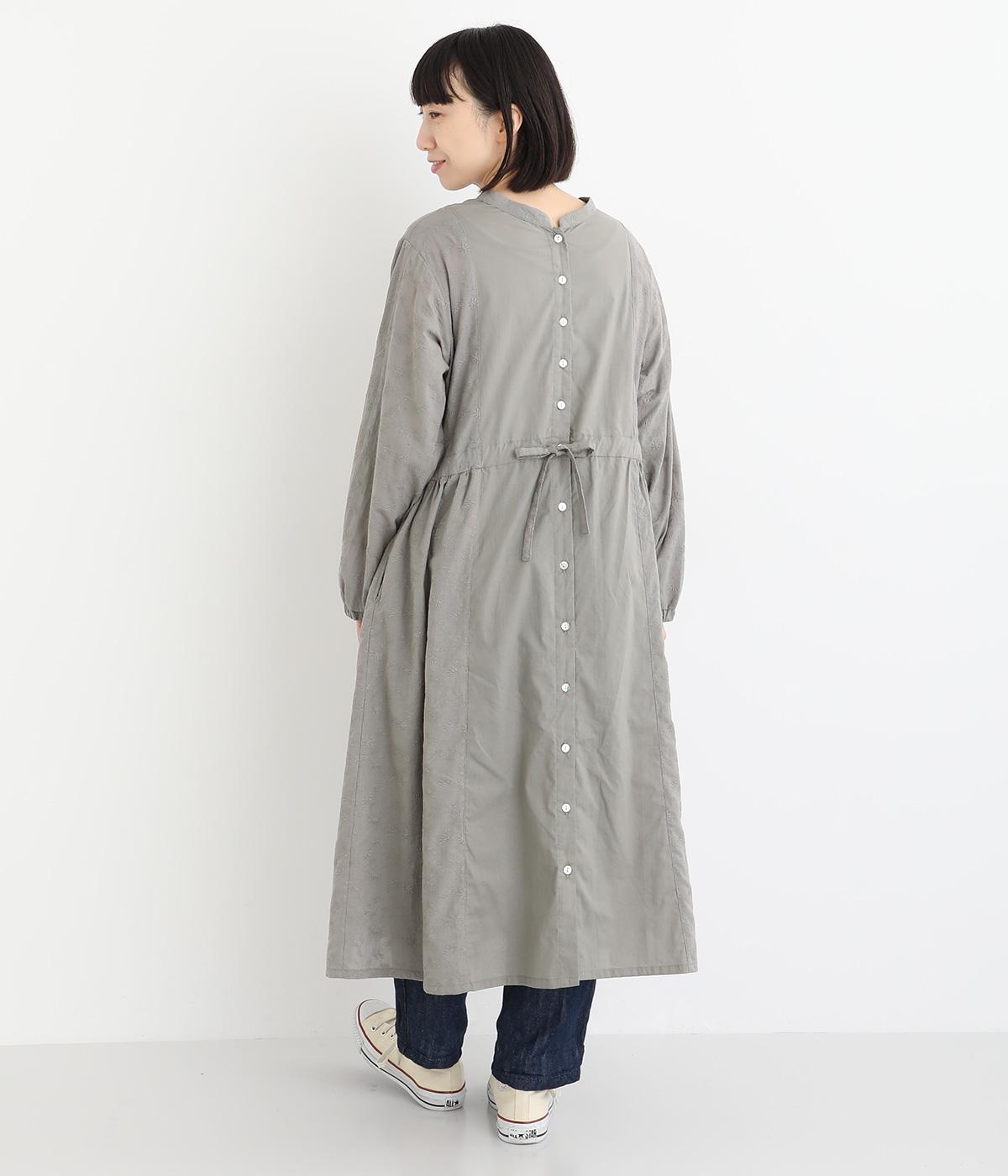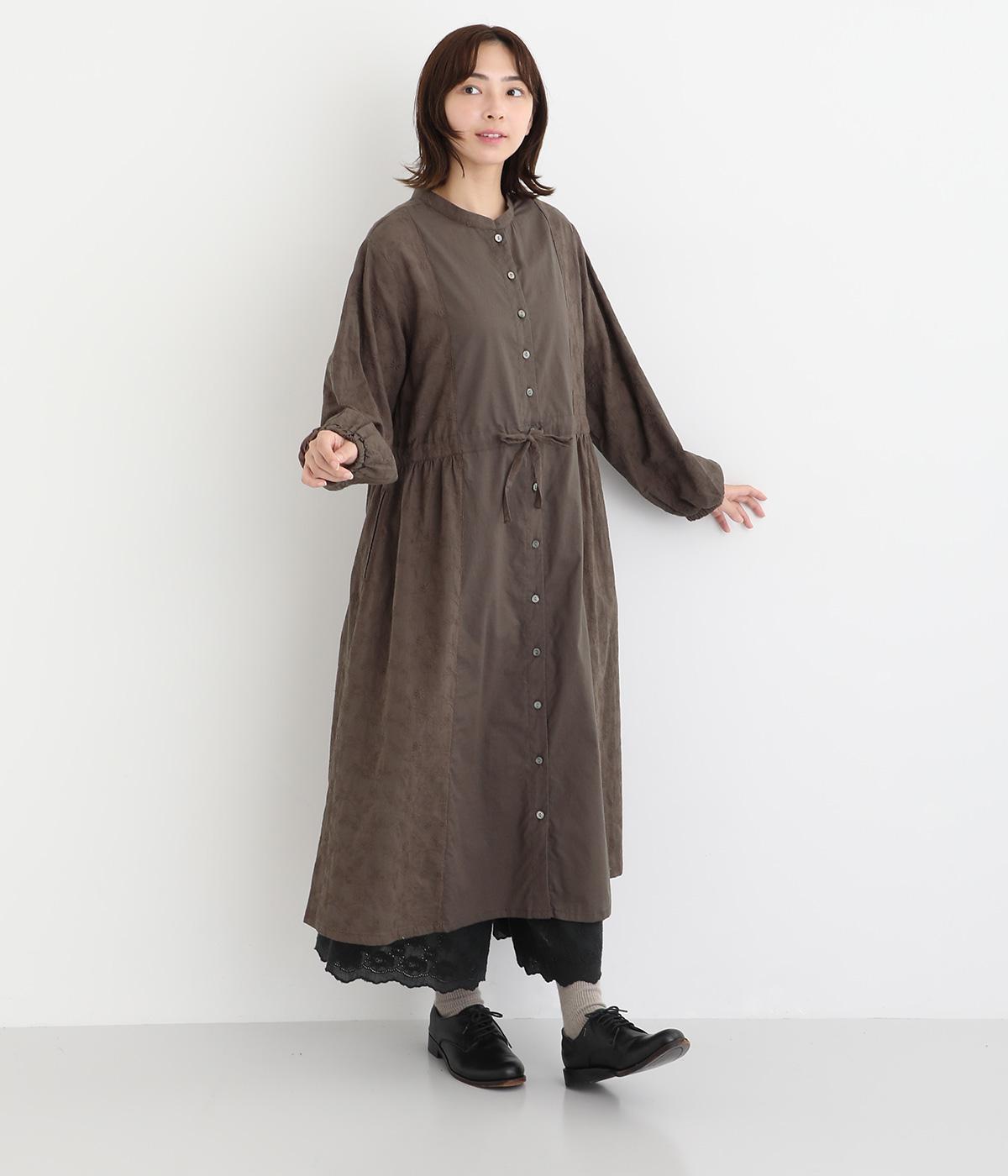 フラワー刺しゅう生地をドッキングし、派手さはおさえつつもこだわりを感じるワンピース。気分によって違った着こなしをたのしめる前後2way仕様です。高めのウエストラインには紐を通して、よりすっきりとアレンジ可能。一枚で着映えしつつレイヤードもサマ見えする便利なアイテムです。