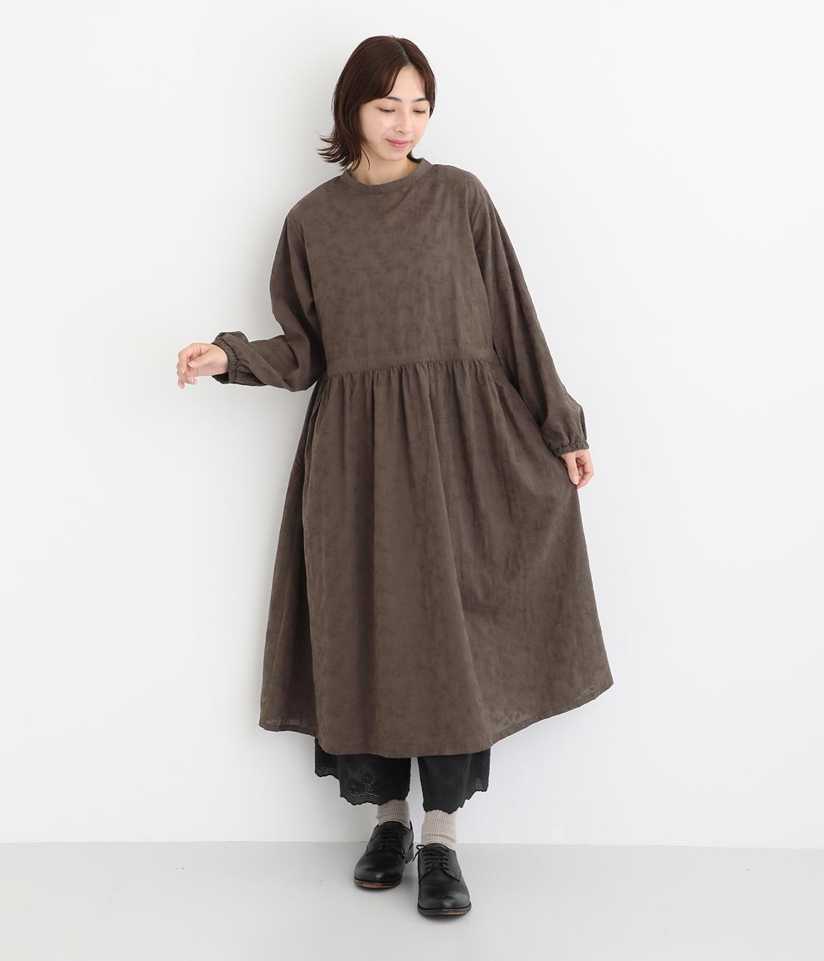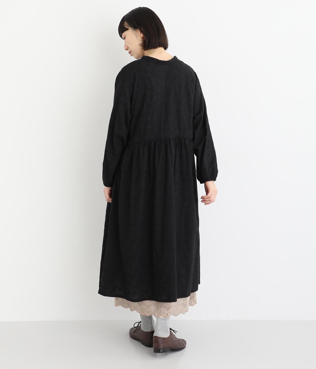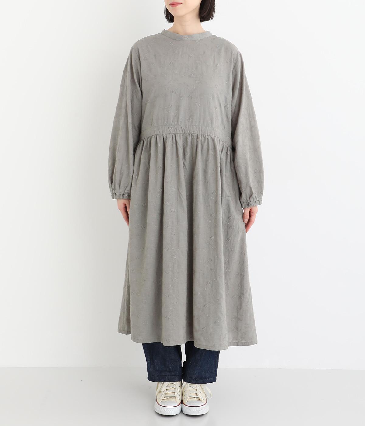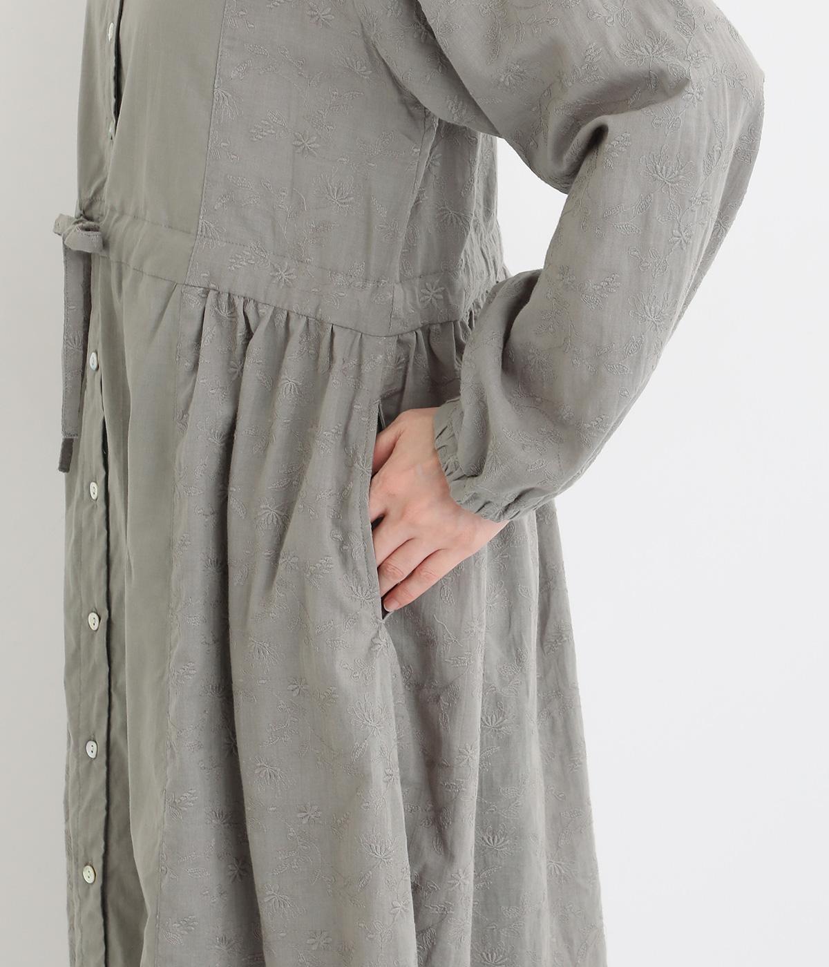 フラワー刺しゅう生地をドッキングし、派手さはおさえつつもこだわりを感じるワンピース。気分によって違った着こなしをたのしめる前後2way仕様です。高めのウエストラインには紐を通して、よりすっきりとアレンジ可能。一枚で着映えしつつレイヤードもサマ見えする便利なアイテムです。