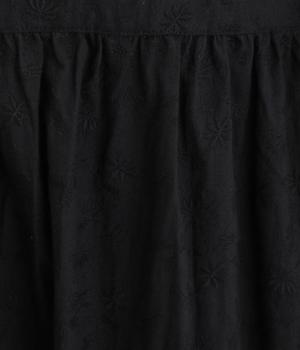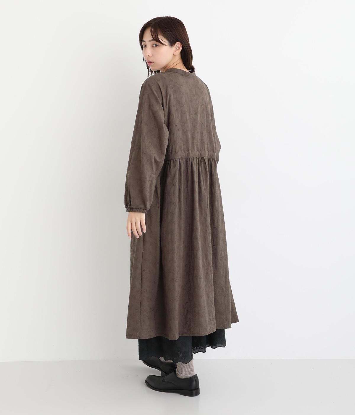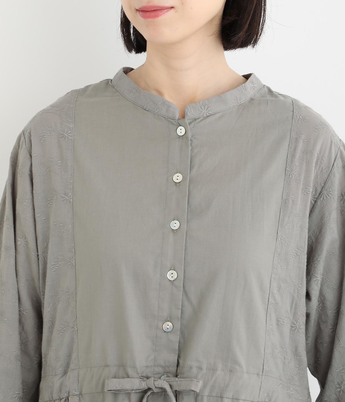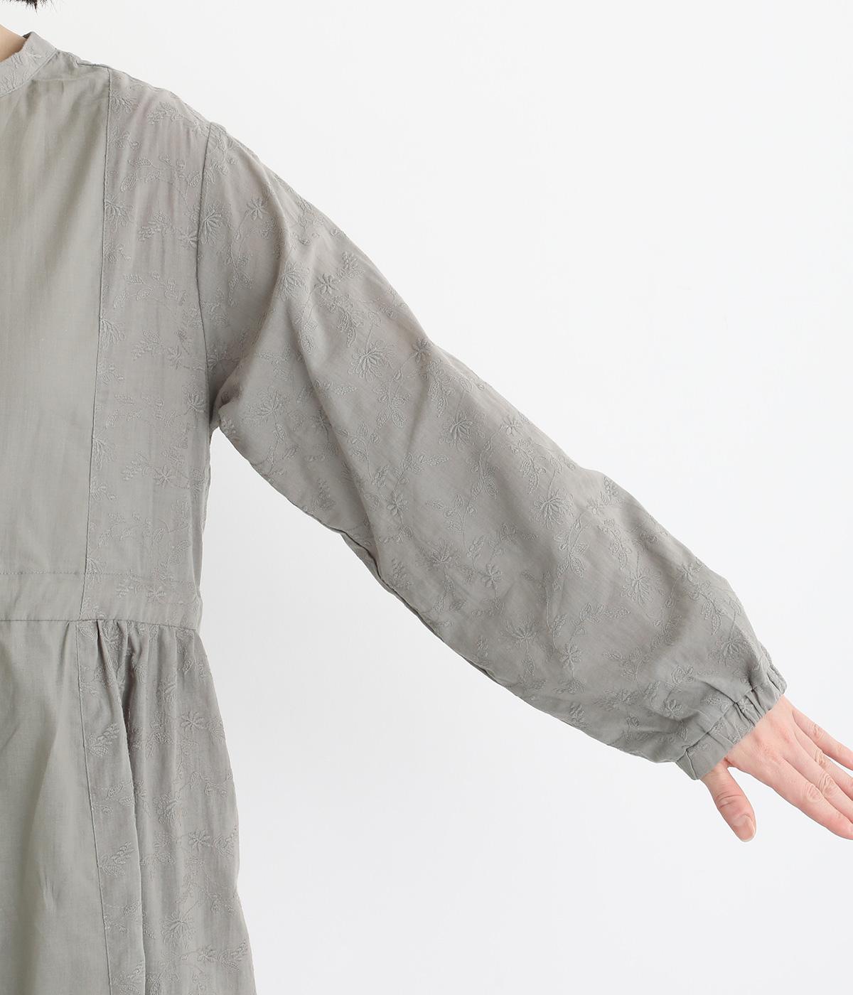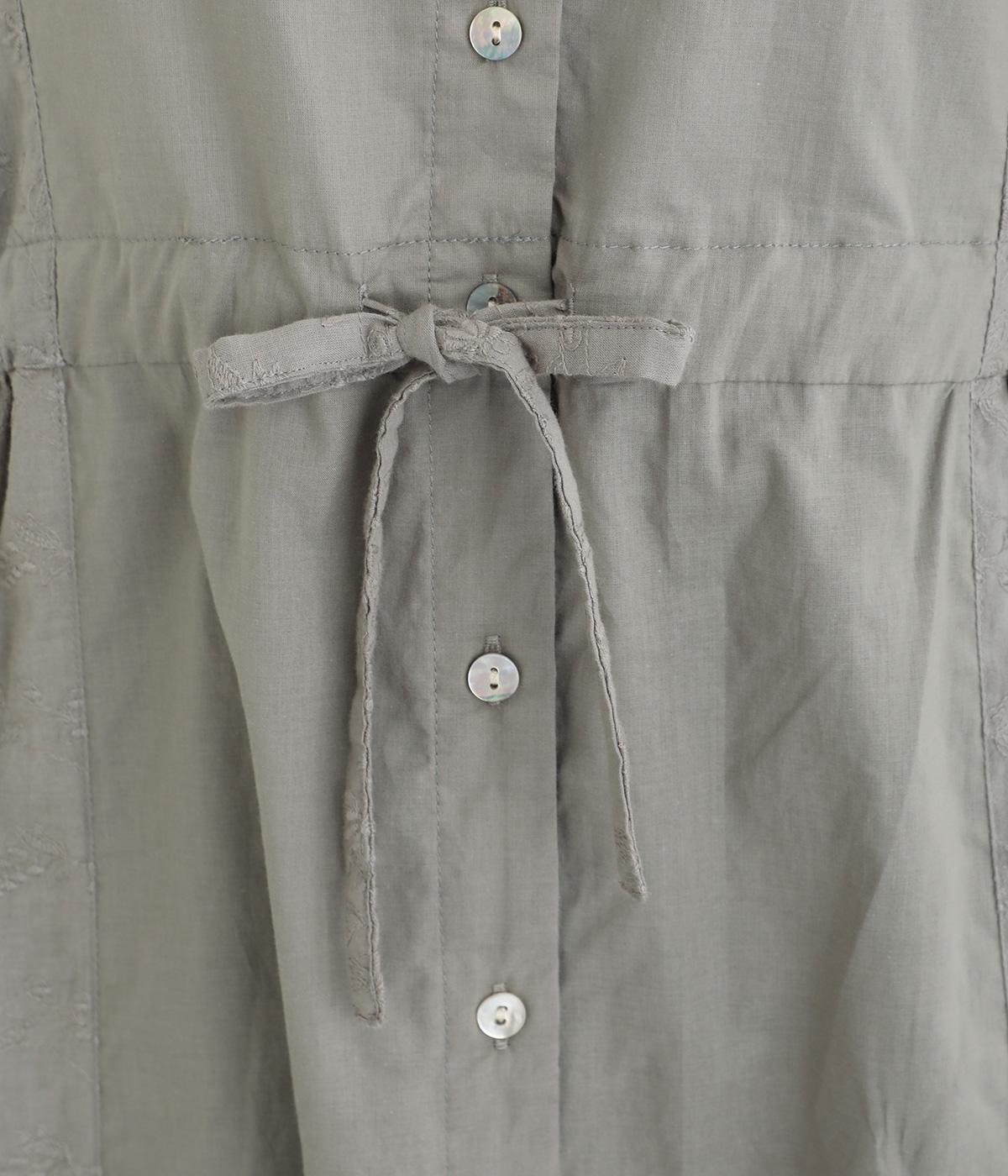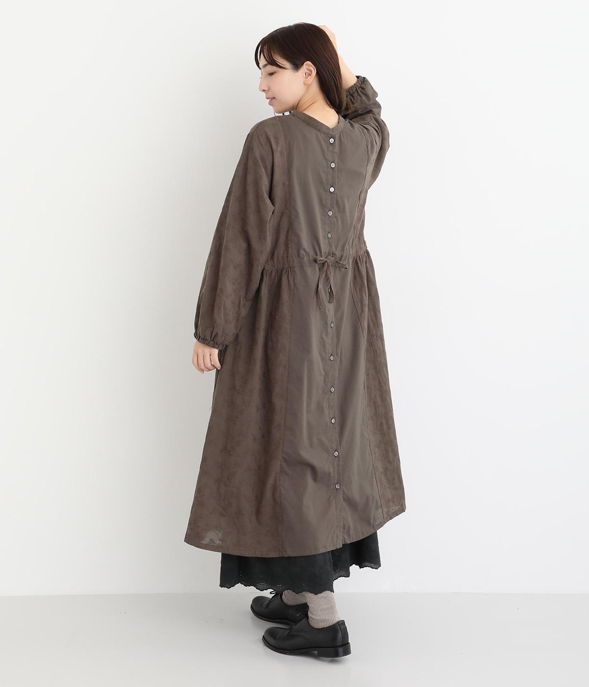 フラワー刺しゅう生地をドッキングし、派手さはおさえつつもこだわりを感じるワンピース。気分によって違った着こなしをたのしめる前後2way仕様です。高めのウエストラインには紐を通して、よりすっきりとアレンジ可能。一枚で着映えしつつレイヤードもサマ見えする便利なアイテムです。