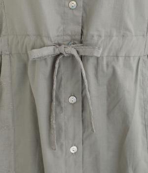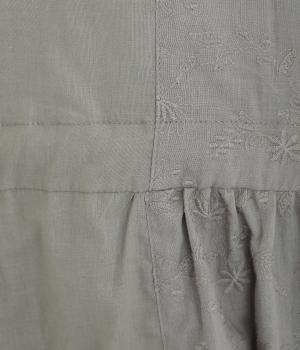 薄手で軽く、やわらかな風合いが魅力の着心地の良いコットン生地。ベースと同色の糸で仕上げたさりげないフラワー刺しゅうをあしらった生地を組み合わせています。