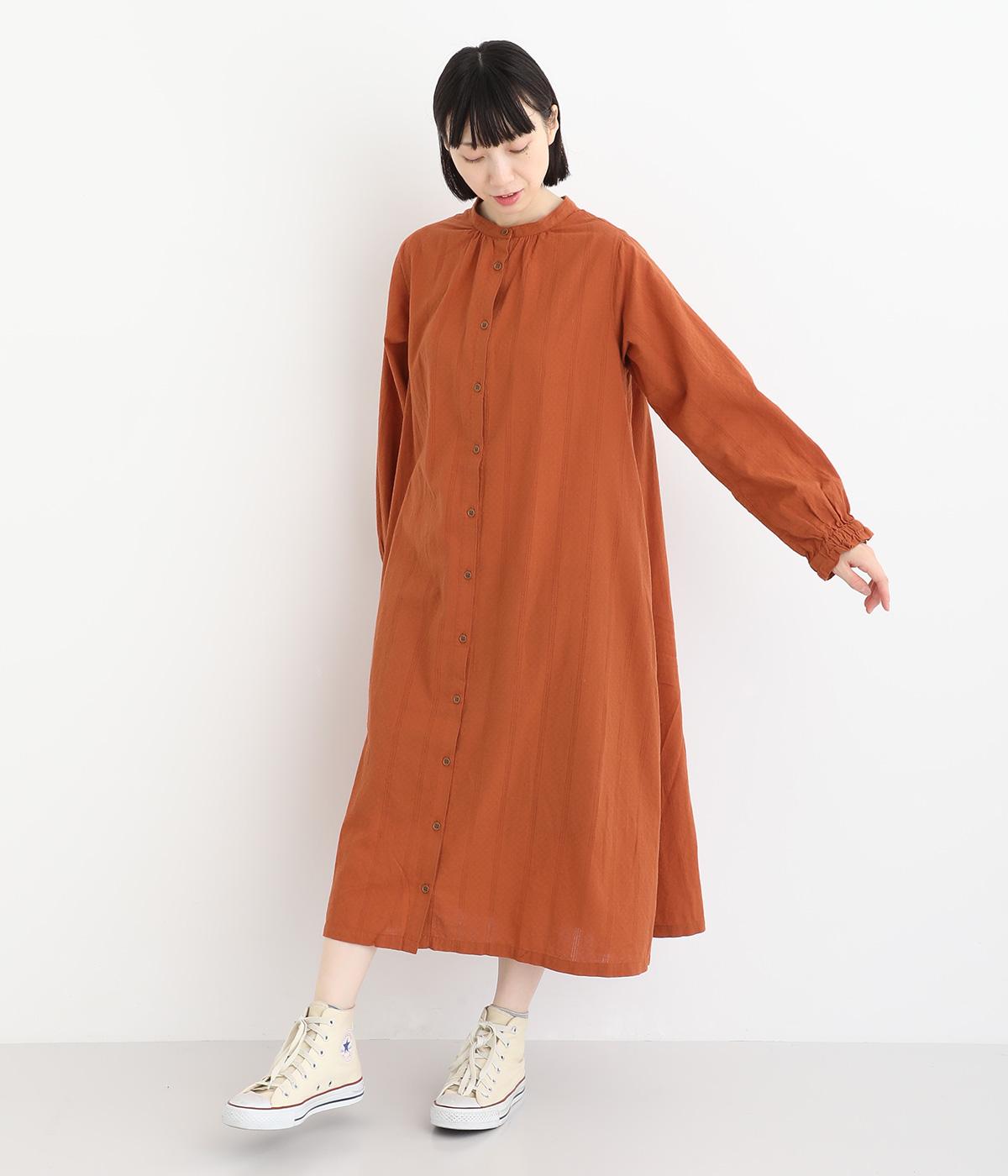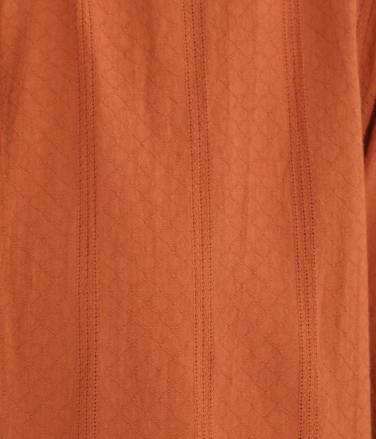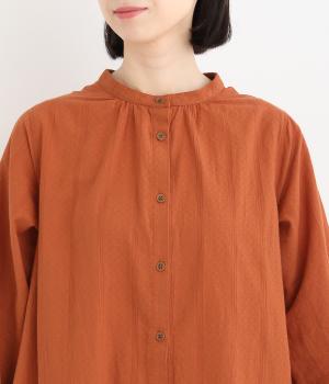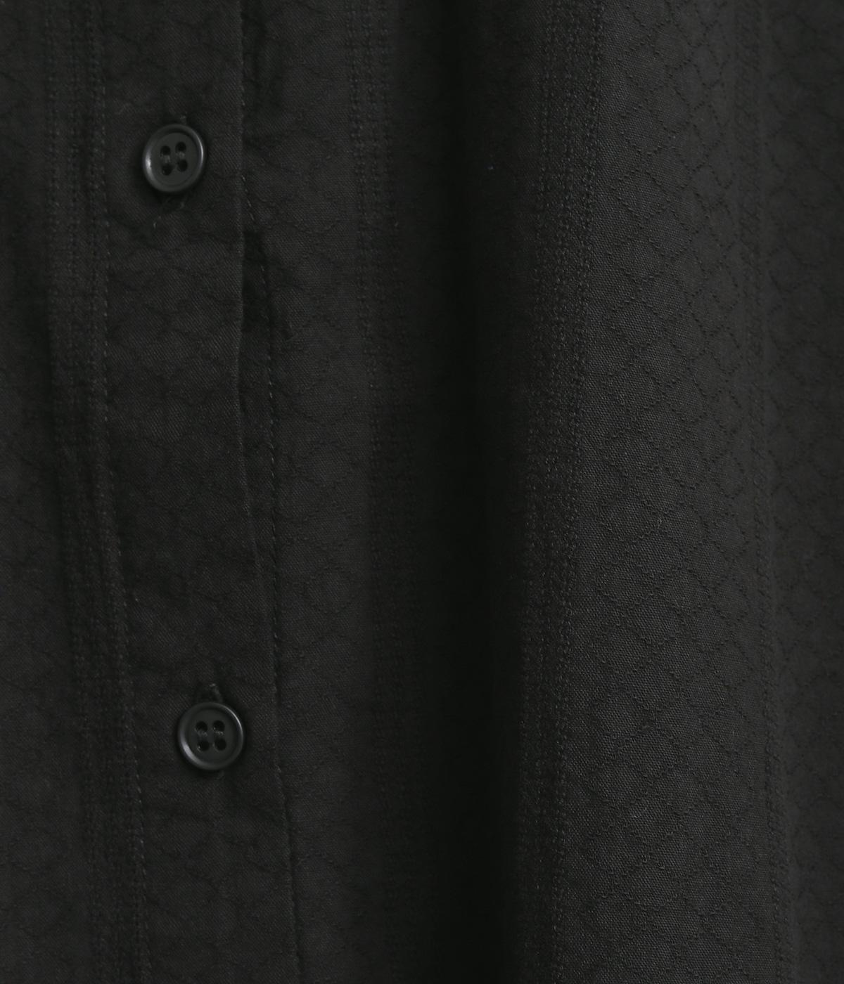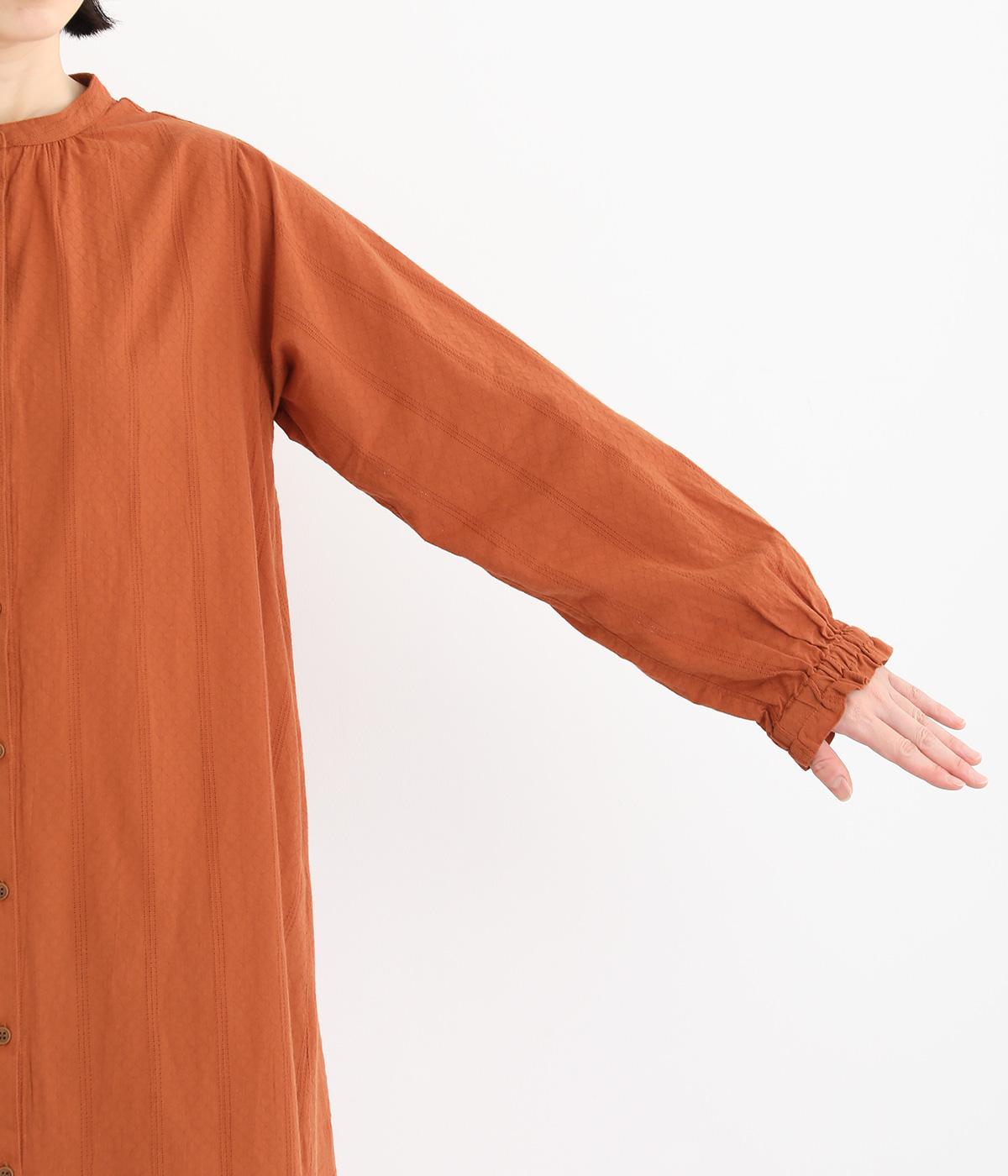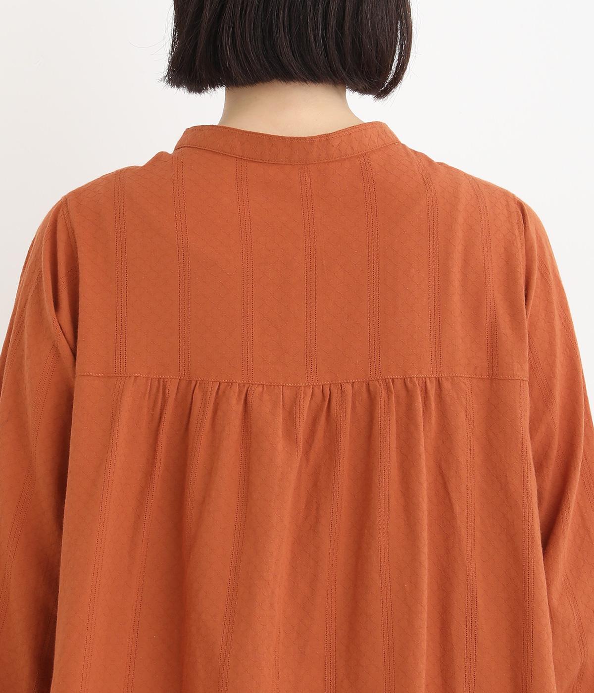 ストライプと格子状のさりげない織り柄をたのしめる薄手のコットンドビー生地。とてもやわらかな肌触りで通気性がよく、寒暖差の激しい時期にも快適に着用できます。