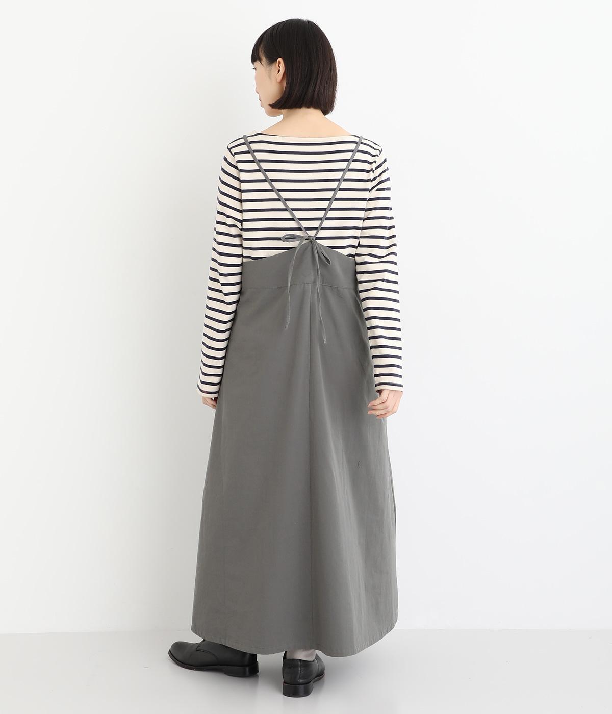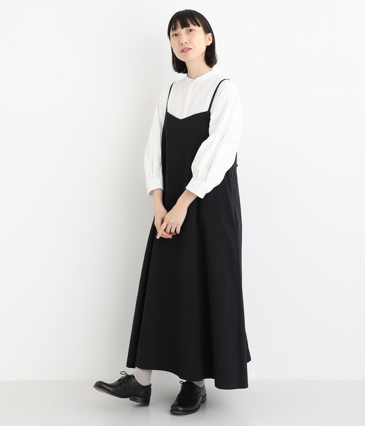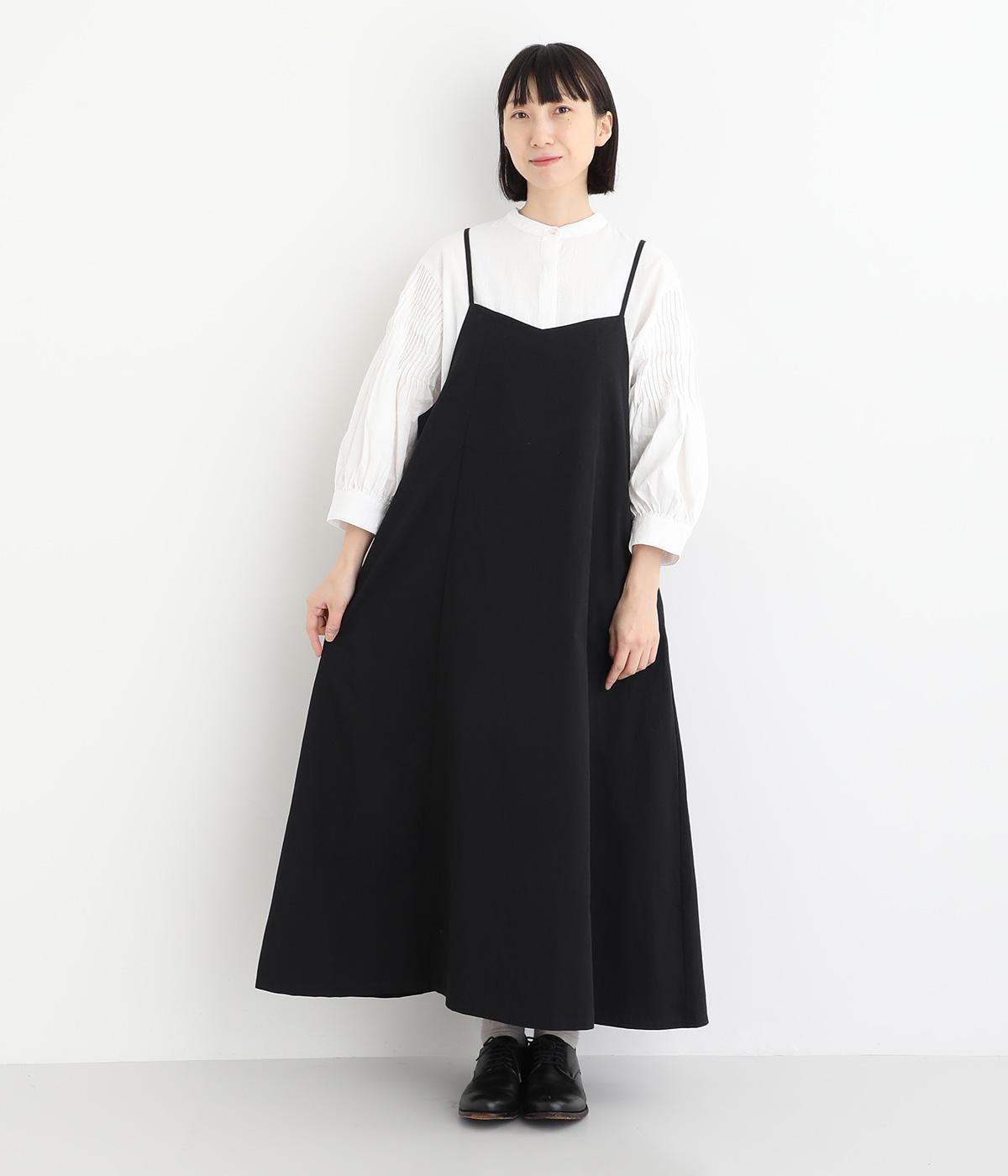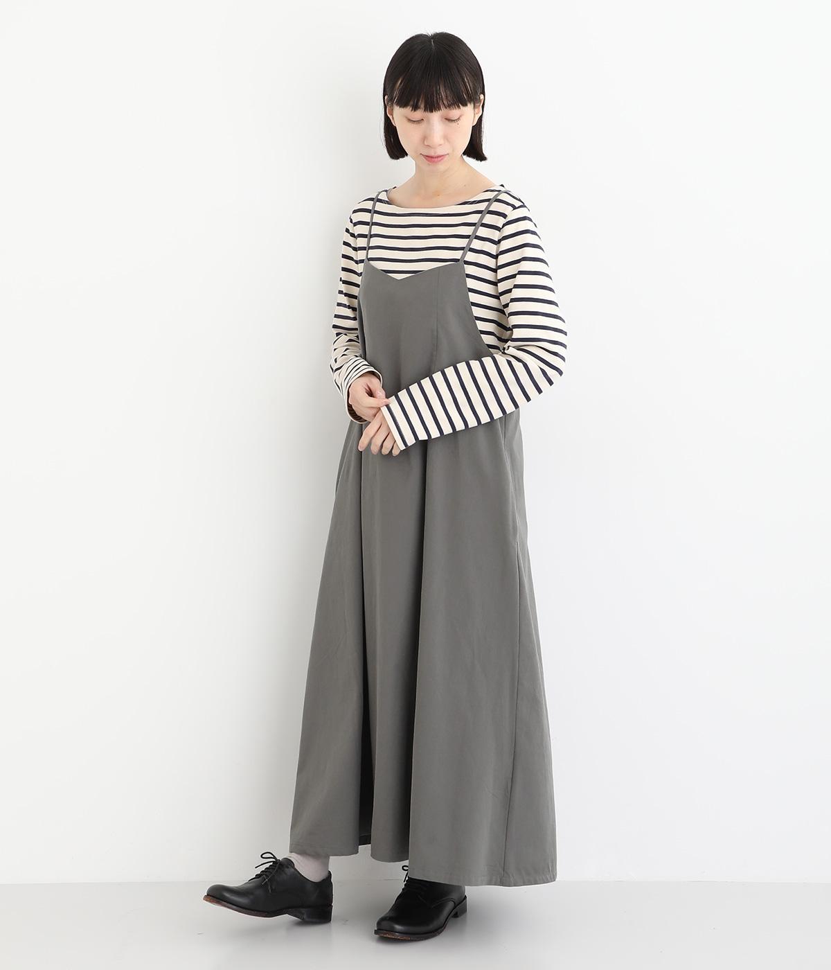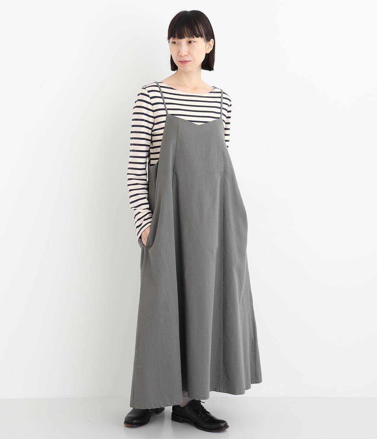 きれいなドレープを描きながら裾に向かって広がるフレアシルエットのキャミワンピース。体のラインを拾わず、バランスの良い着こなしを叶えてくれます。後ろのリボンで肩紐の長さを自在に調整可能。合わせるインナー次第で季節を問わずに着まわせます。