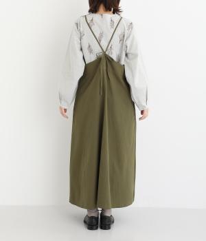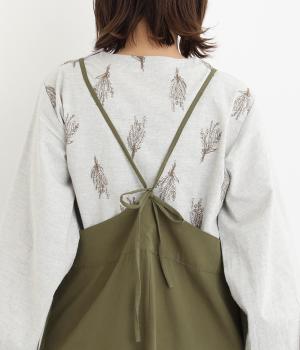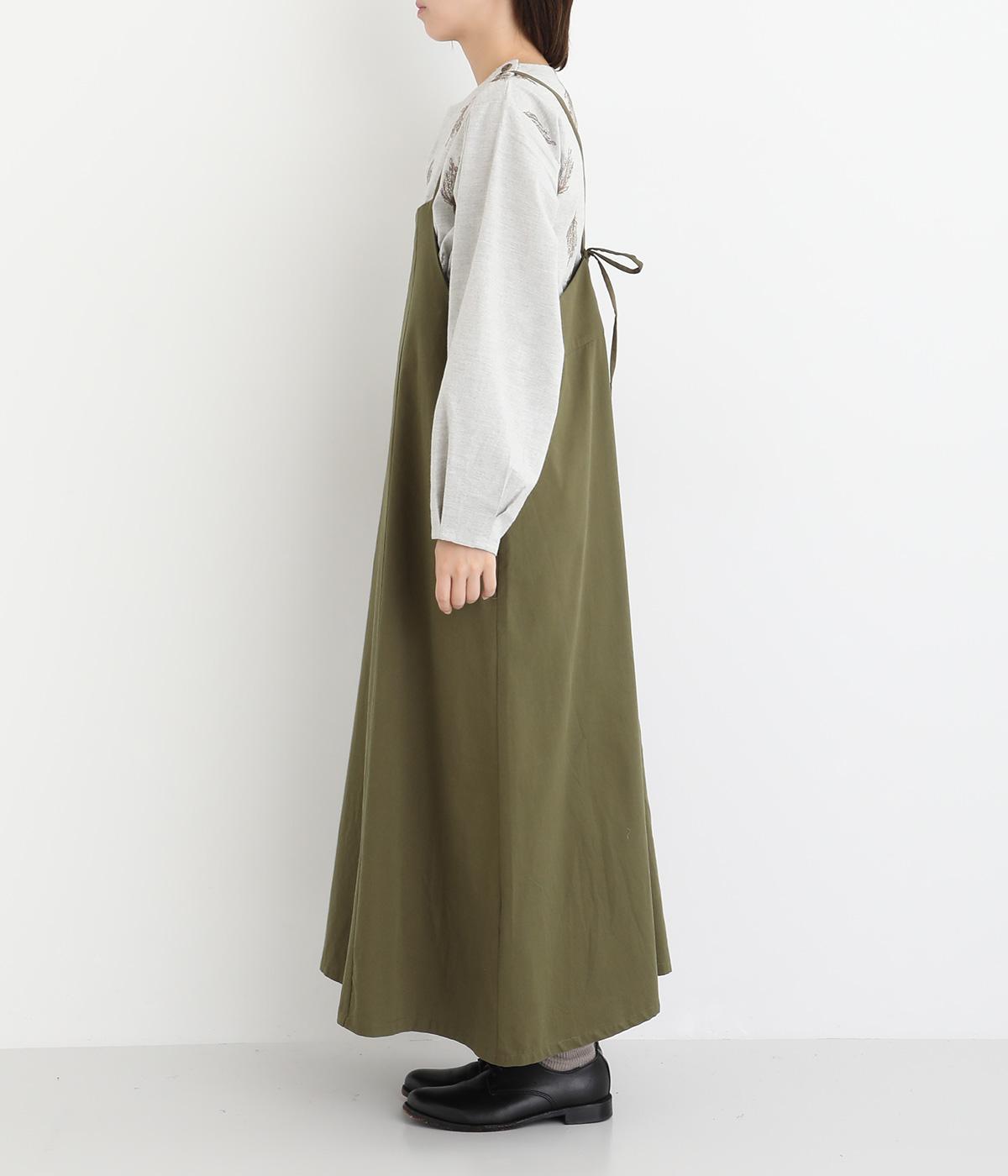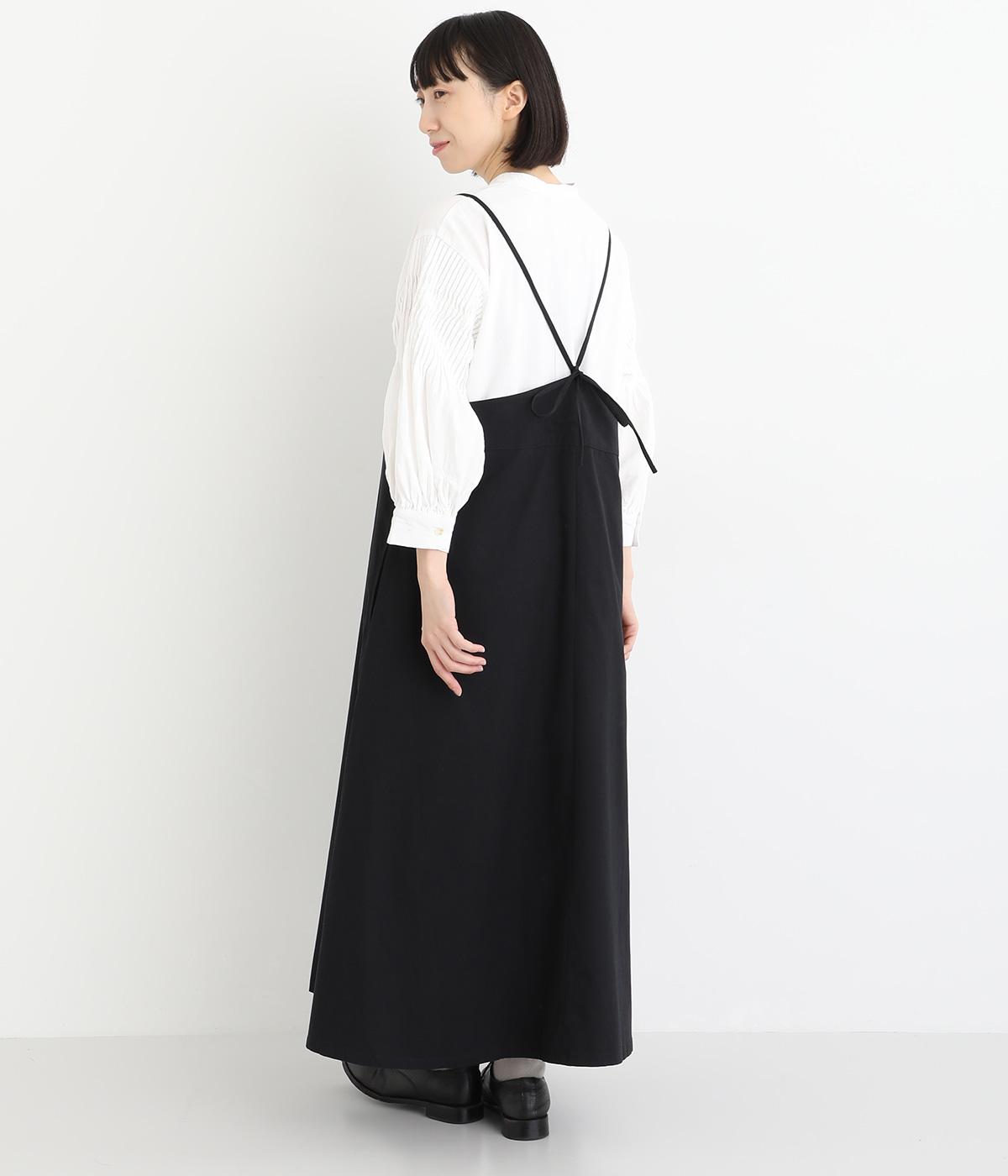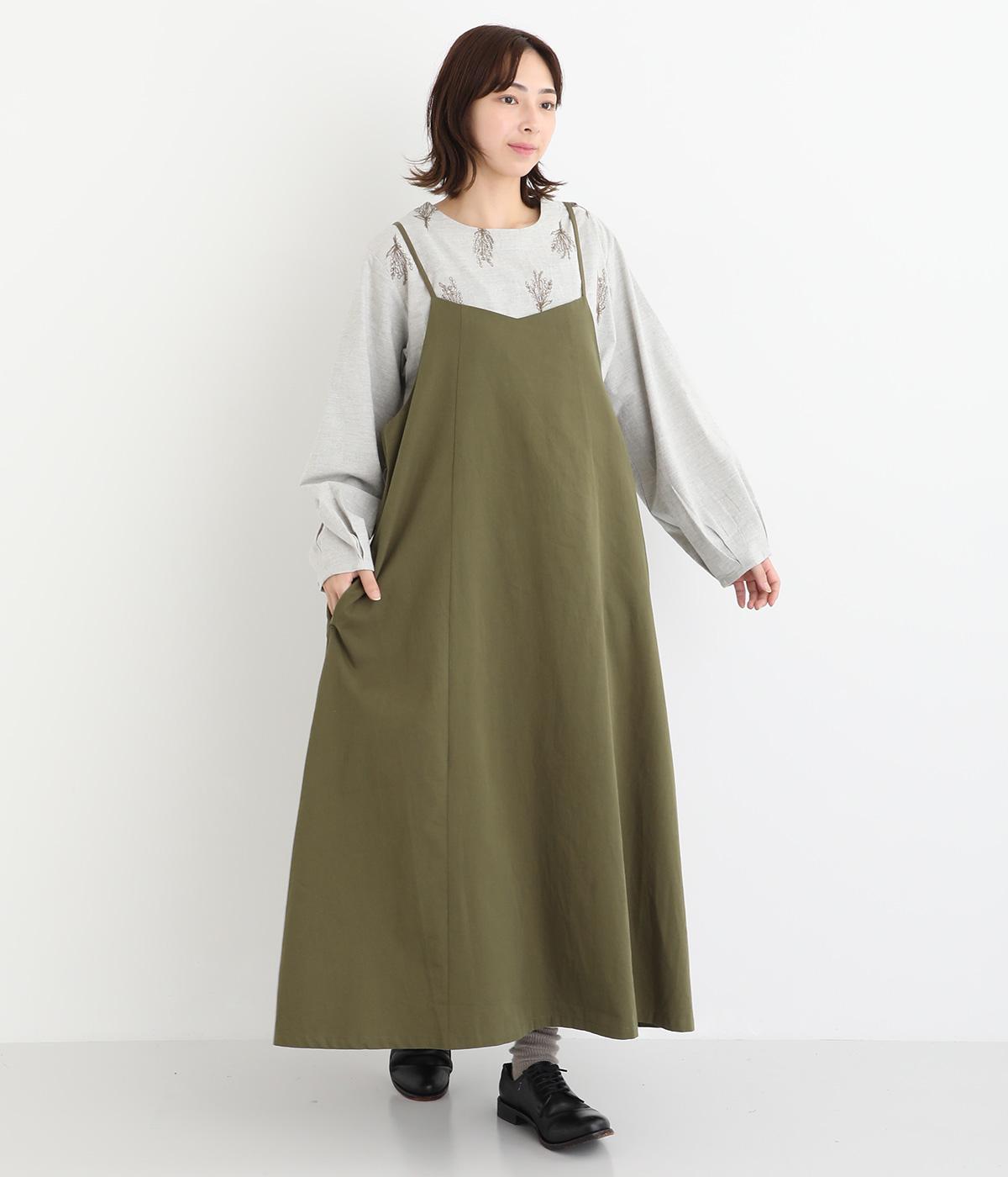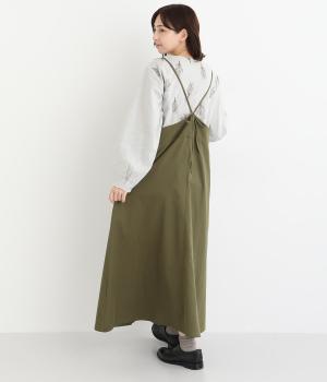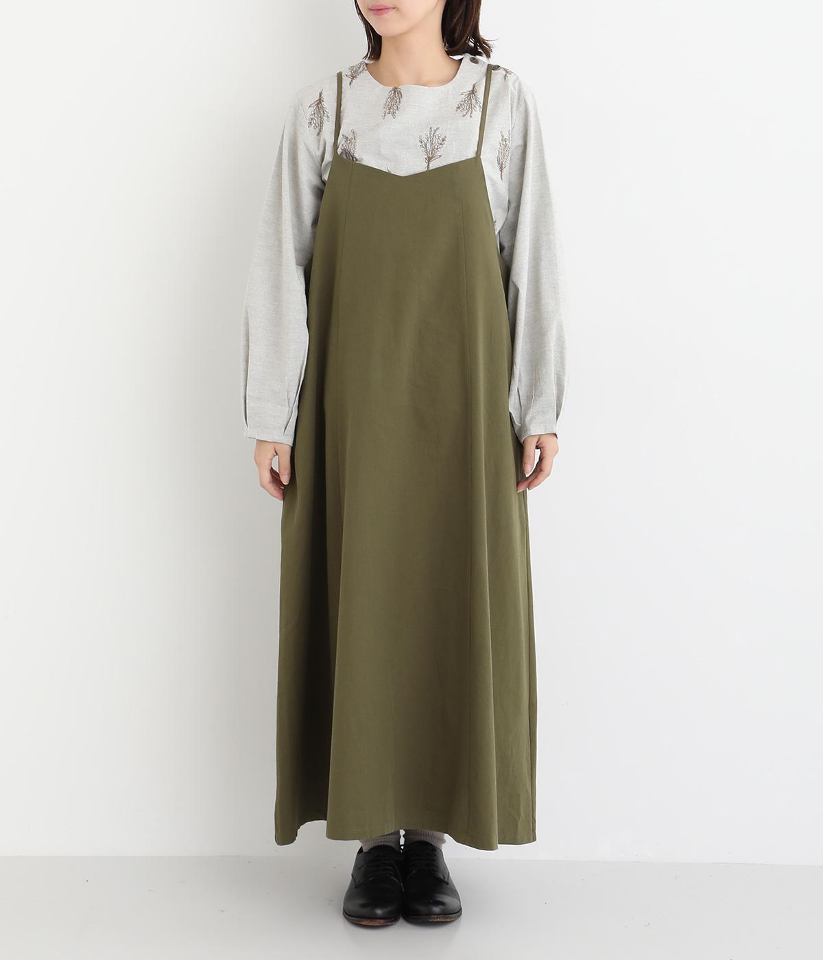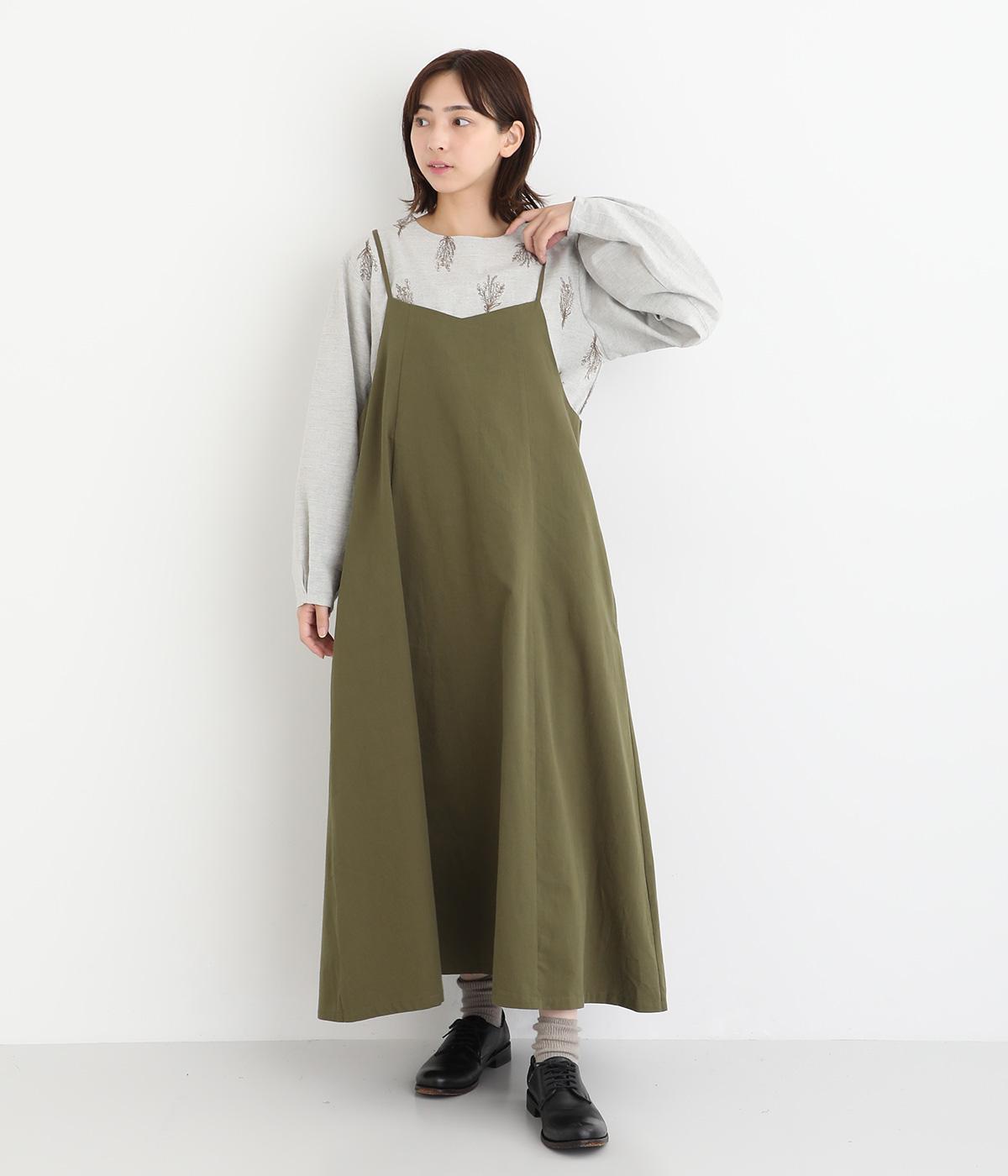 きれいなドレープを描きながら裾に向かって広がるフレアシルエットのキャミワンピース。体のラインを拾わず、バランスの良い着こなしを叶えてくれます。後ろのリボンで肩紐の長さを自在に調整可能。合わせるインナー次第で季節を問わずに着まわせます。