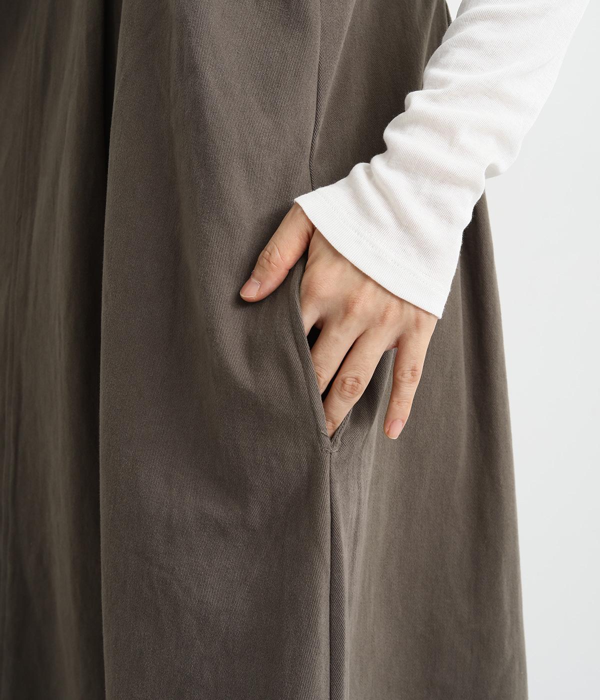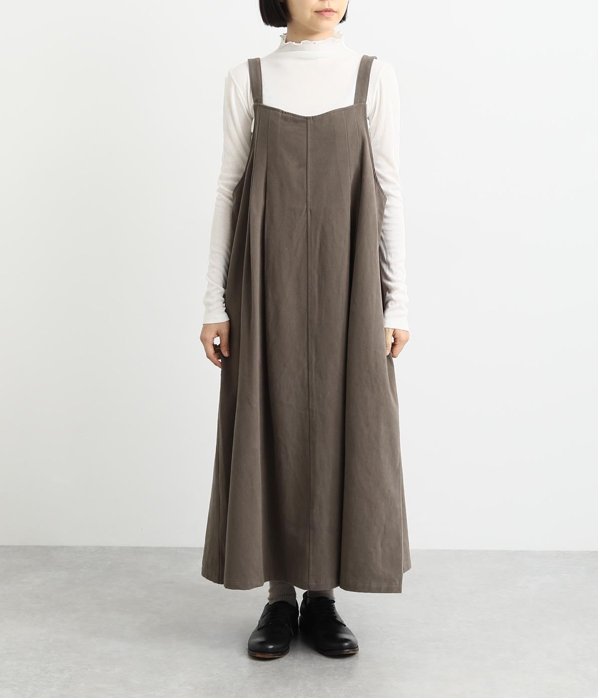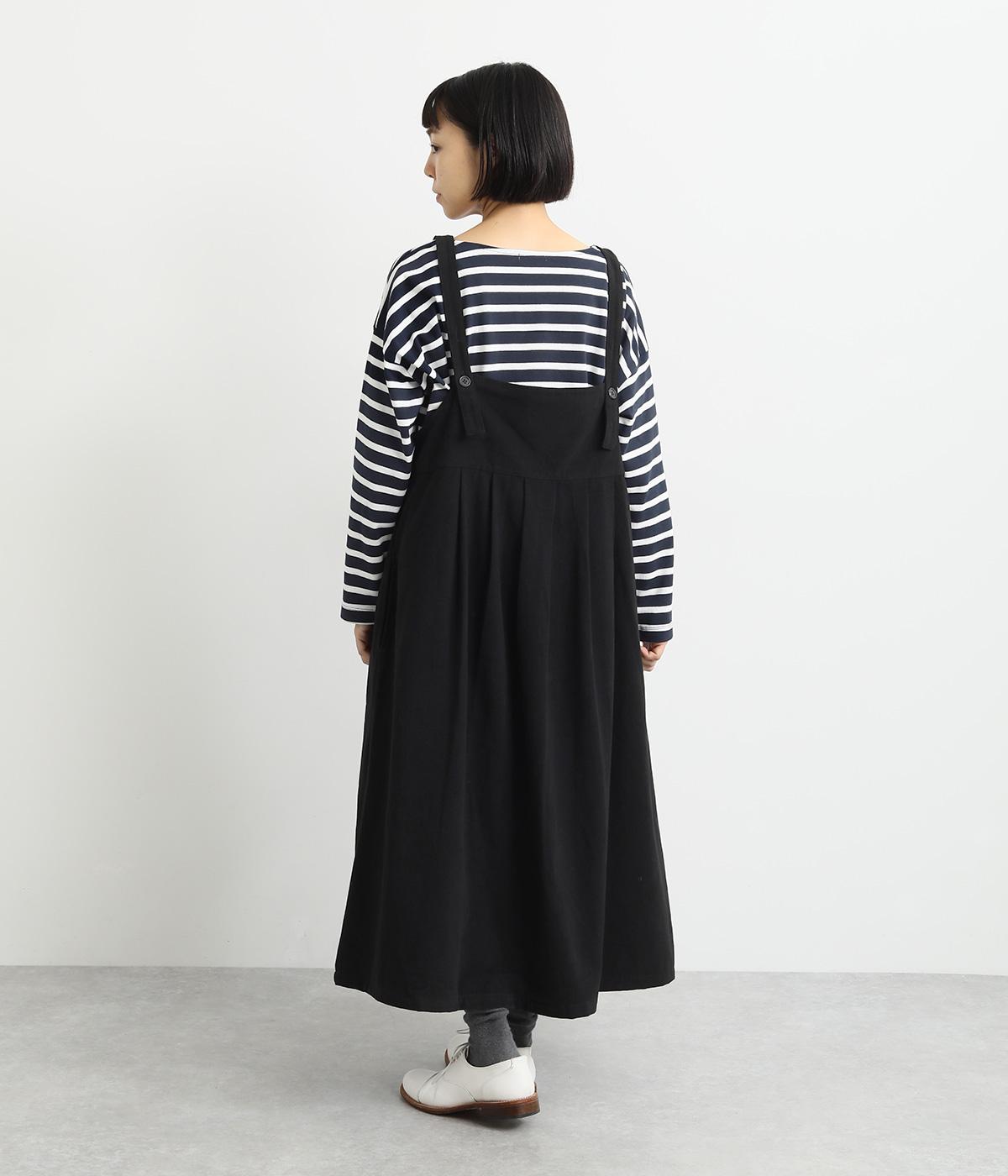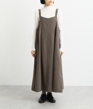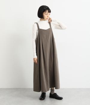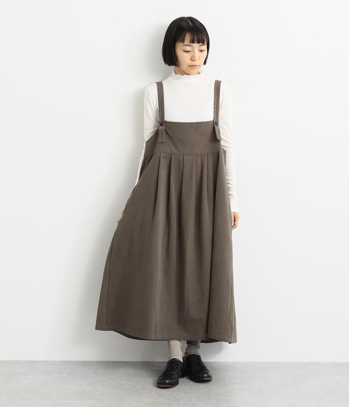 胸元からふわっと広がる面と、タックでストンと落ちる面の2way仕様。シルエットを変えて楽しめる一枚です。紐はボタンで調節可能です。カジュアルにもきれいめにも合わせやすく、ロングシーズン活躍します。