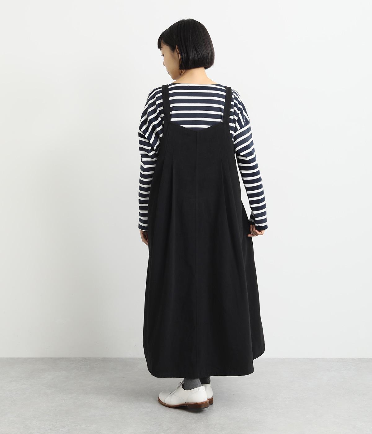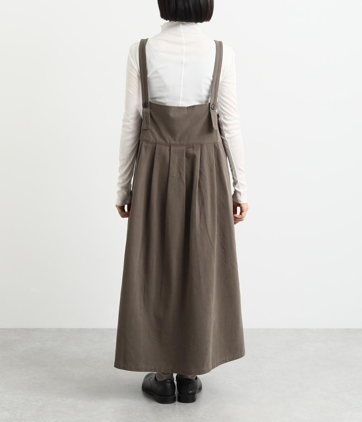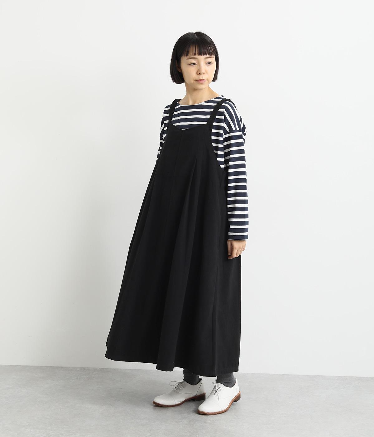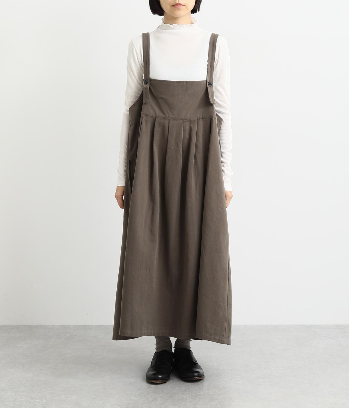 胸元からふわっと広がる面と、タックでストンと落ちる面の2way仕様。シルエットを変えて楽しめる一枚です。紐はボタンで調節可能です。カジュアルにもきれいめにも合わせやすく、ロングシーズン活躍します。