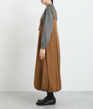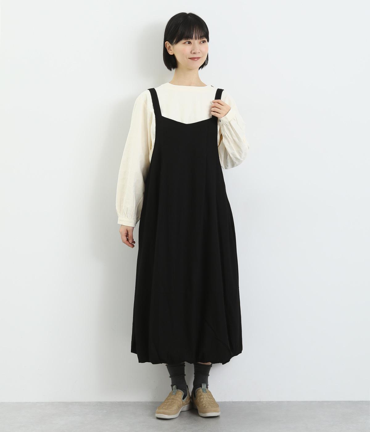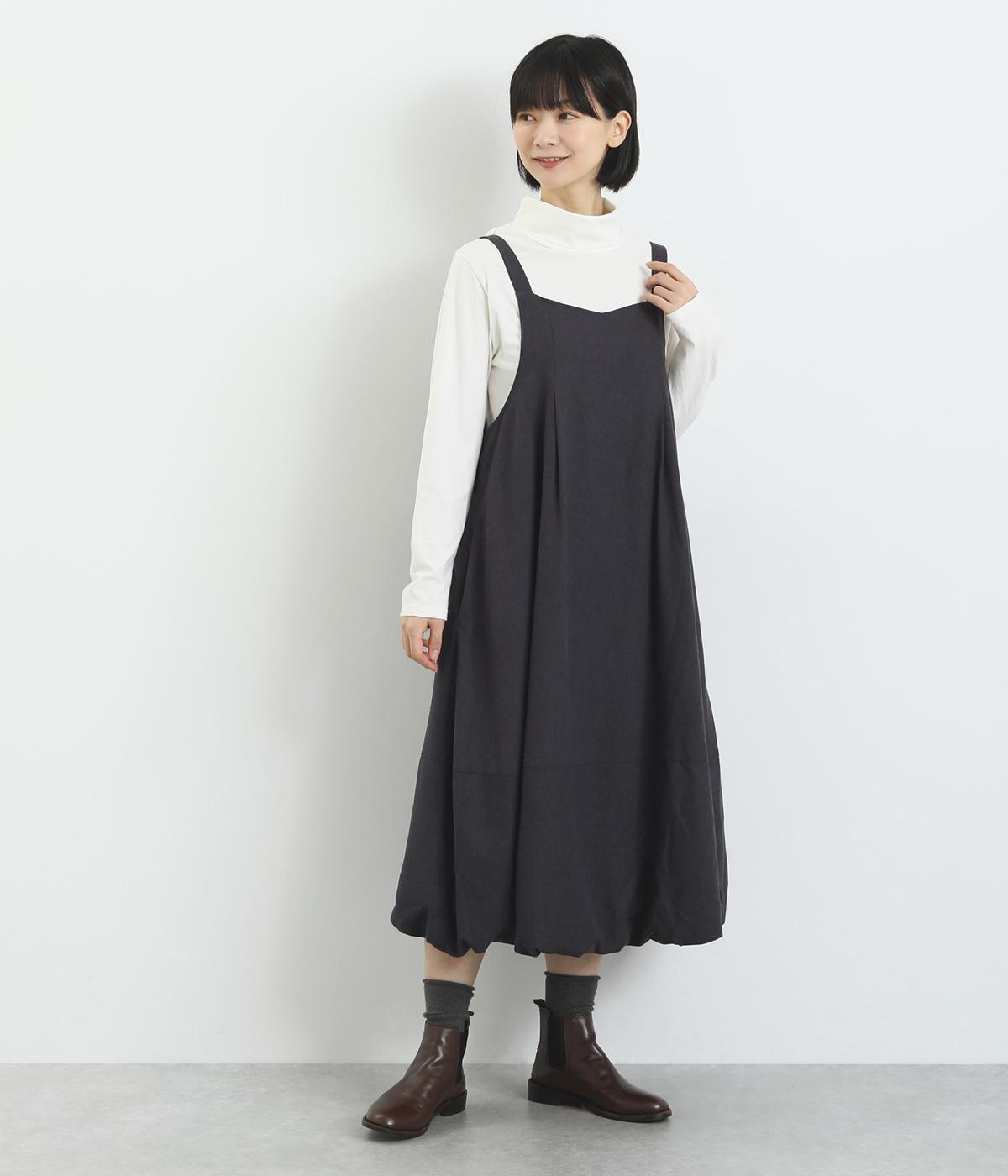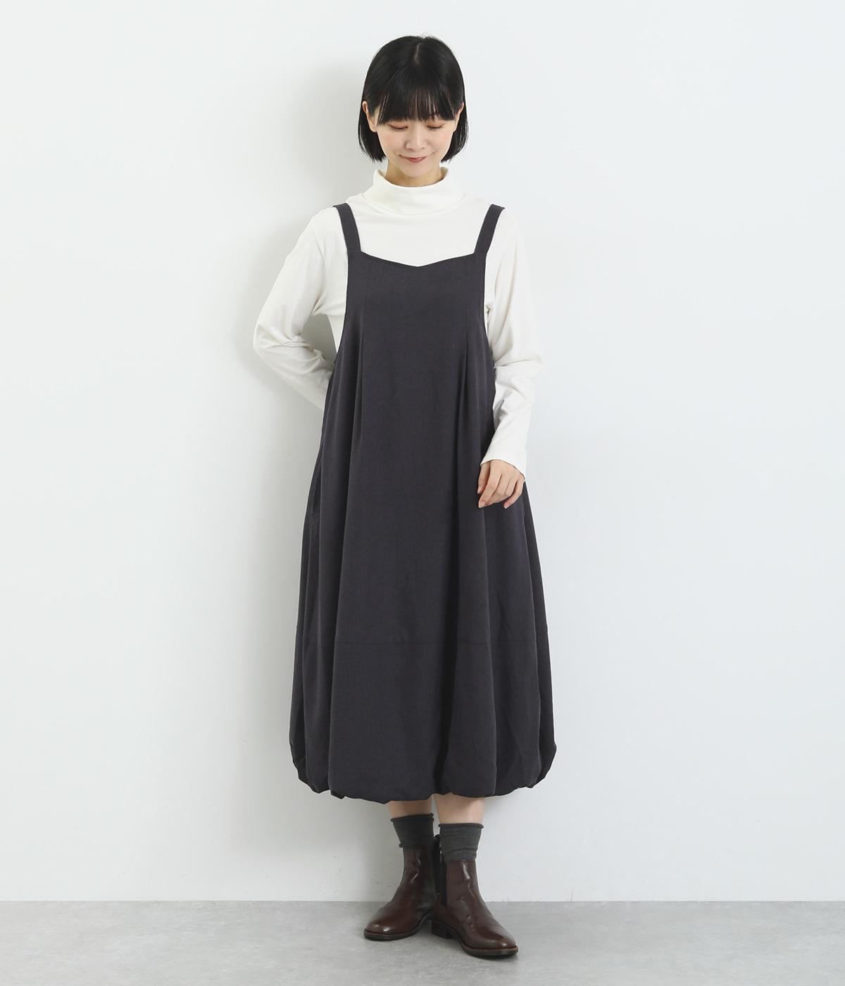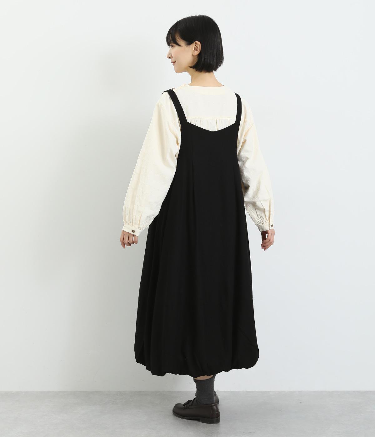 前後2wayで着用できる遊び心のあるジャンパースカートです。ふんわり広がる裾のボリュームがかわいらしく、一枚で存在感があります。肩のストラップで、長さの調節も可能。合わせるインナー次第でも、異なる表情が楽しめます。