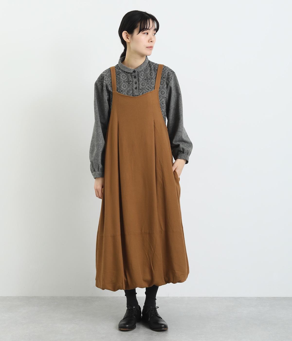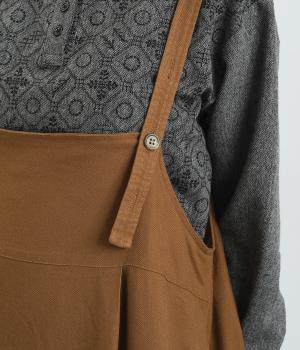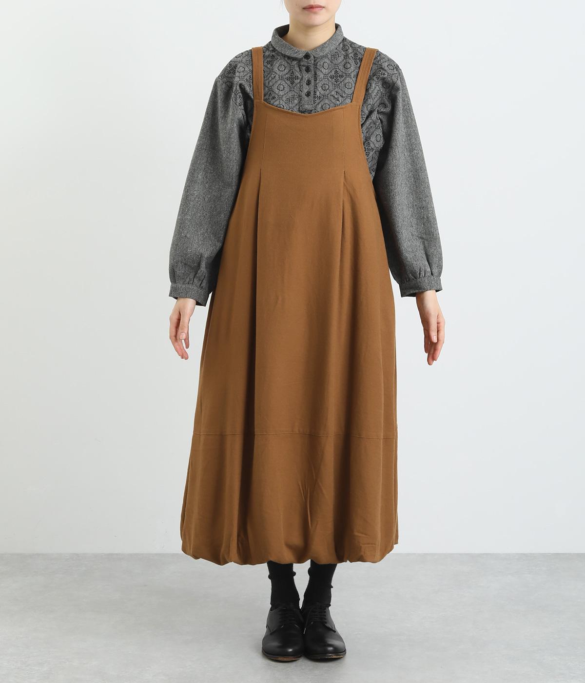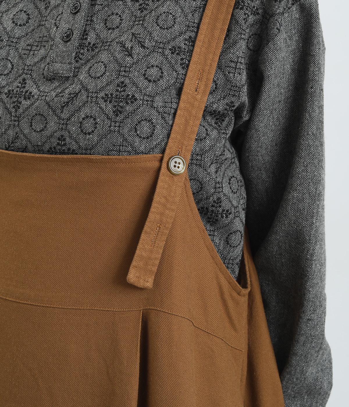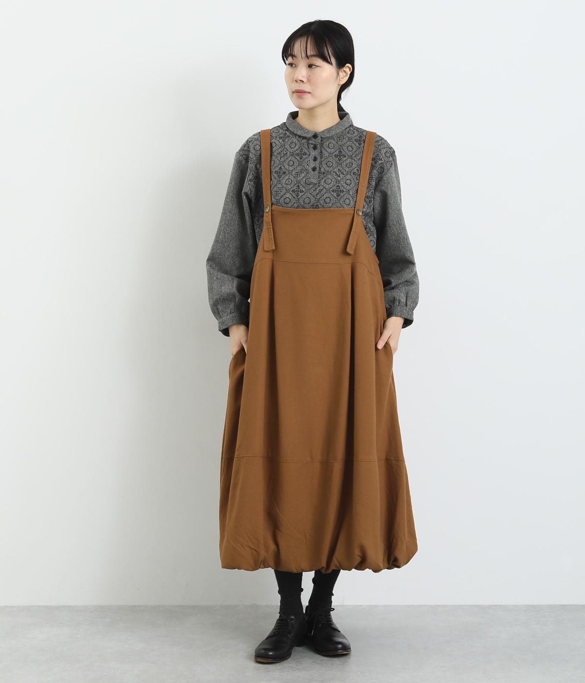 前後2wayで着用できる遊び心のあるジャンパースカートです。ふんわり広がる裾のボリュームがかわいらしく、一枚で存在感があります。肩のストラップで、長さの調節も可能。合わせるインナー次第でも、異なる表情が楽しめます。