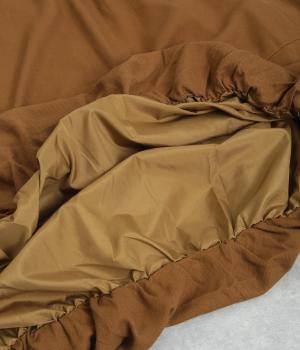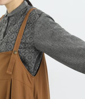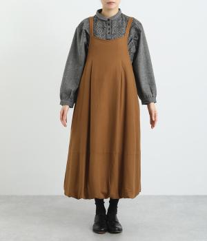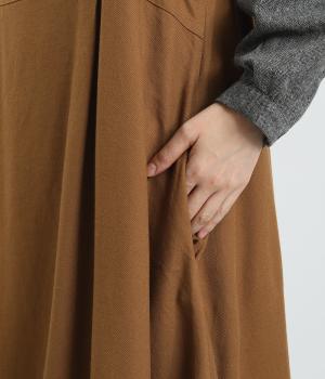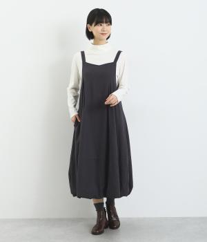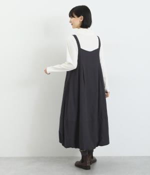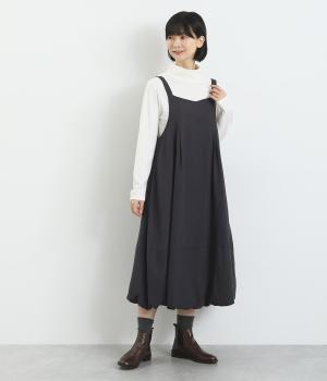 レーヨン、リネン、コットンを混紡した、やわらかな肌触りが魅力的。スカート部分には裏地つきで透け感も気にならず、タイツなどに合わせてもごわつきません。