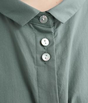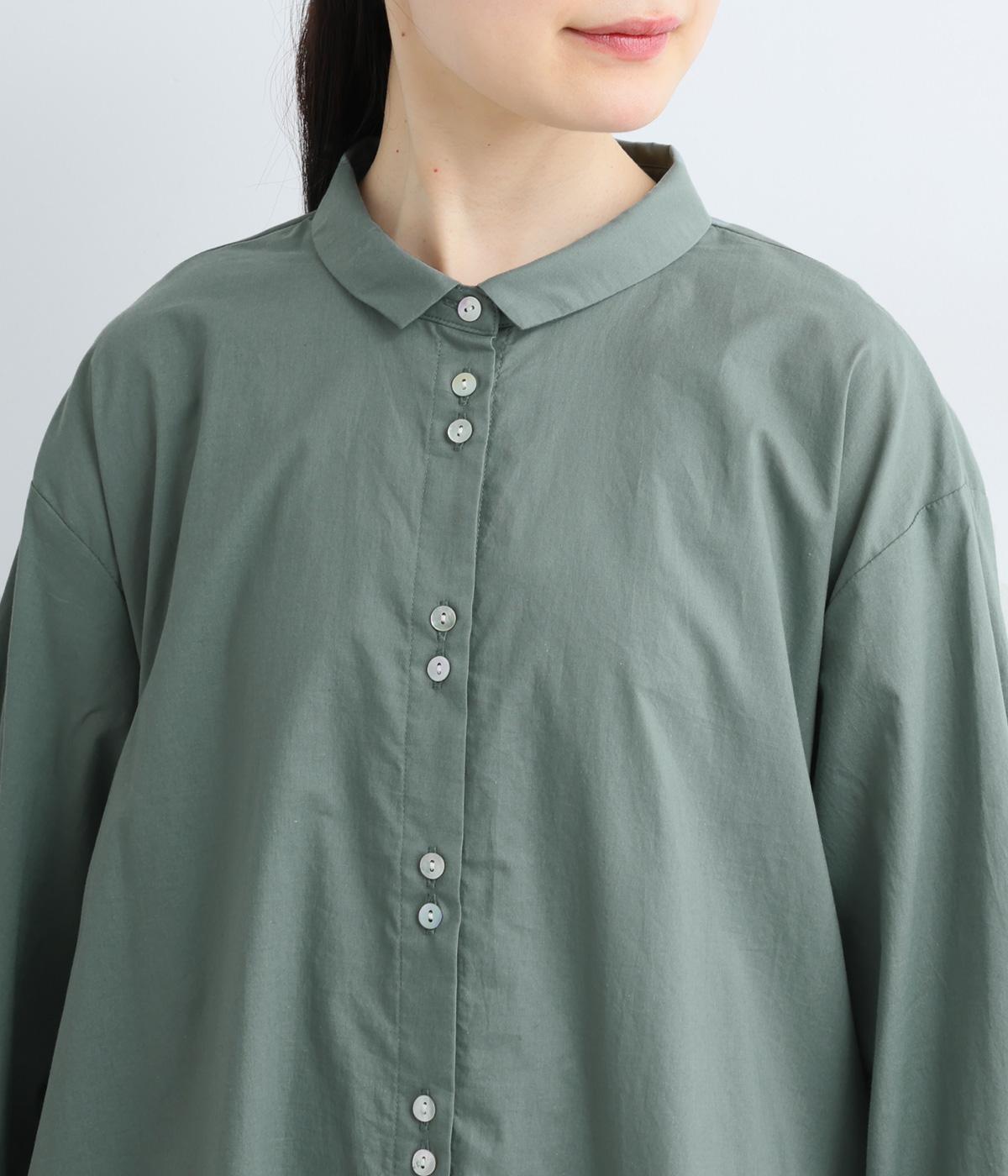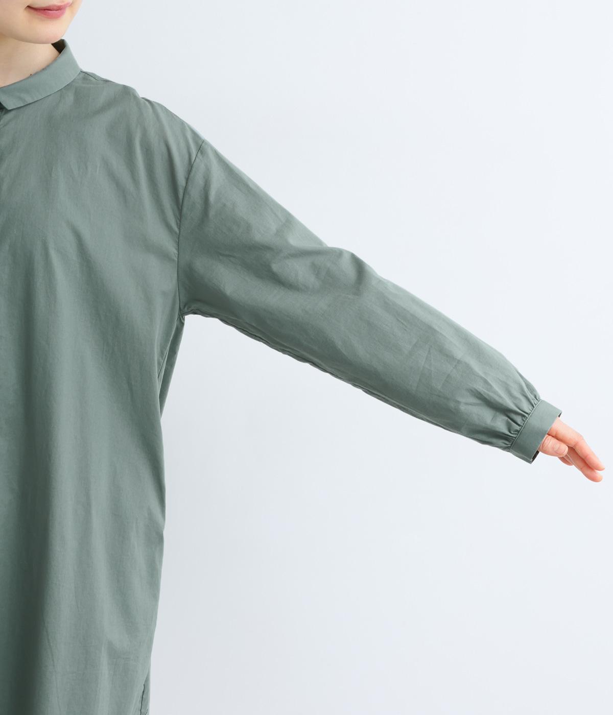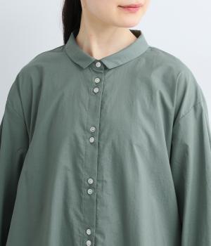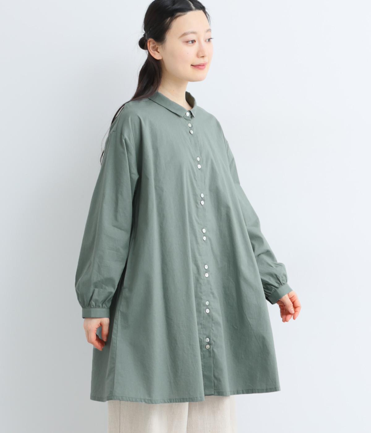 ゆったりとしたチュニック丈は、体のラインを拾いにくいのがうれしいポイント。フロントにはボタンを2つずつ並べ、さりげないリズム感をプラスしました。背面のギャザーが立体感を生み、小さめの襟が顔まわりをすっきり見せてくれます。ロングスカートやワイドパンツとのレイヤードスタイルもおすすめです。