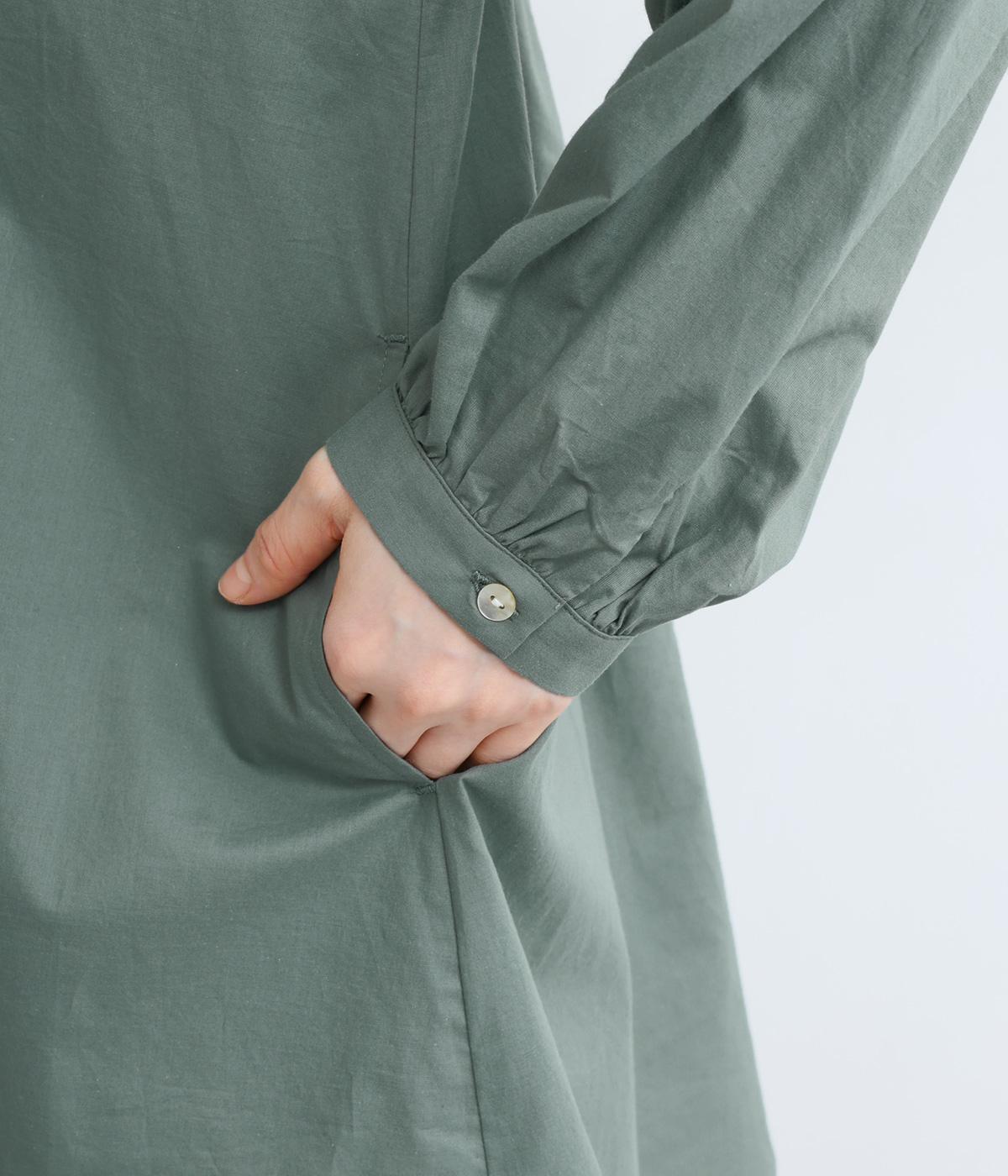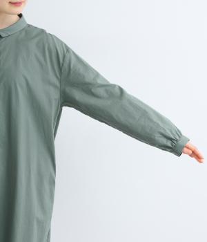 薄手で軽やかなコットンローンを使用しました。空気を含むようなしなやかさがあり、やさしい肌ざわりが魅力です。ほどよいハリ感とほんのりとした光沢があるので、ナチュラルさのなかに上品な印象を添えます。