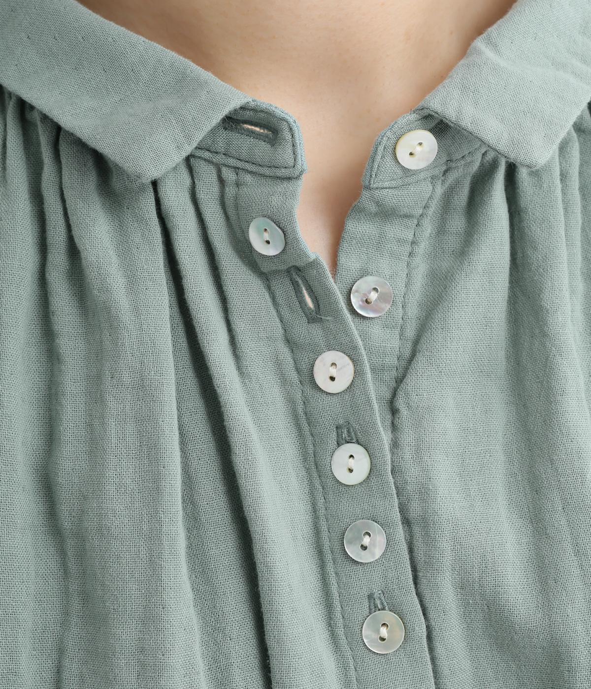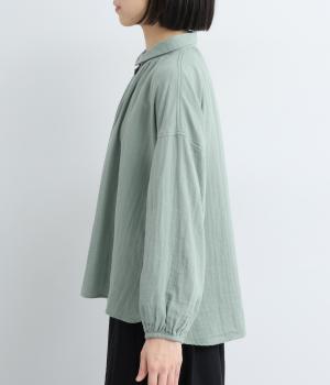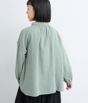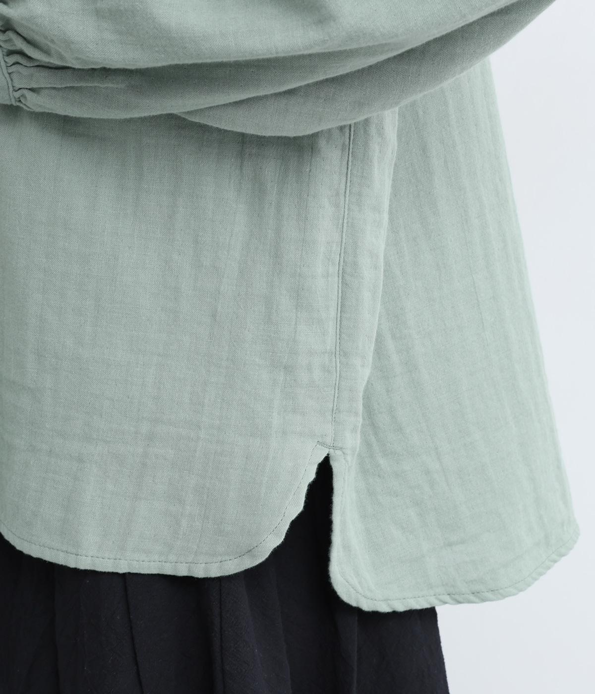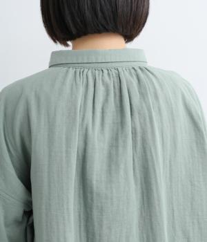 空気を含むような軽さと、やさしい肌ざわりが特徴のコットンガーゼを使用しました。ふんわりとした質感が心地よく、シルエットに自然な落ち感を演出します。毎日でも袖を通したくなる、リラックス感のある素材です。