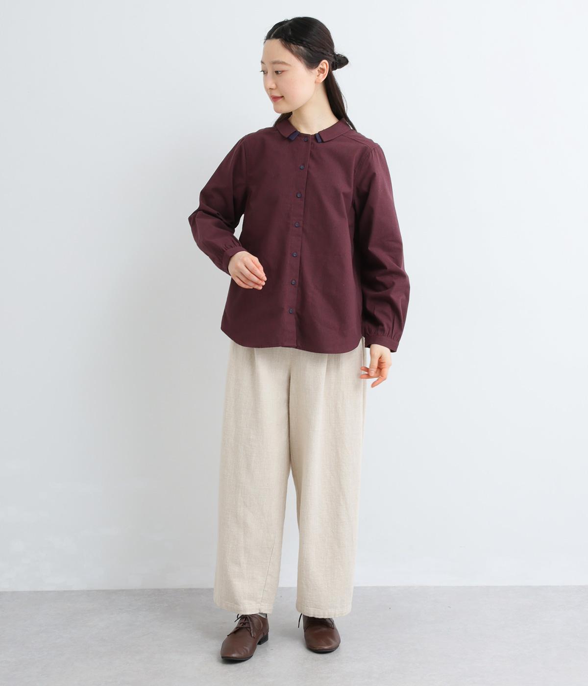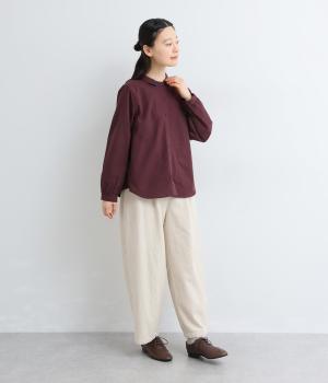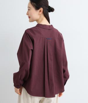 さらりとした肌ざわりのコットン混生地を使用しました。ほどよいハリ感があるのでシルエットをきれいに保ち、着心地も軽やか。高密度の平織りならではの丈夫さで、デイリー使いしやすいのも◎。季節を通して快適に着られる素材感です。