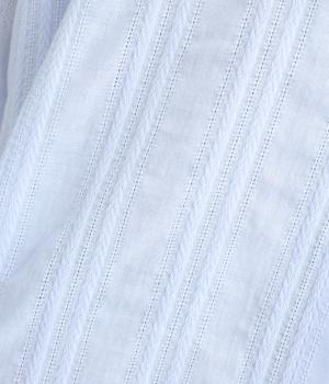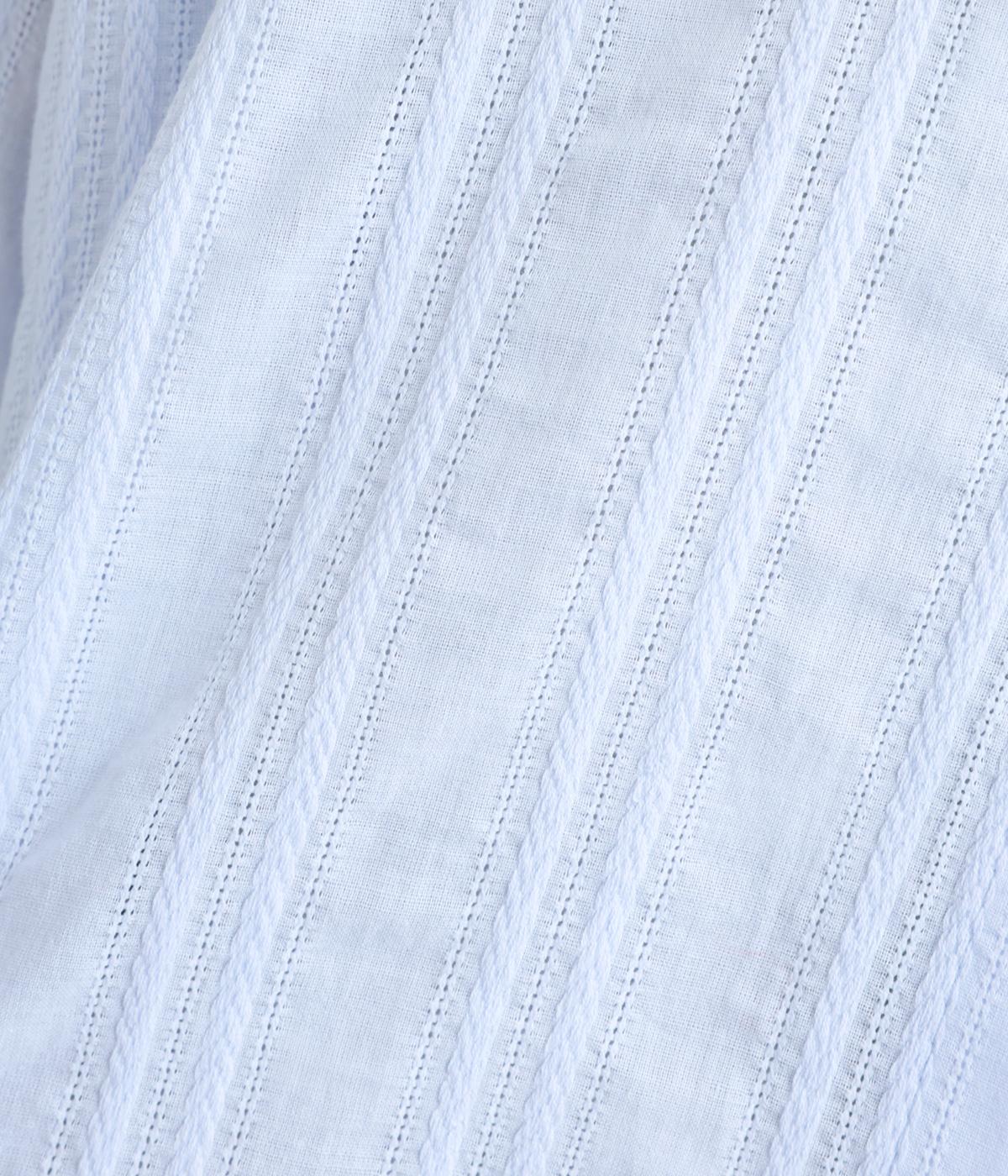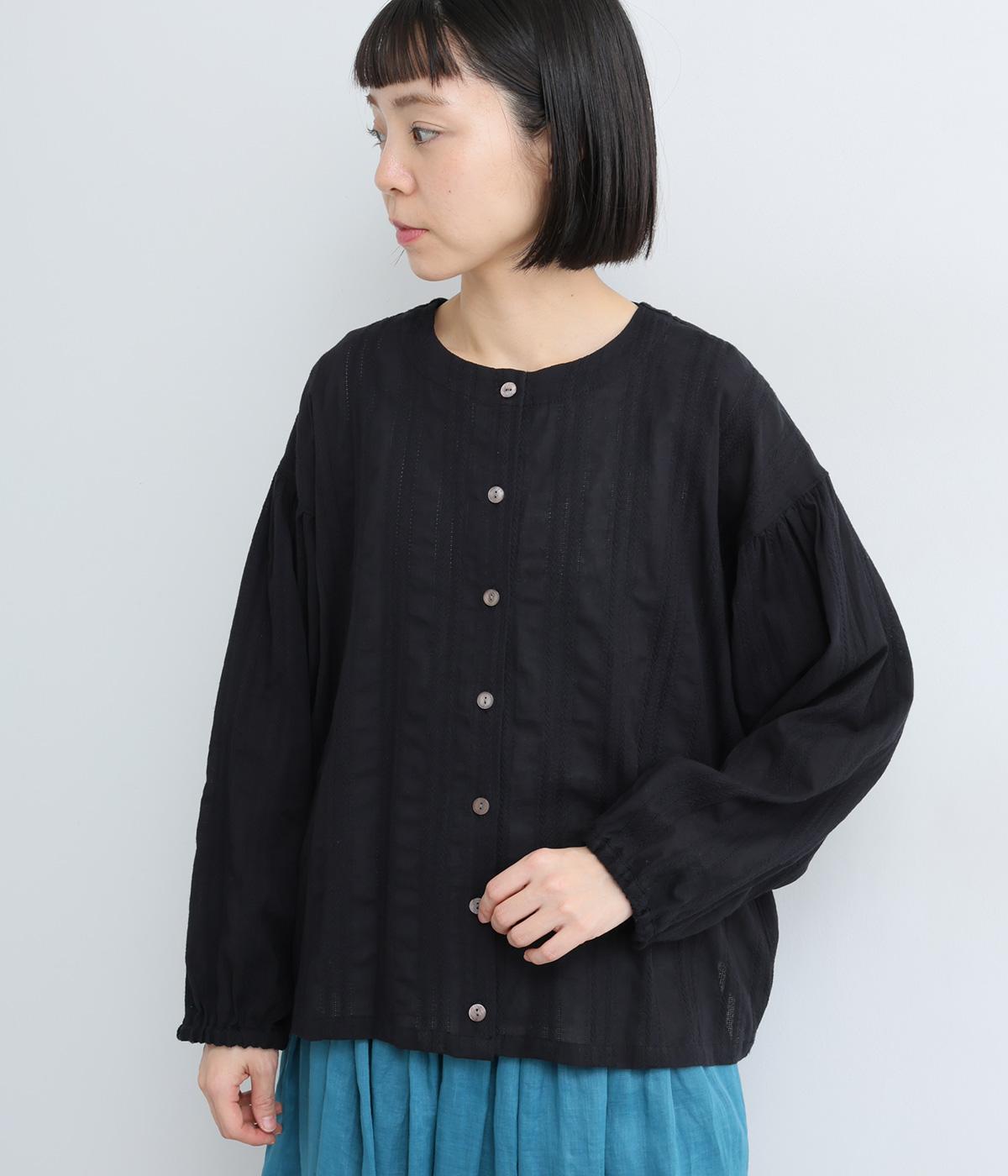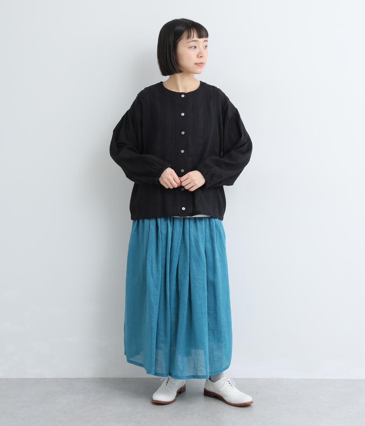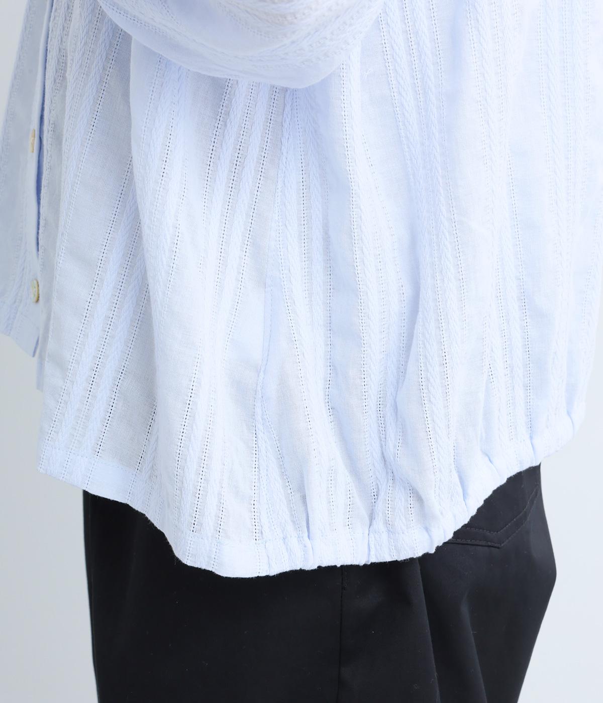 立体感のあるドビーストライプが、奥行きのある印象を演出。ナチュラルな雰囲気のなかに、主張しすぎない縦のラインがほどよいアクセントを加えています。袖の切り替えにはギャザーを寄せ、ふんわりと丸みのあるシルエットに。袖口はゴム仕様なので、たくしあげれば抜け感のある着こなしがたのしめます。