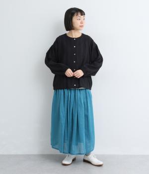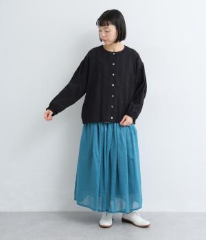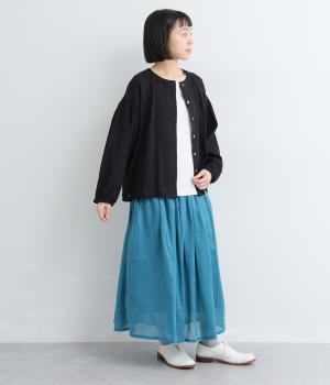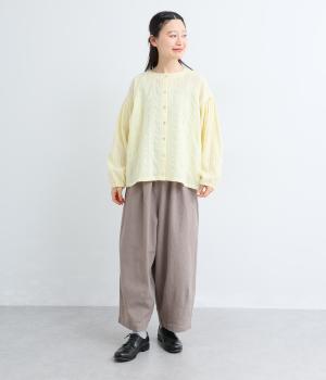 さらりとしたタッチが魅力のコットン混素材を使用。軽やかな着心地で、やわらかく肌になじみます。通気性にもすぐれ、汗ばむ季節も快適です。素材のナチュラルな表情が、装いにやさしい雰囲気を添えてくれます。