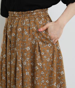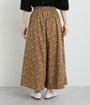 繊細なフラワープリントがコーディネートに可憐な印象を与えるワイドパンツ。フロントの腰から広がるタックが、きれいなフレアシルエットを生み出しています。総ゴム仕様のウエストは内紐つき。両サイドには便利なポケットを配しています。