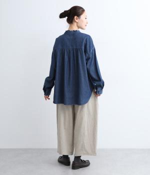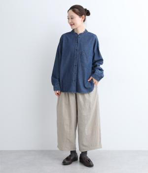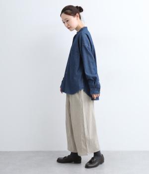 表面感のあるコットンシャンブレーが、シンプルなパンツに味わいを添えてくれます。見た目も着心地も軽やかで、ストレスフリーで穿けるのも嬉しいポイントです。