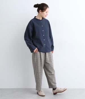 ハリのある軽やかな生地感を活かしたチェック柄パンツです。チェック柄のインパクトを際立たせるため、他は全てシンプルに削ぎ落としました。ゆとりのあるシルエットながら、正統派な柄のおかげでどこかきちんとした印象に。ウエストはゴム仕様で、内側に通した紐を絞ってフィット感を調整できます。