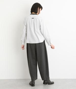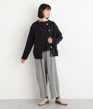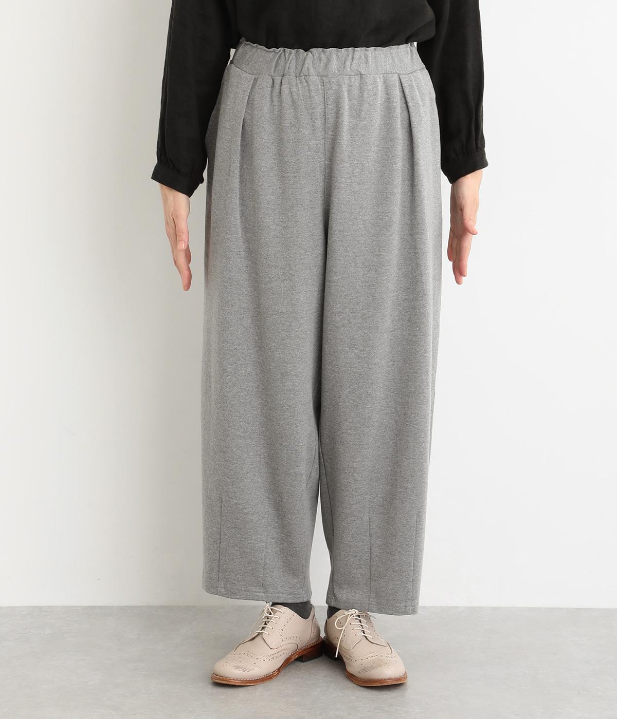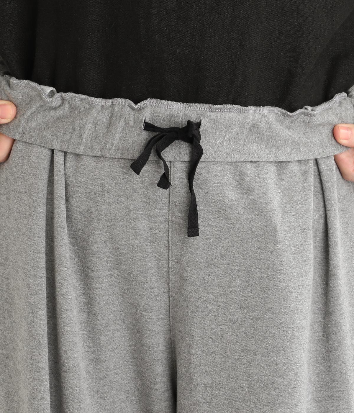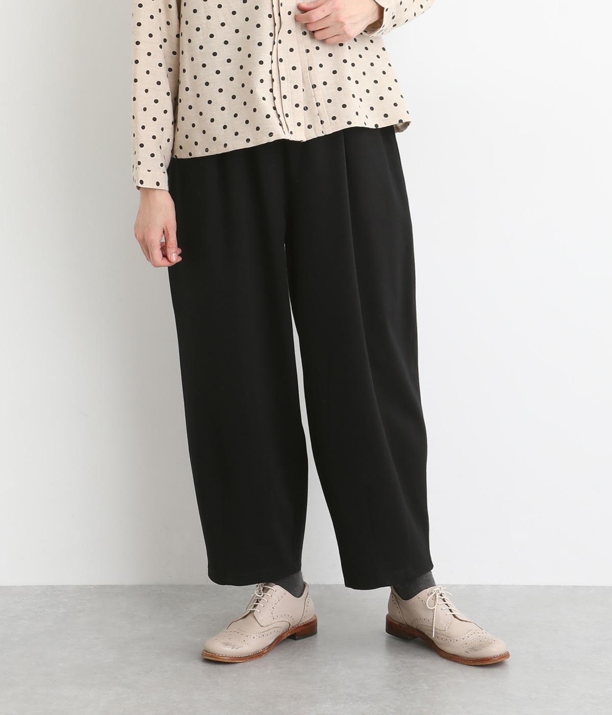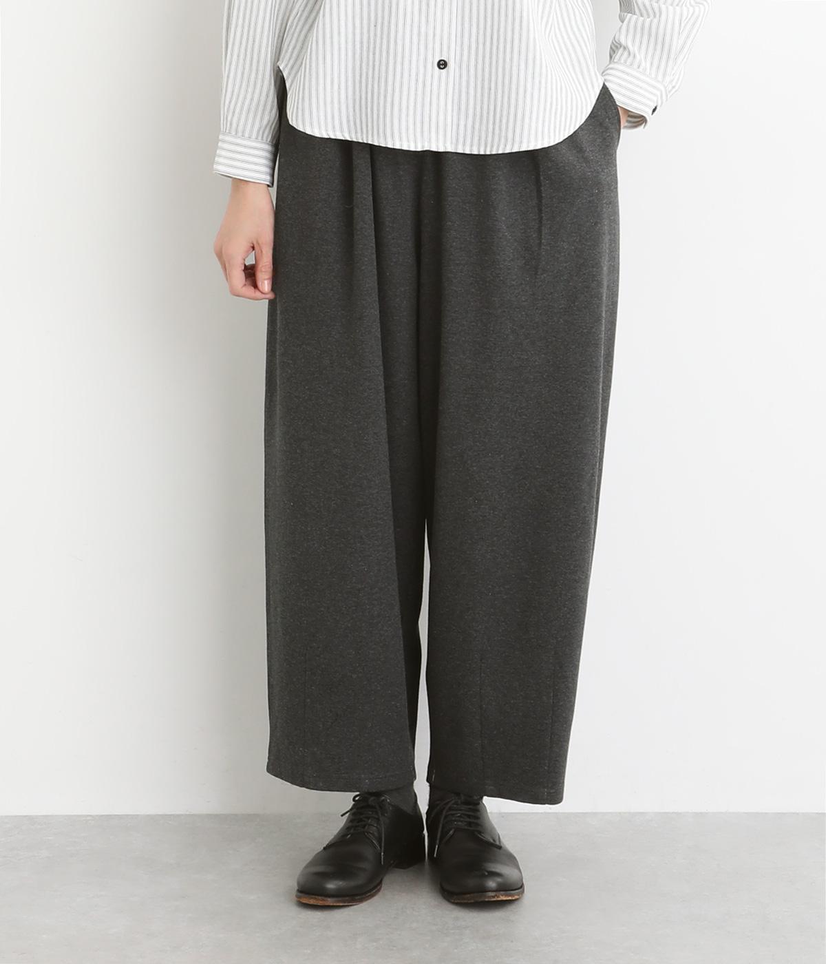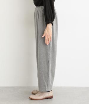 楽な穿き心地が魅力のジャージーパンツ。裾にダーツを入れた立体感のあるテーパードラインがカジュアルさ軽減してくれます。ウエストはお腹まわりにやさしくフィットする総ゴム仕様。内側には紐を通しました。