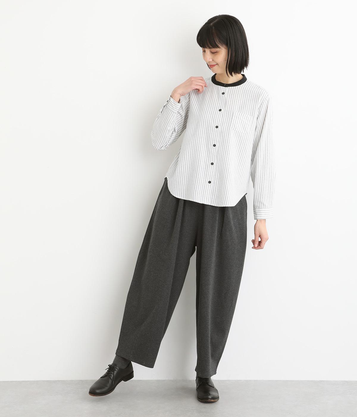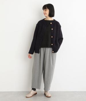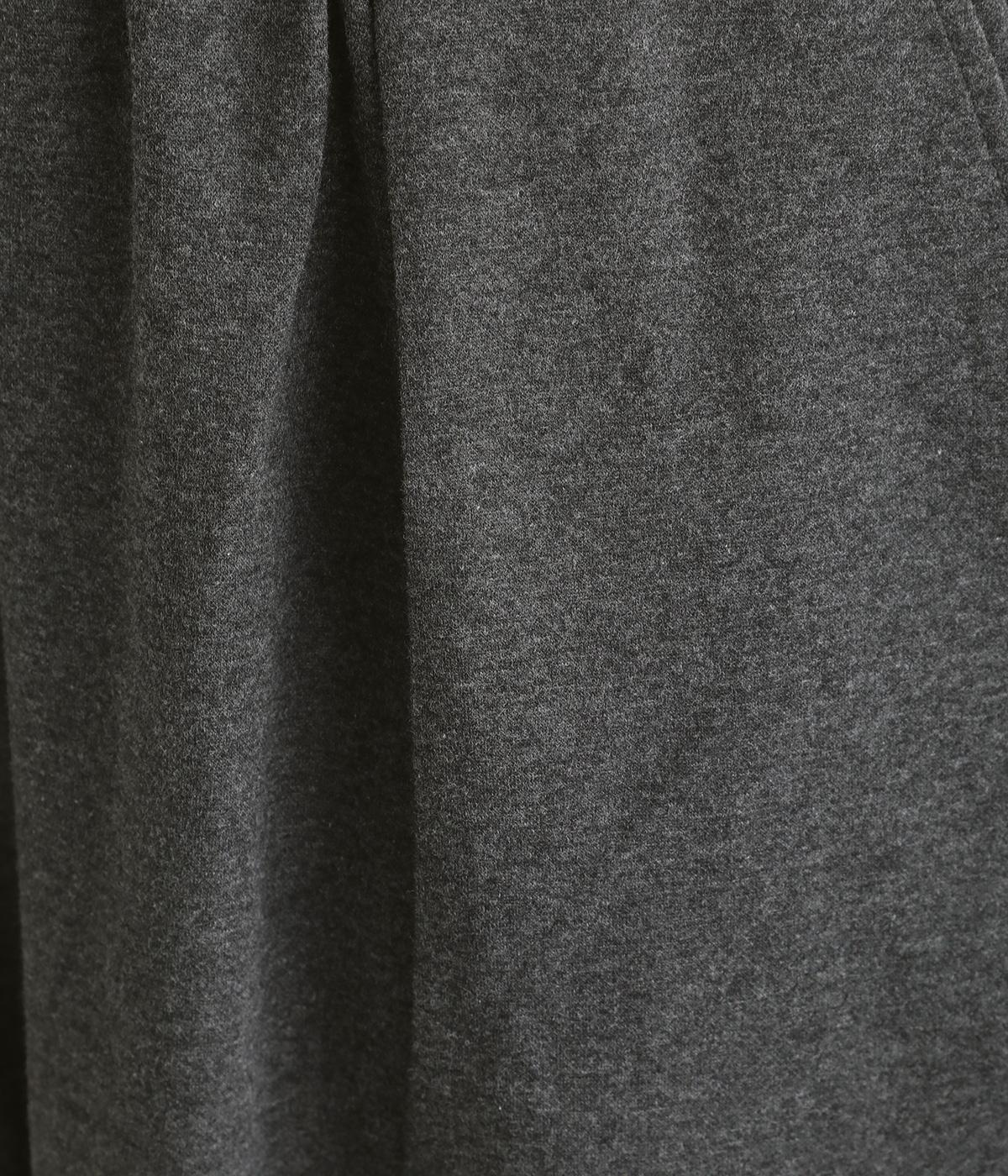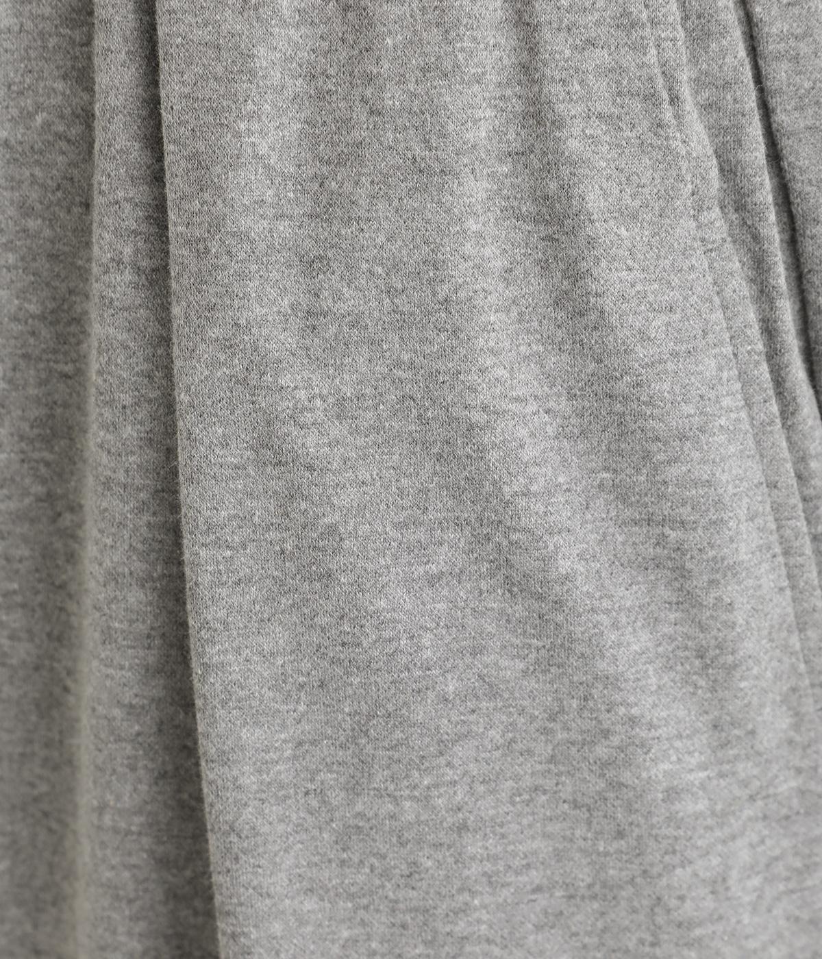 ほんのりと起毛がかった表面があたたかな着用感と上品見えを叶えるコットン混カットソー生地。ハリの少ないやわらかな風合いがきれいなドレープを表現してくれます。