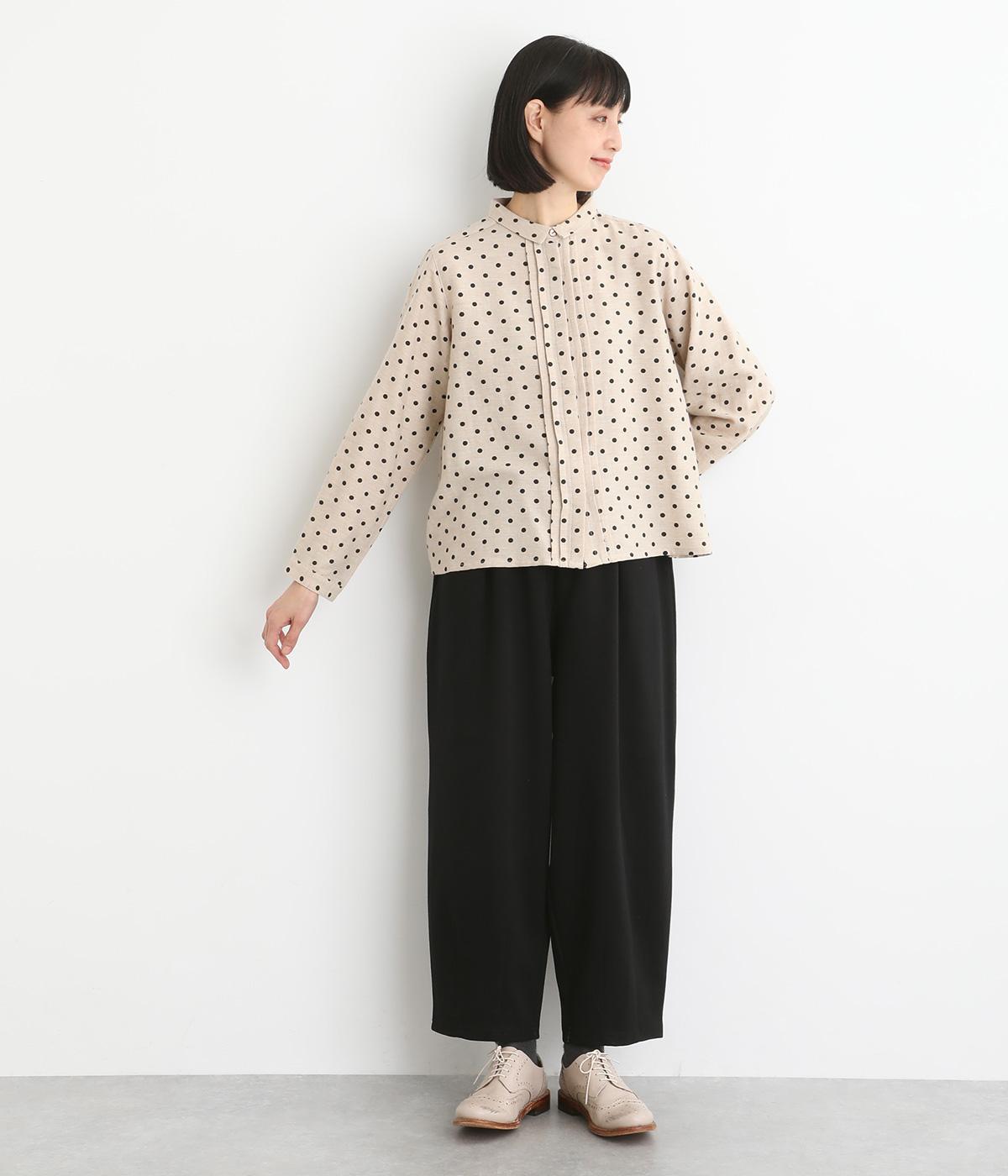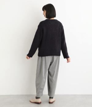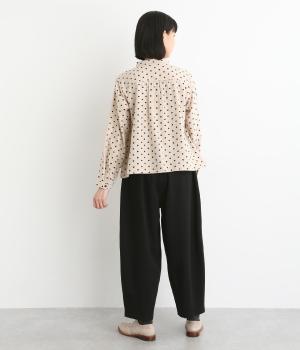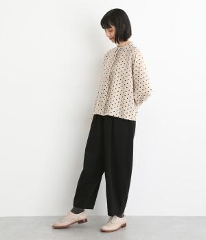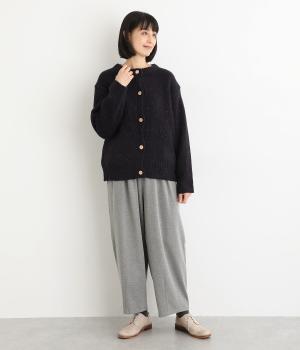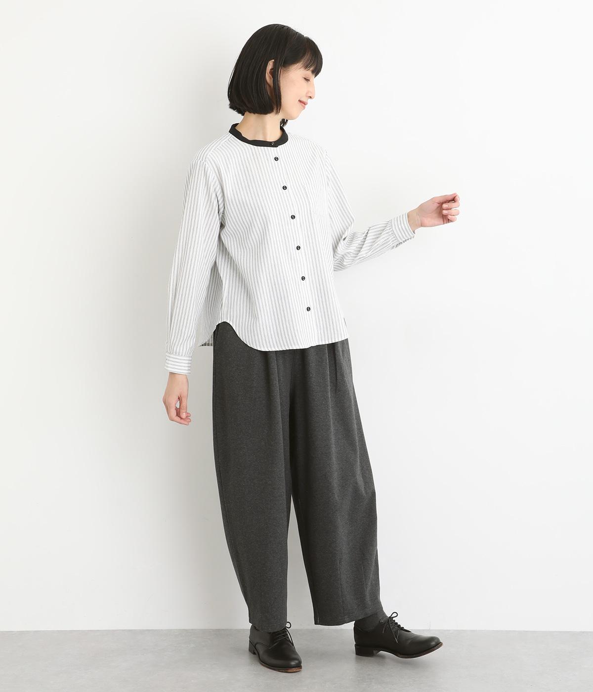 ほんのりと起毛がかった表面があたたかな着用感と上品見えを叶えるコットン混カットソー生地。ハリの少ないやわらかな風合いがきれいなドレープを表現してくれます。