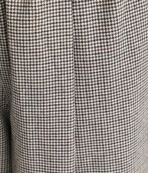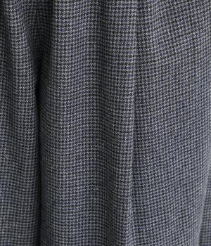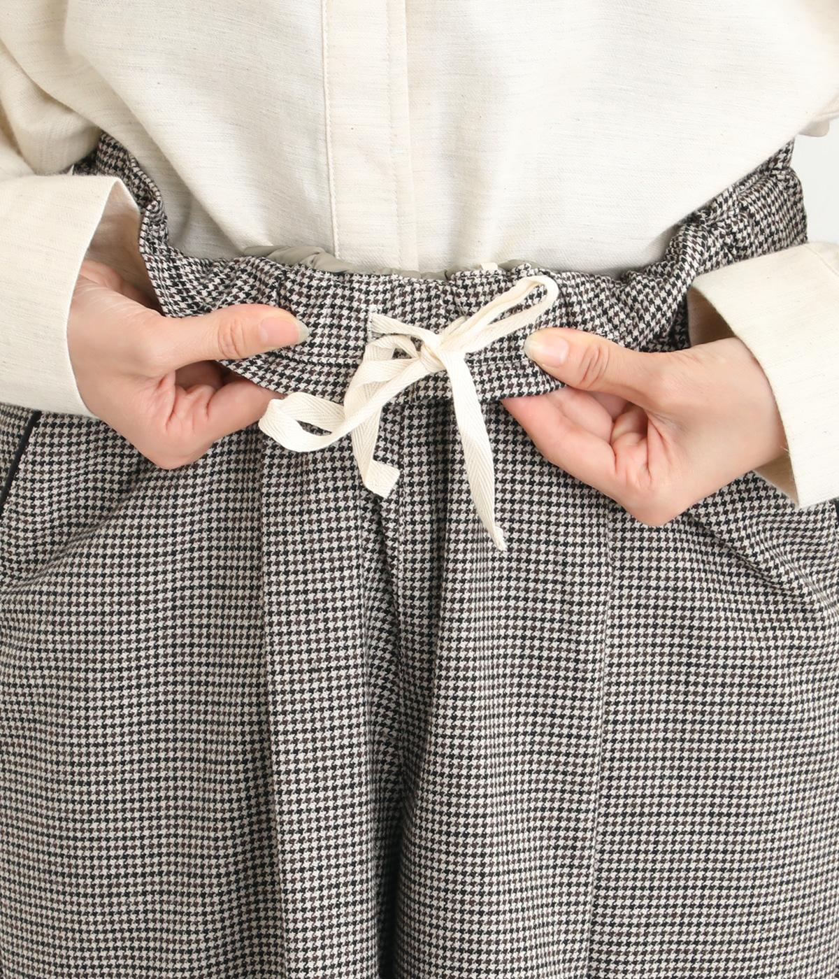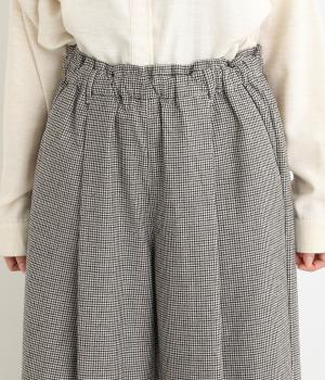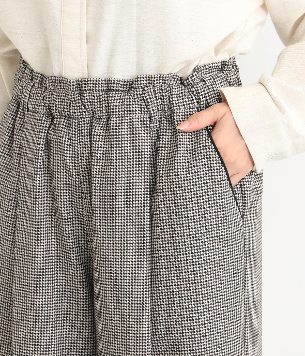 あたたかみのある起毛感と細かな千鳥格子柄がポイントのウール混生地。やわらかな風合いも魅力で、はき心地のよさと上品見えを叶えてくれます。脚にまとわりつかないさらりとした裏地つきです。