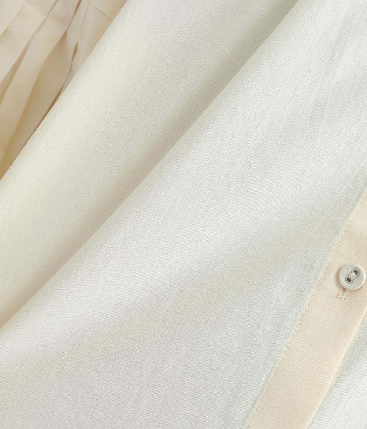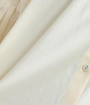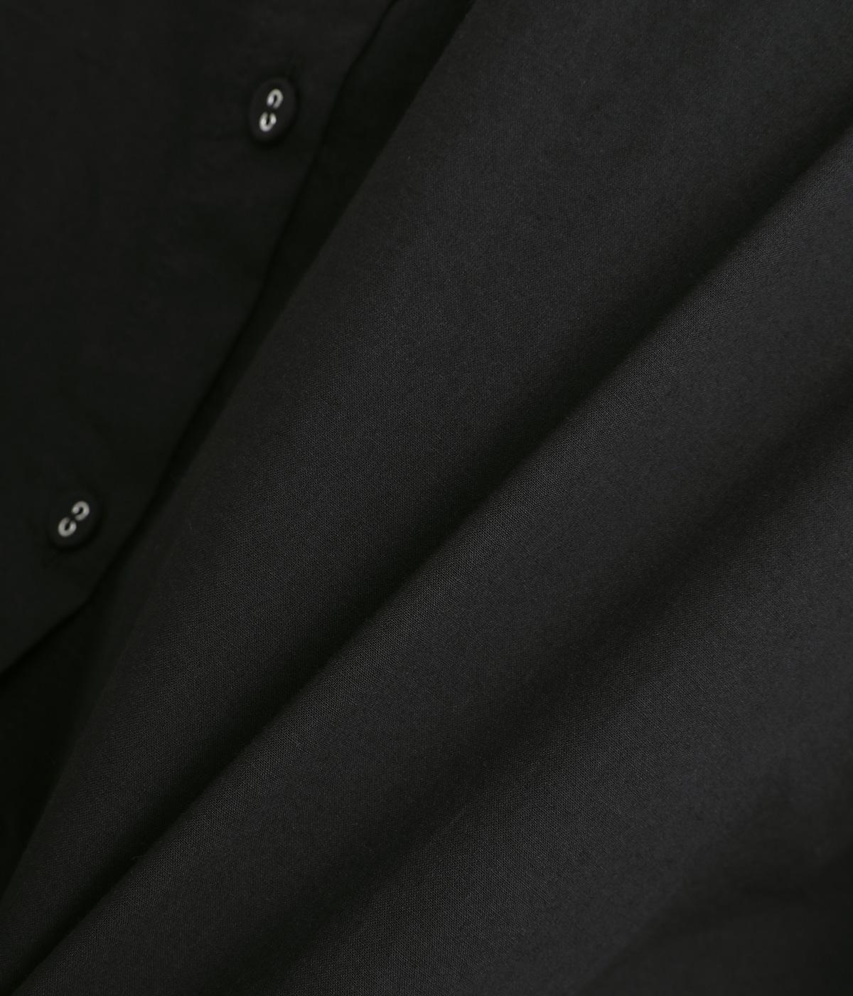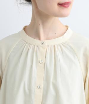 ハリのある質感が、シルエットを美しく立体的に見せてくれるドライタッチのコットン地。さらりとしたやわらかな風合い、肌触りも◎。ややツヤっとした表面が、上質な印象をアピールしてくれます。