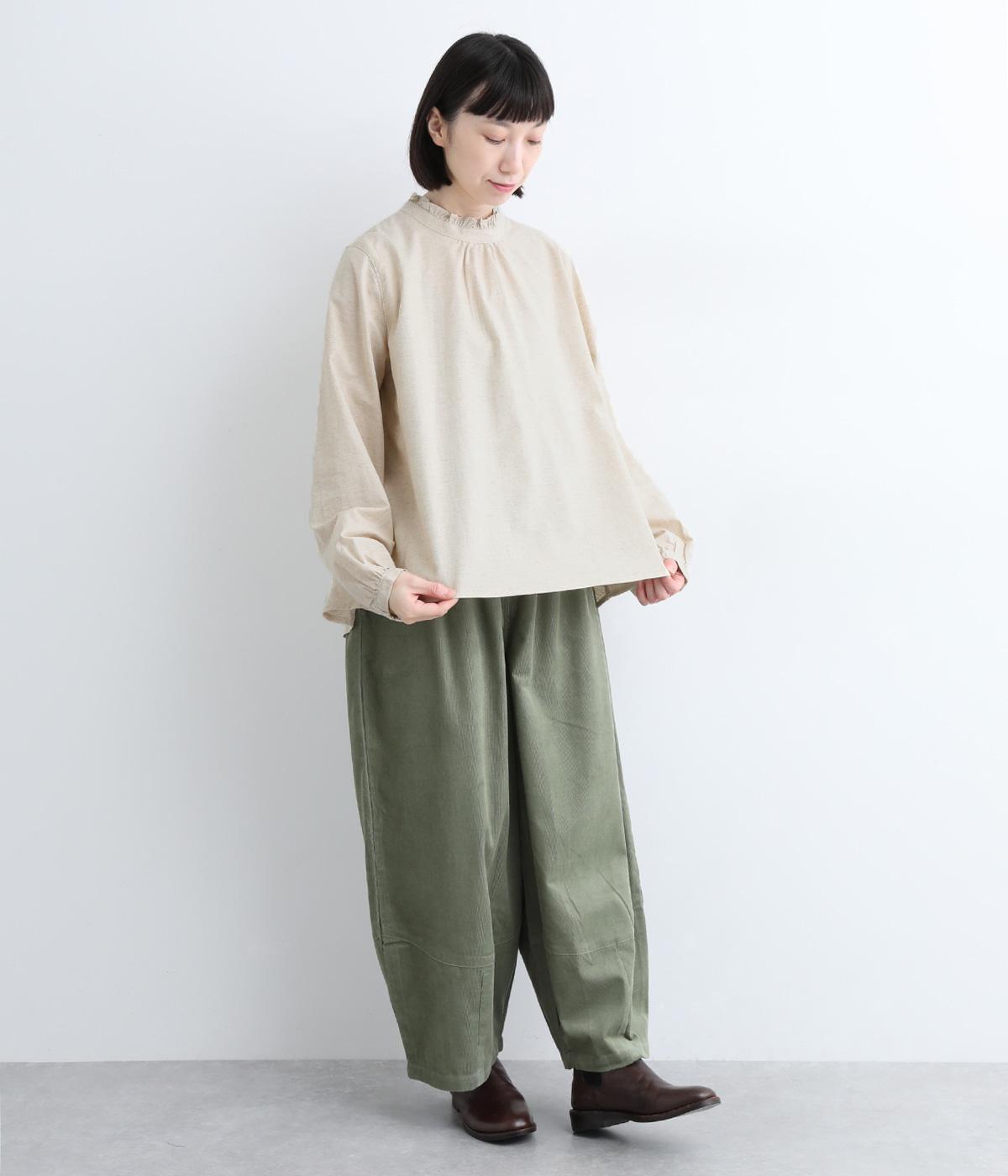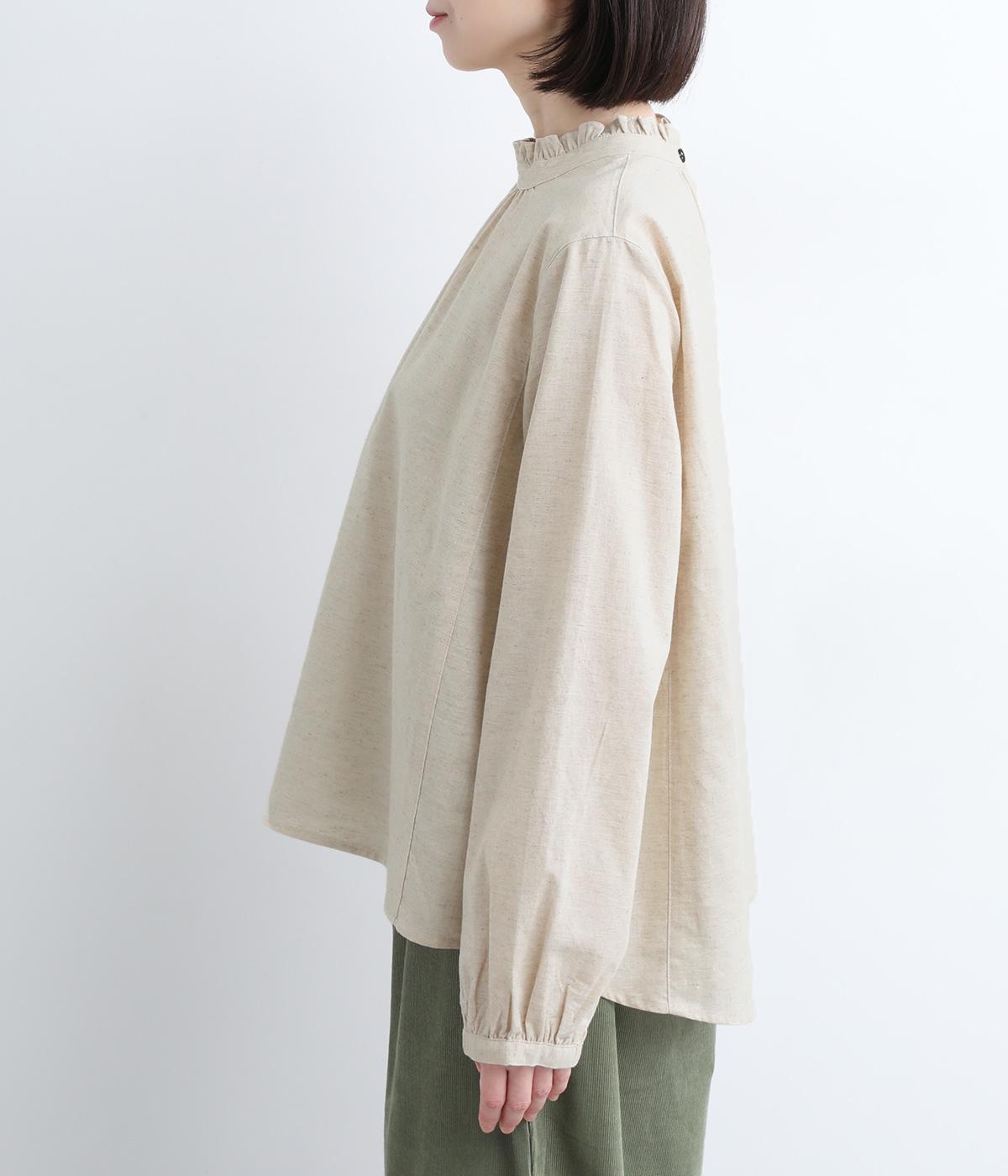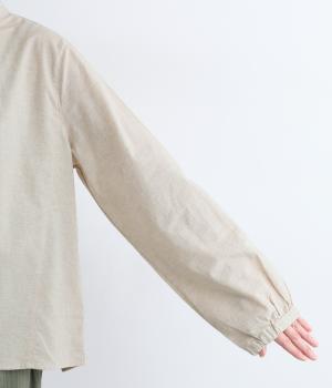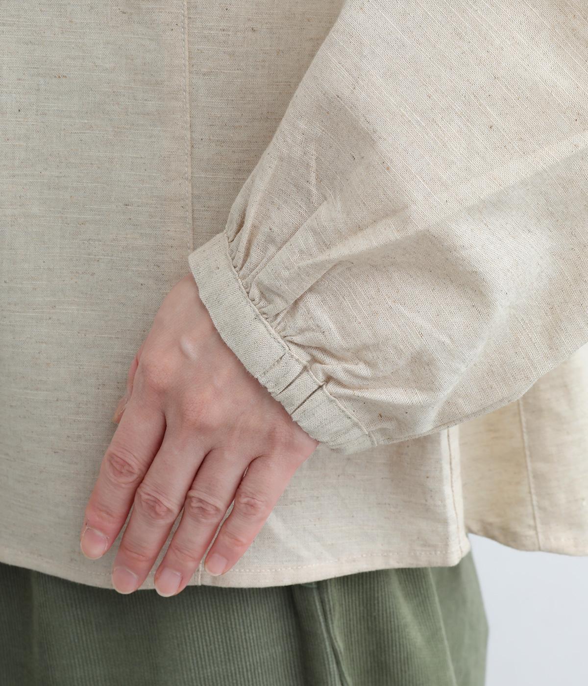 コットンとリネンを混ぜ合わせたナチュラルな風合いが魅力。さらっとしていて肌触りが良く、ロングシーズン着用可能。ハリがあるので、シルエットも美しく見せてくれます。