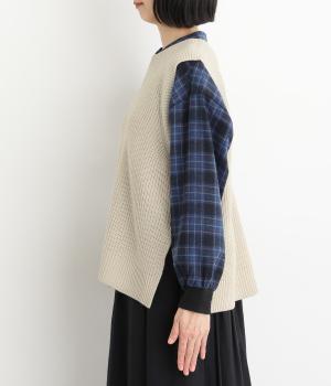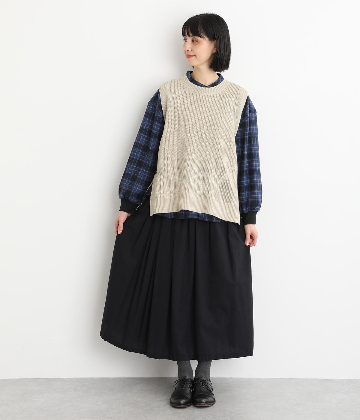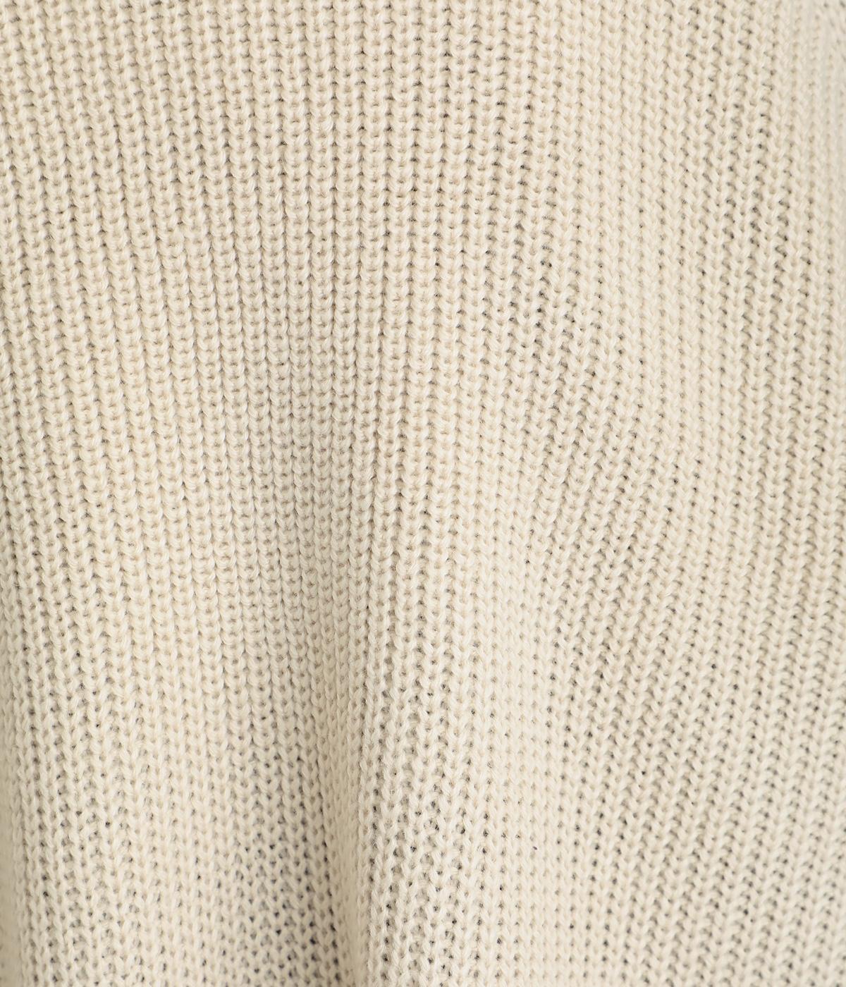 チクチク感の少ないふっくらとしたやわらかな風合いのコットン混ニット生地です。ほどよい肉感でボリュームが出すぎず、真冬はアウターの中にも着込みやすいのが◎です。