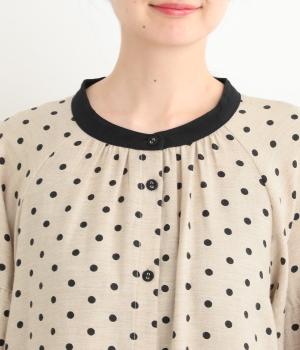 ナチュラルでやさしい色合いが魅力のシャンブレー生地に、ドット柄をあしらいました。肌に直接触れても心地よいソフトで軽やかなコットン素材で、ロングシーズン快適に着ていただけます。