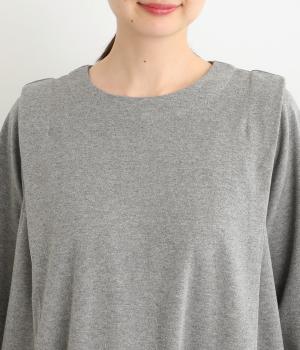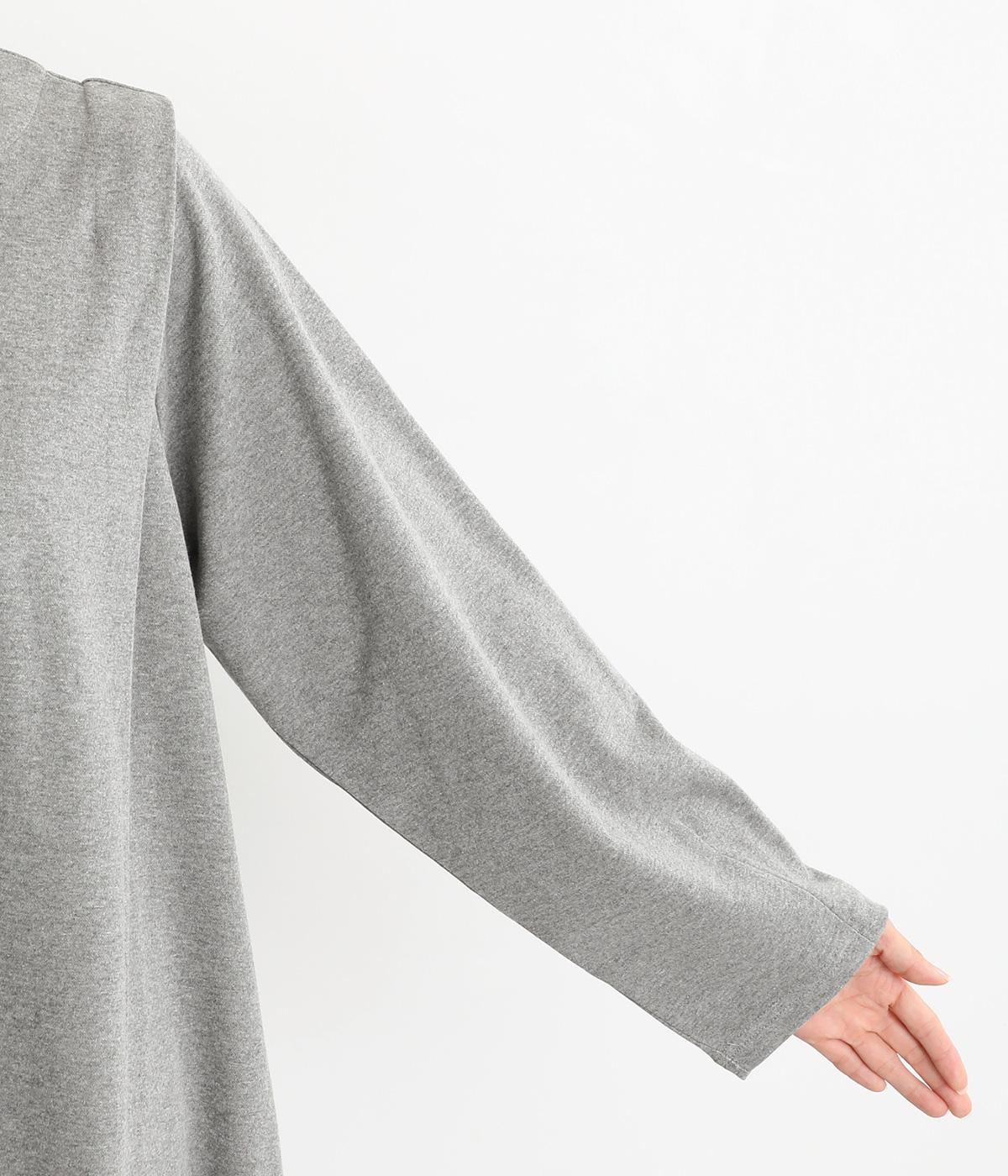 ほんのりと起毛がかった表面があたたかな着用感と上品見えを叶えるコットン混カットソー生地。ほどよい厚みで寒い時期にはアウターの下にも着やすく、秋口から春先までロングシーズン活躍します。