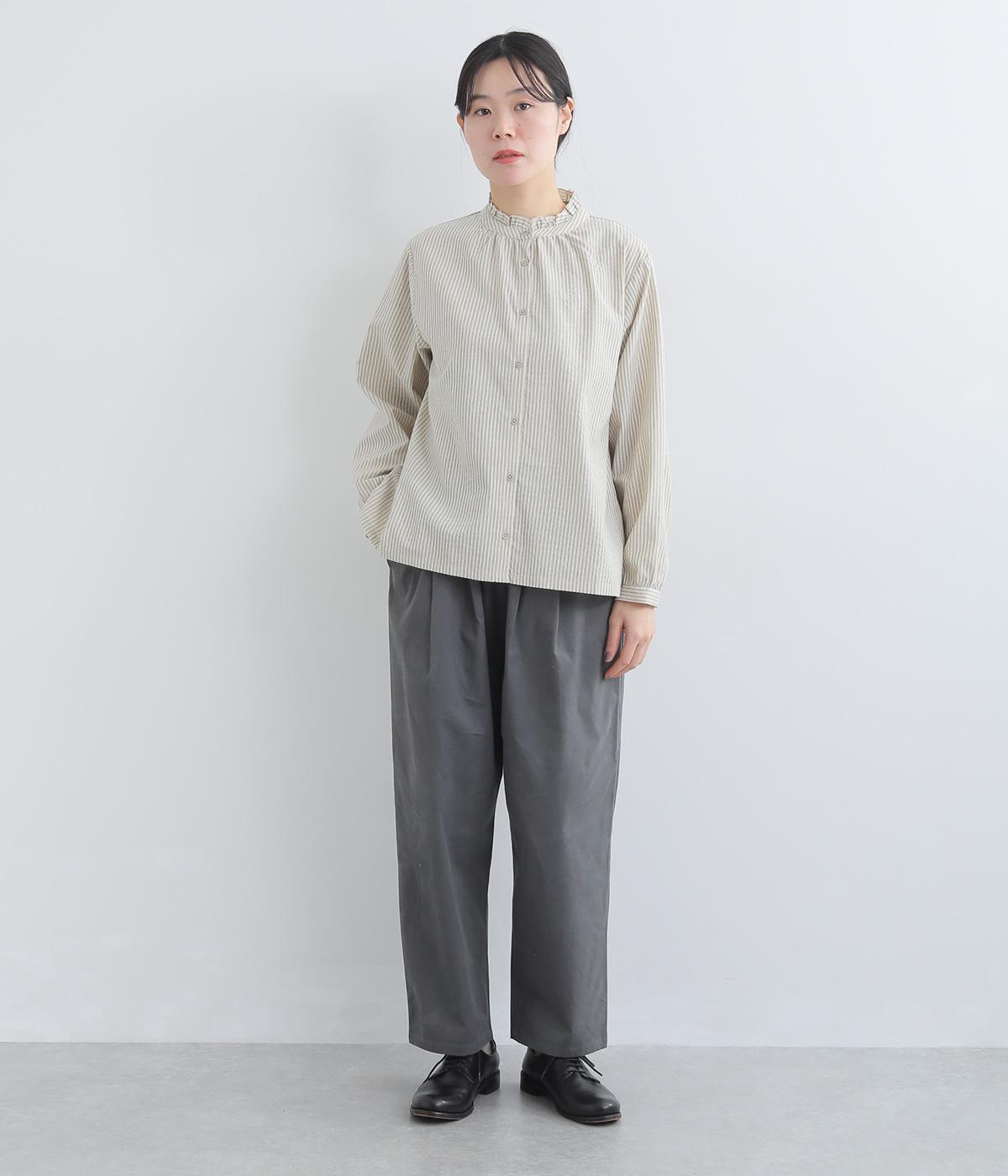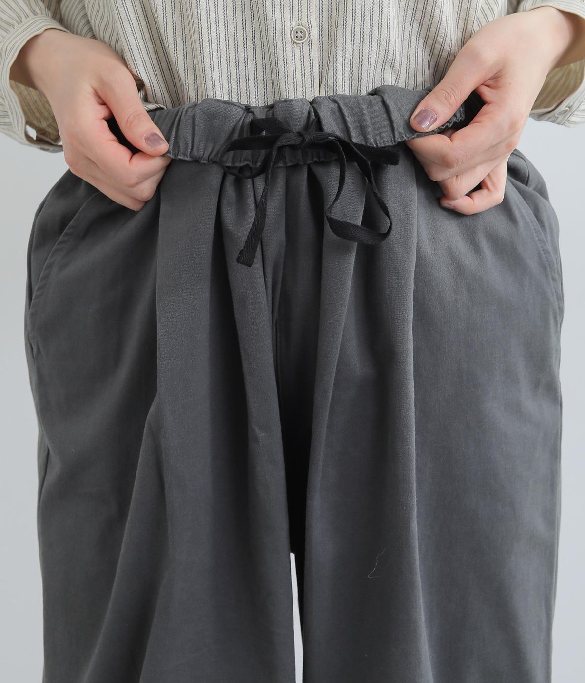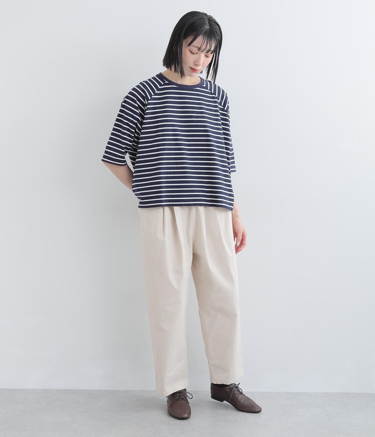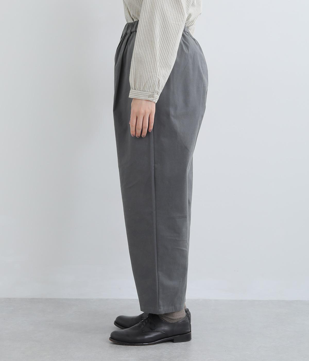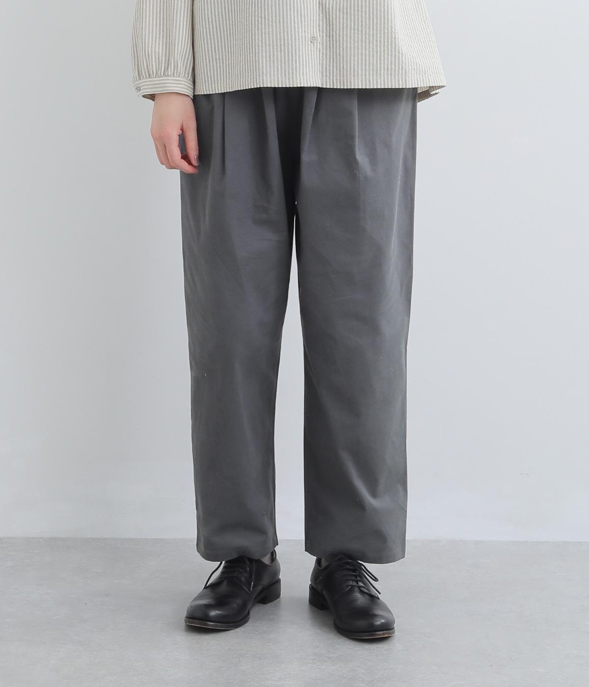 ほどよいゆとりのストレートパンツ。ウエスト下にタックを入れることで上品で立体感のある印象に。太すぎず細すぎない幅で、カジュアルにもきれいめにも合わせやすい一本です。