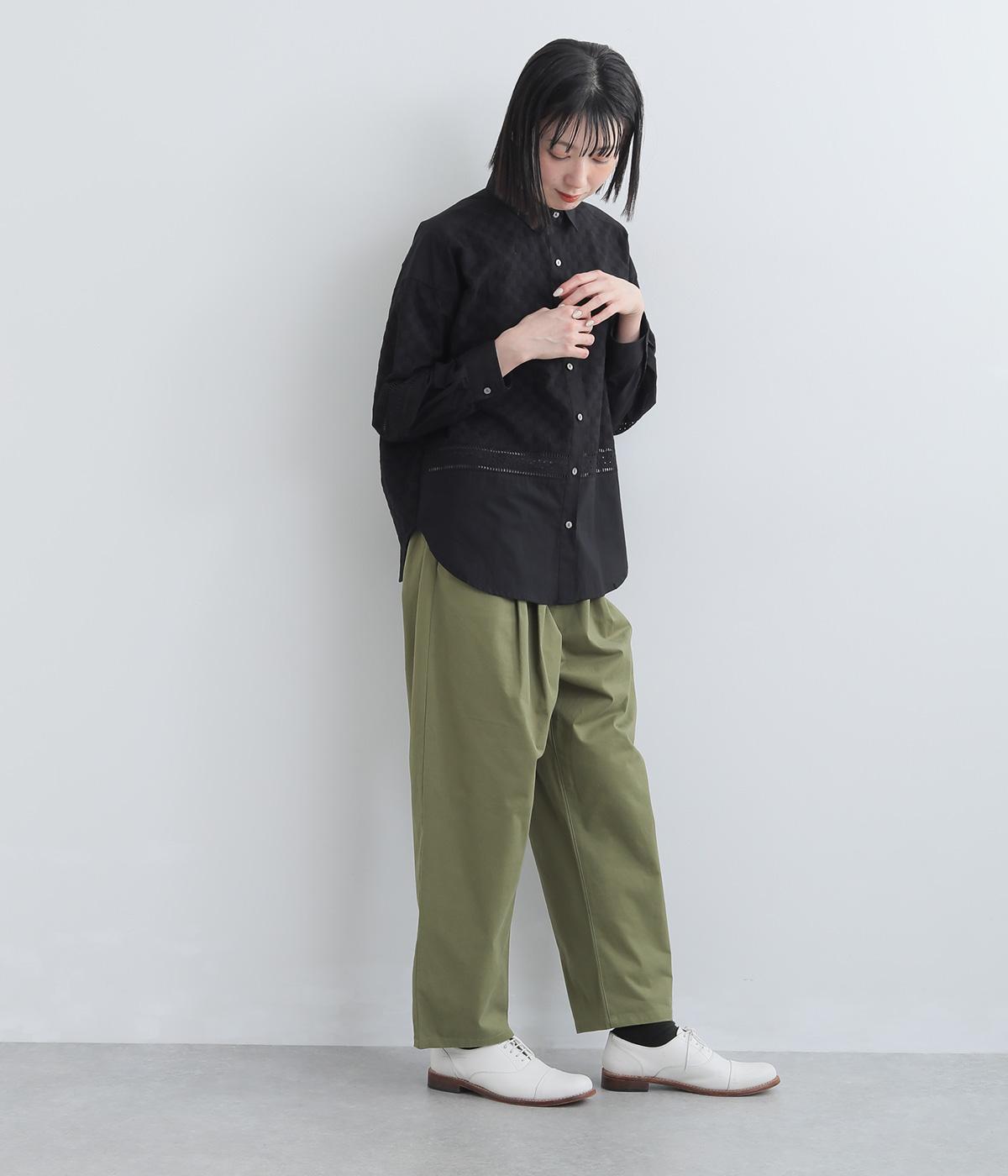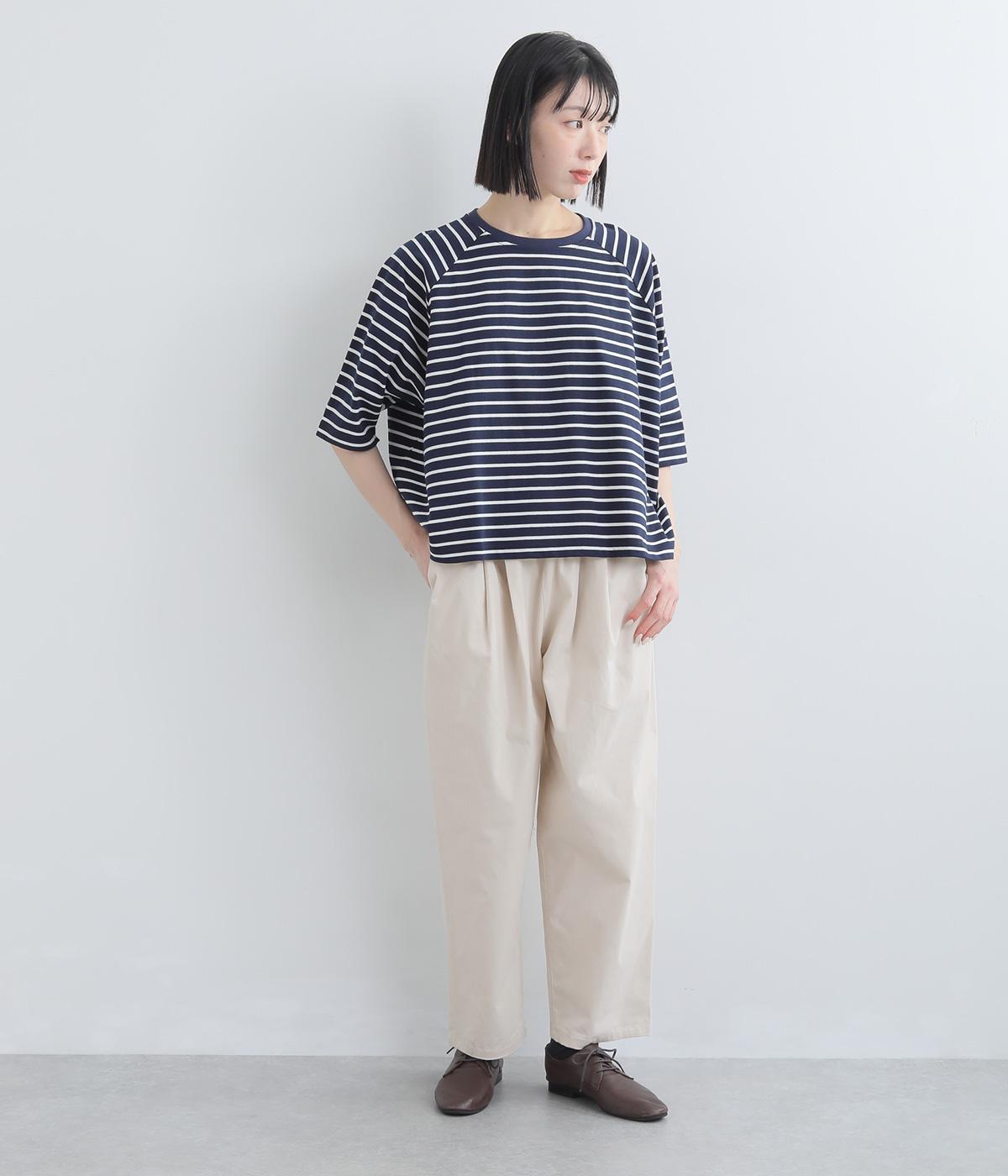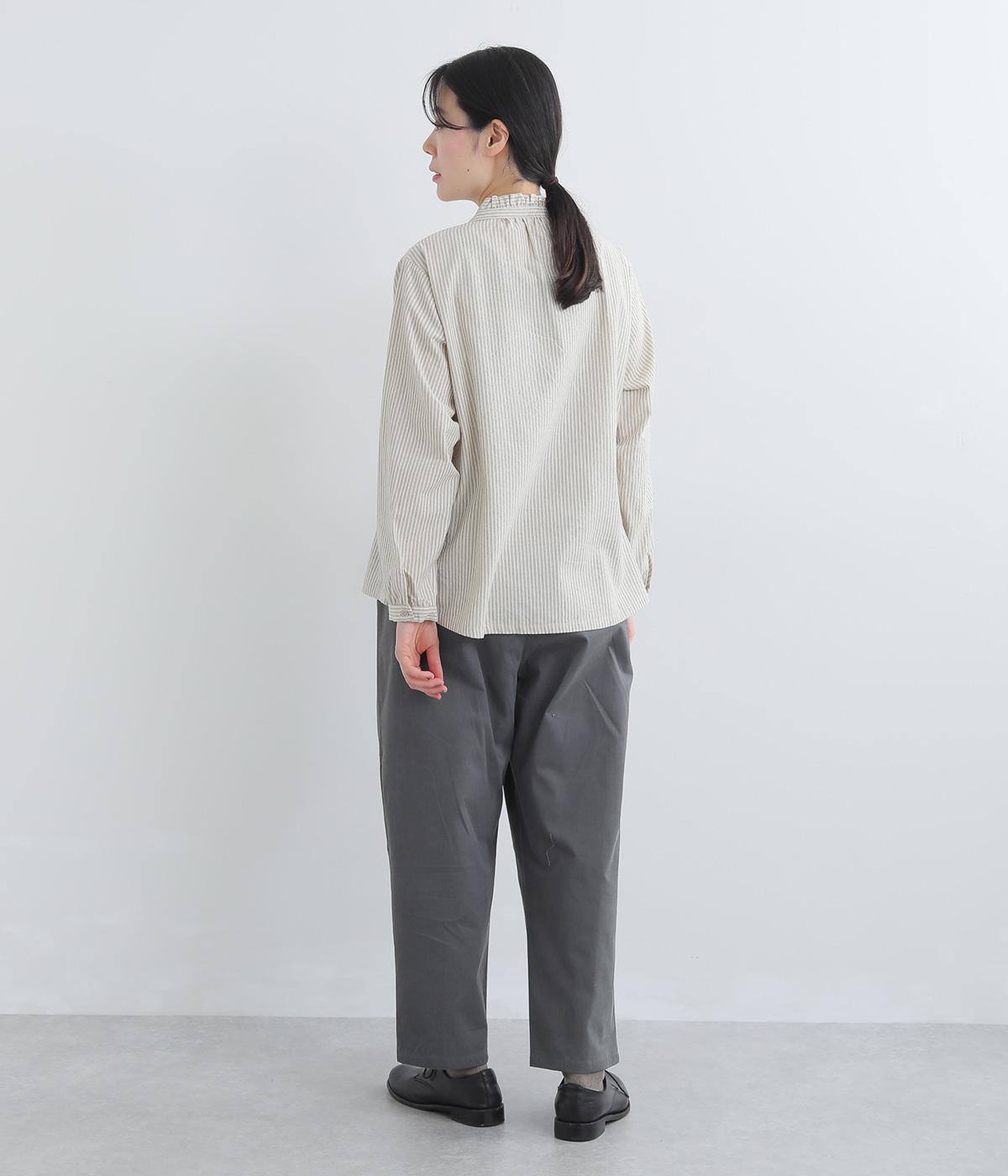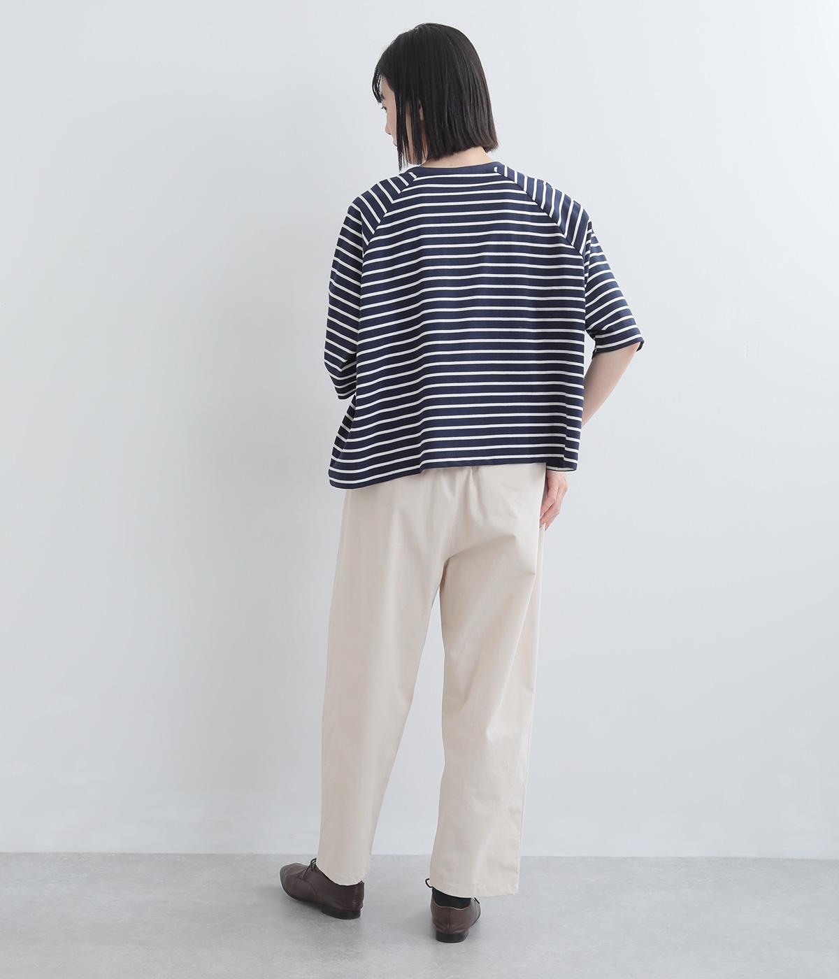 ほどよいゆとりのストレートパンツ。ウエスト下にタックを入れることで上品で立体感のある印象に。太すぎず細すぎない幅で、カジュアルにもきれいめにも合わせやすい一本です。