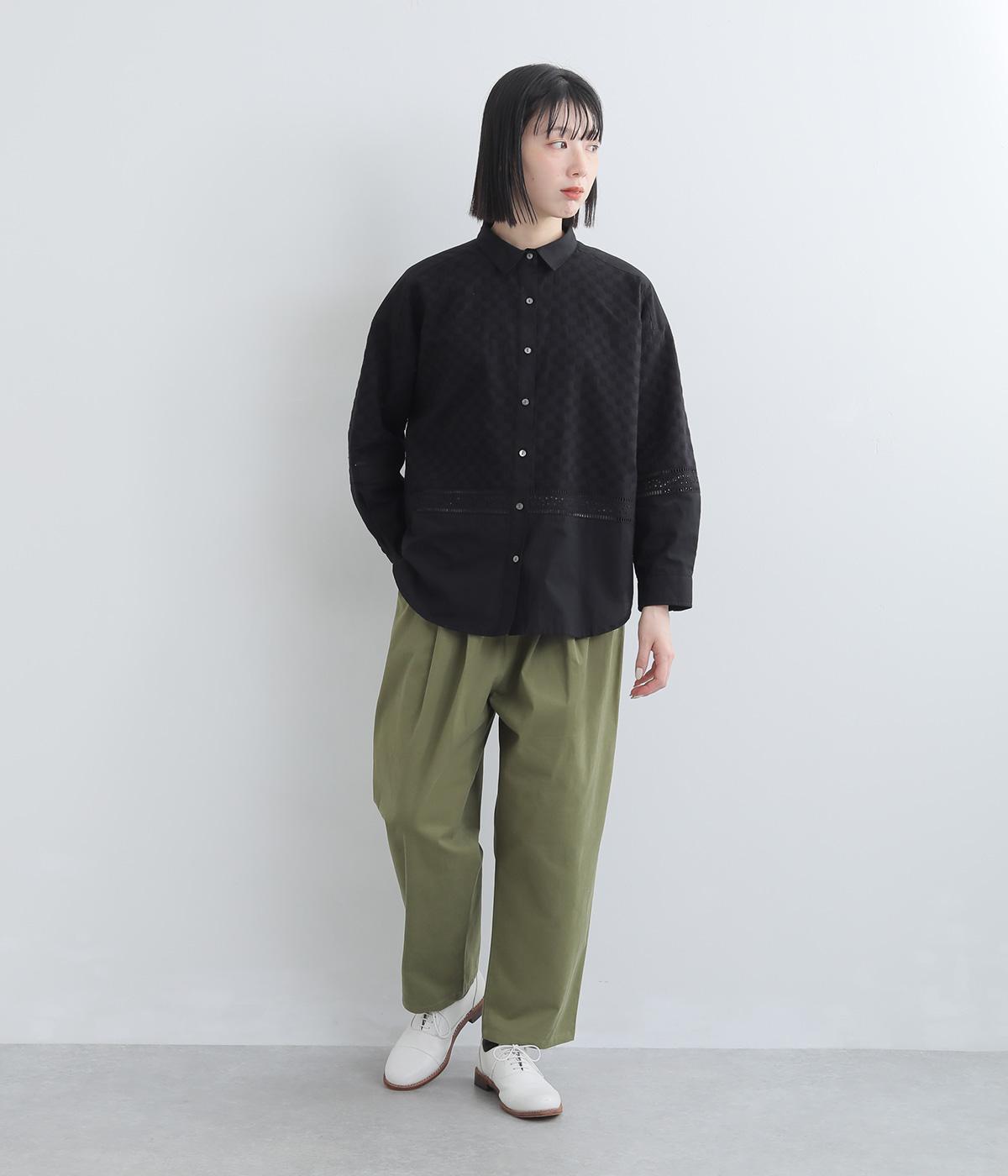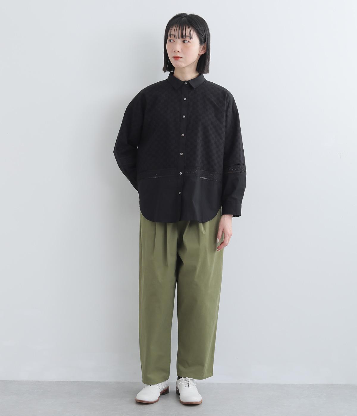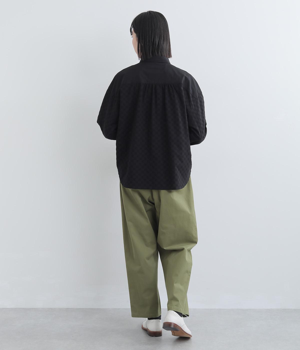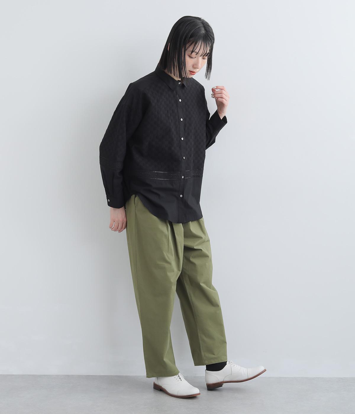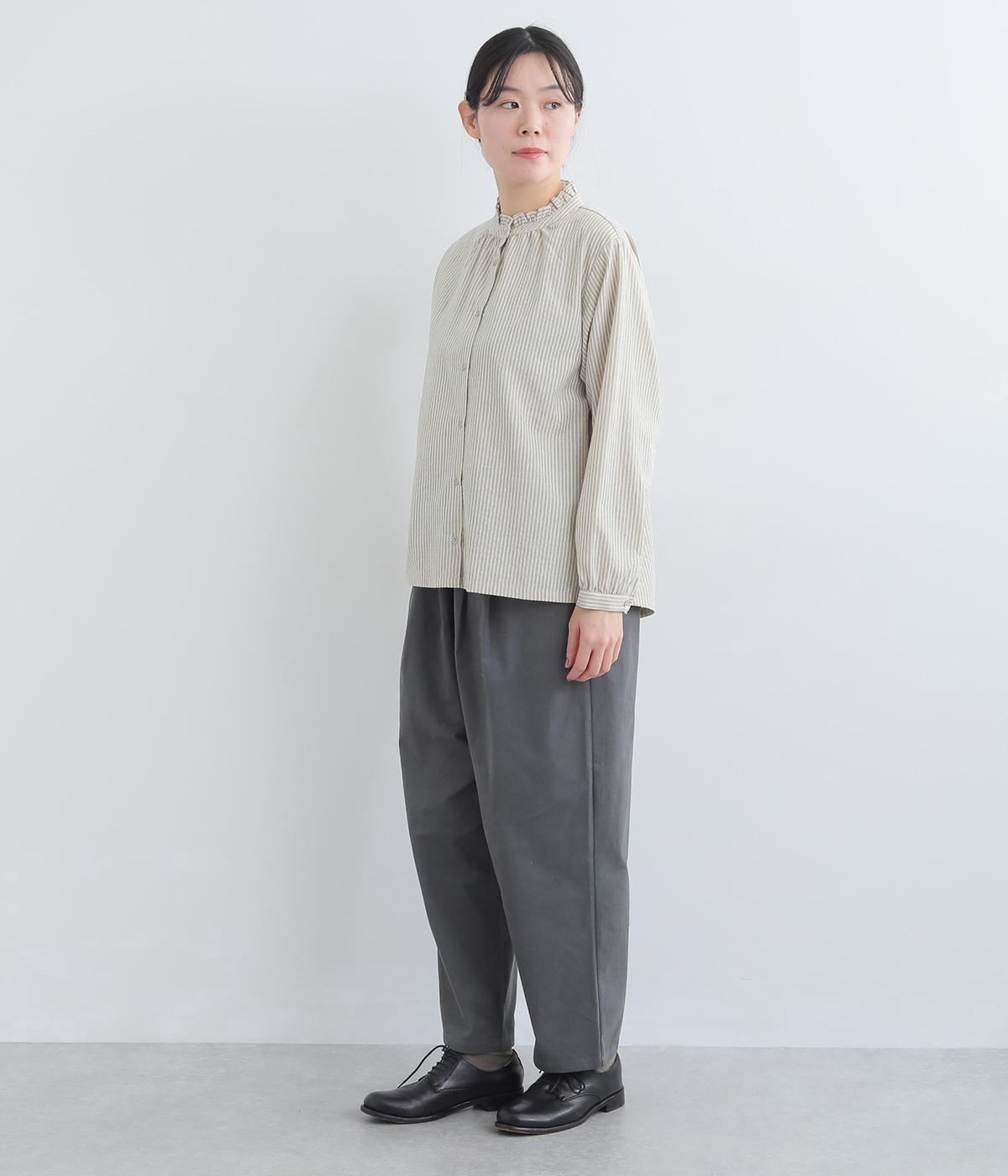 ほどよいゆとりのストレートパンツ。ウエスト下にタックを入れることで上品で立体感のある印象に。太すぎず細すぎない幅で、カジュアルにもきれいめにも合わせやすい一本です。