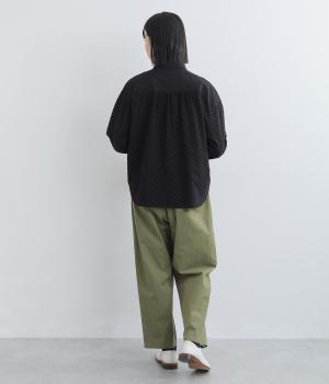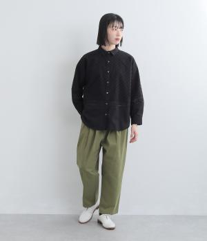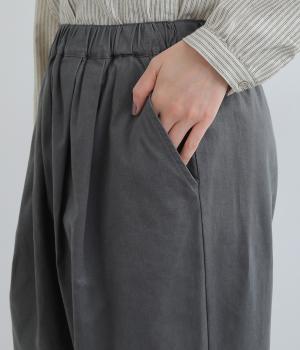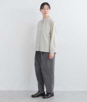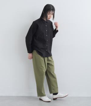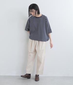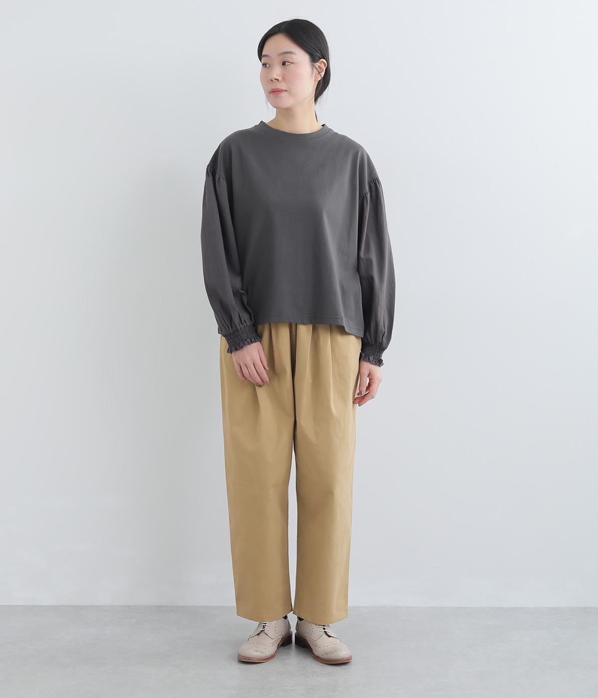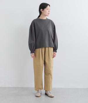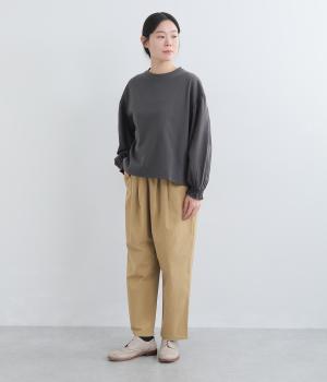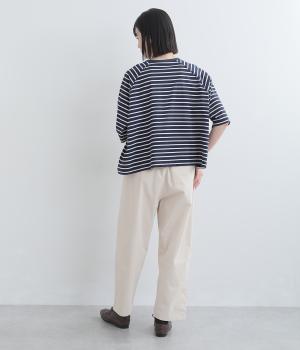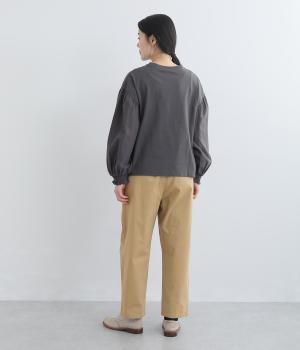 なめらかな肌ざわりのコットンとポリウレタンの混合素材を使用しています。ストレッチが効き、快適な穿き心地です。ほどよい厚みがあるのでロングシーズン着まわしできます。
